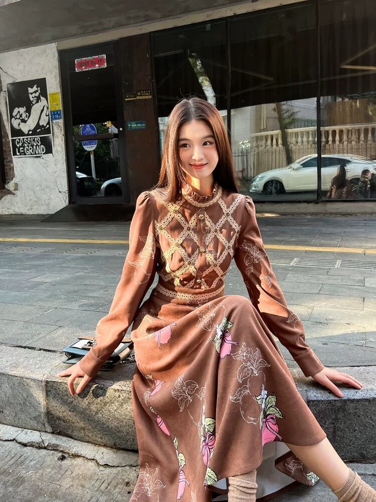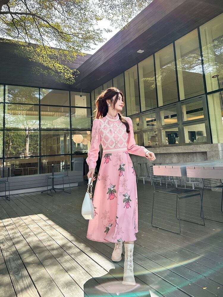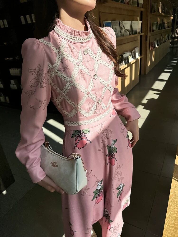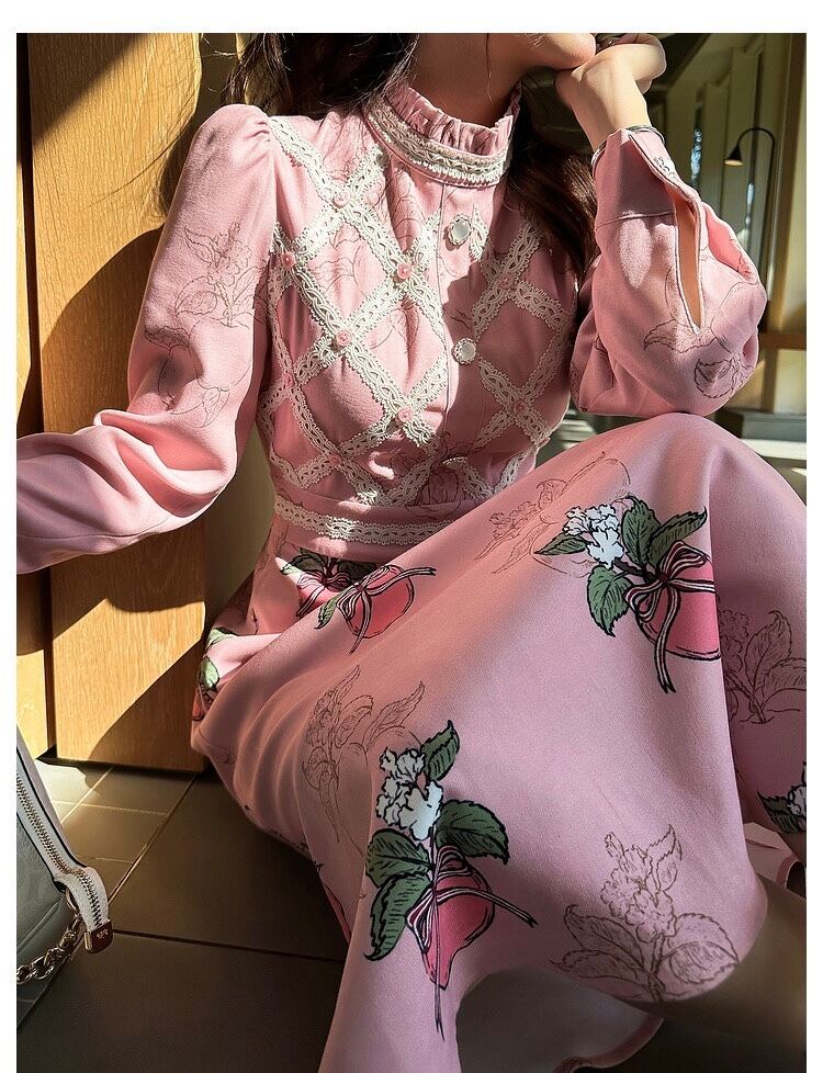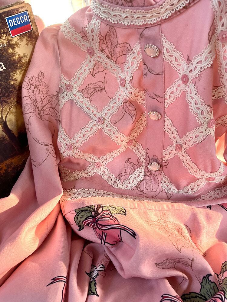 ワンピース フルーツ ピンク 茶色 XL ガーリー ブラウス スカート 原宿 可愛い