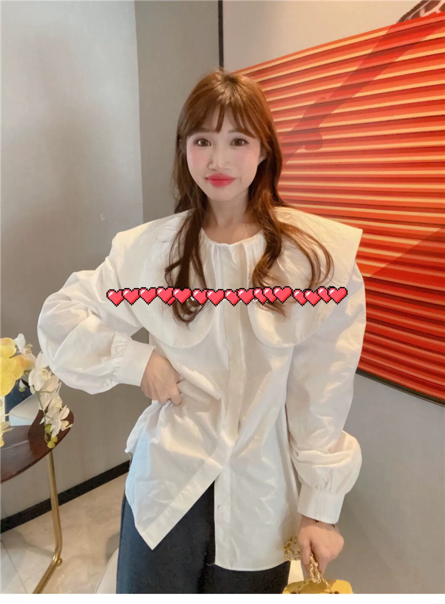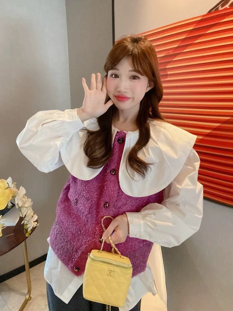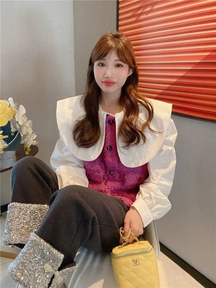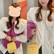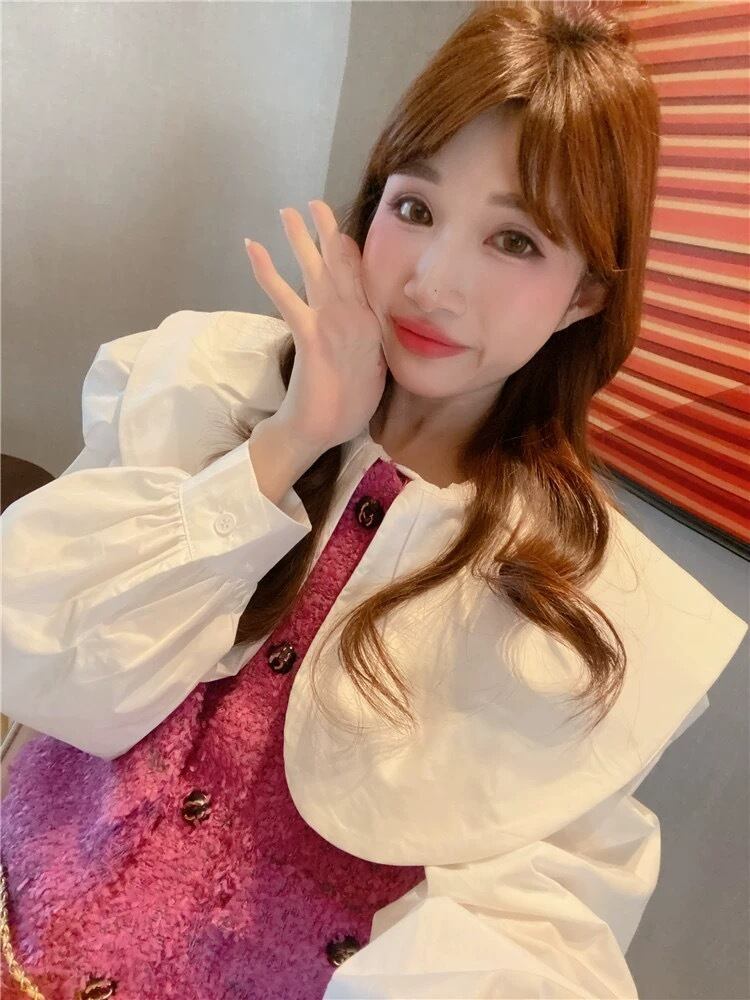 ブラウス デカ襟 丸襟 オーバーサイズ 白 ホワイト シャツ ブラウス トップス