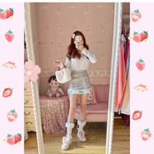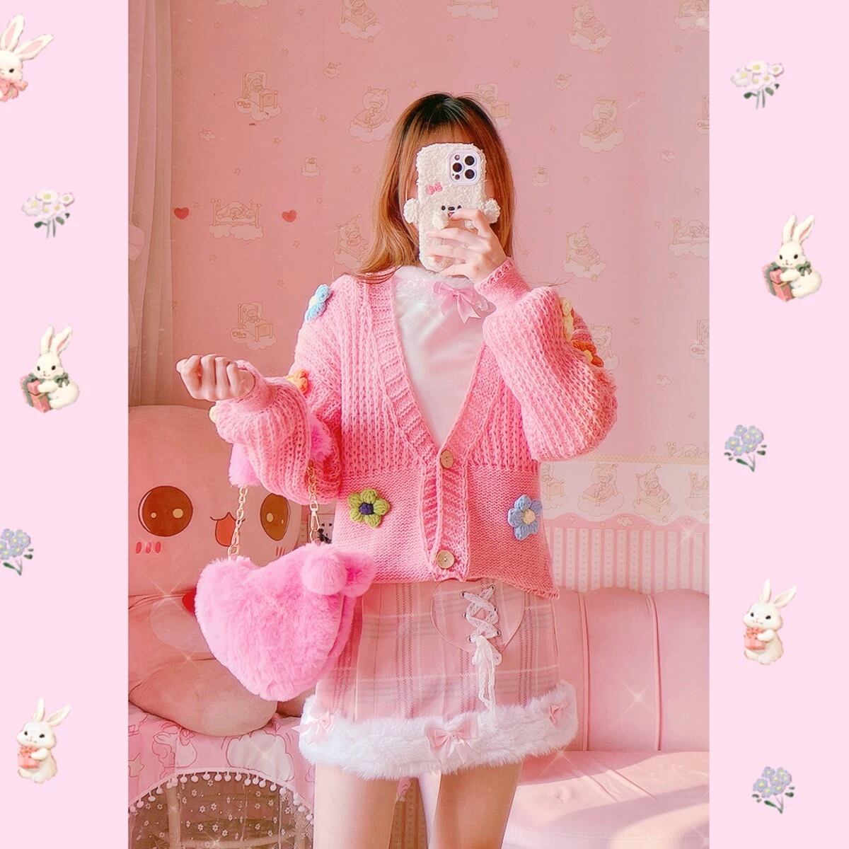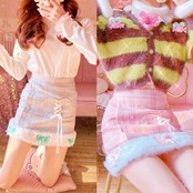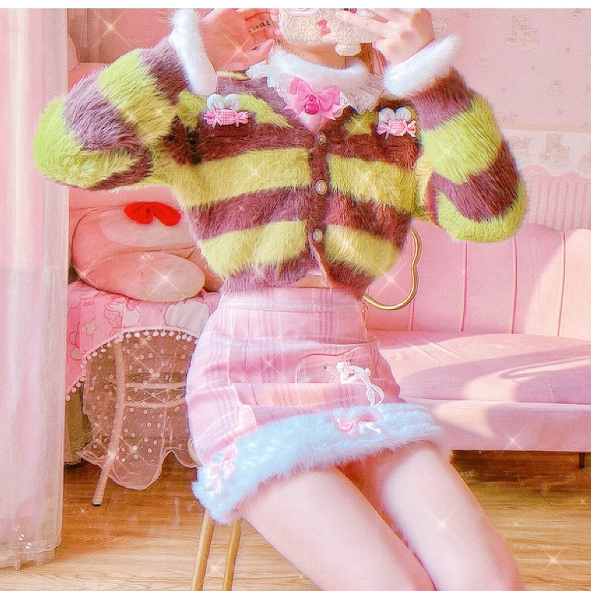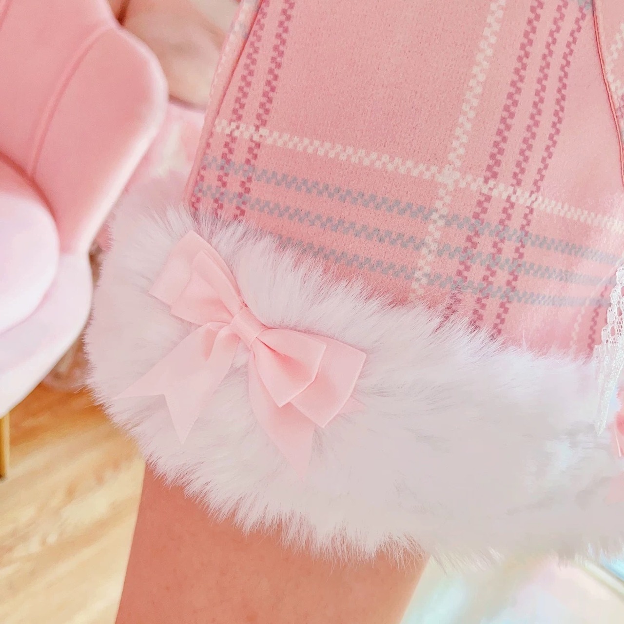 ファー チェック 緑 ピンク ハート ボトムス ガーリー