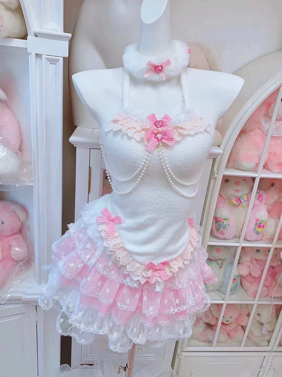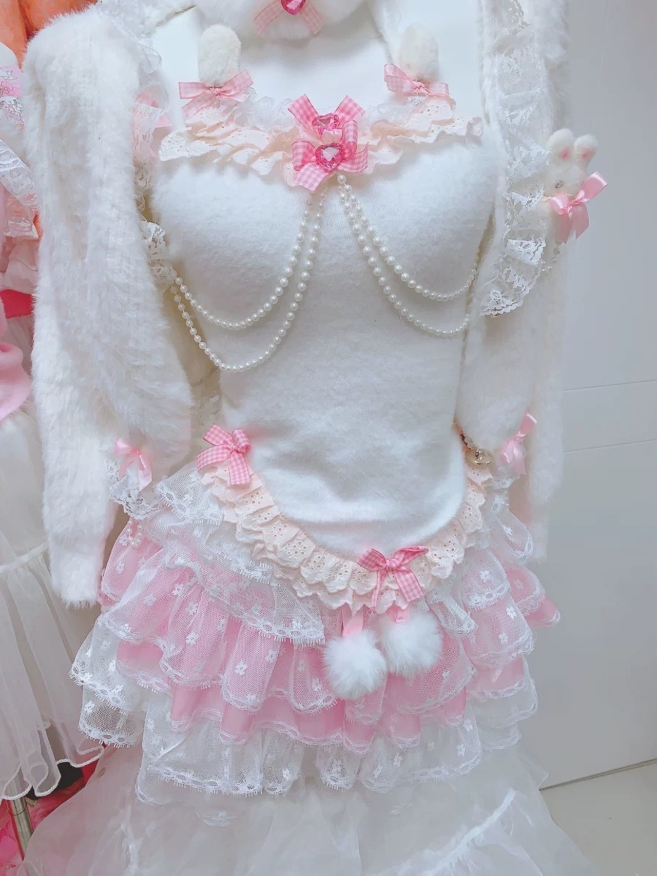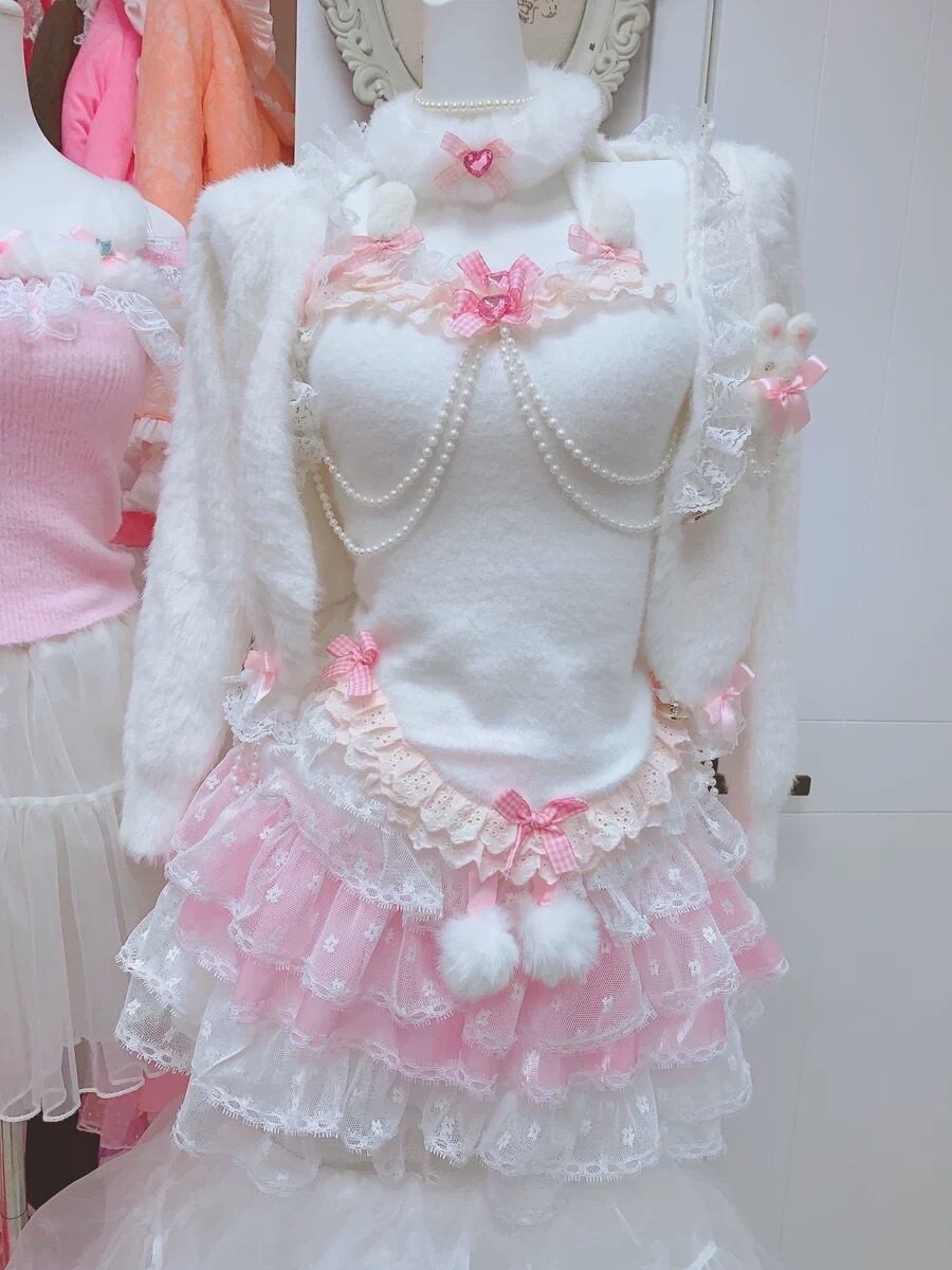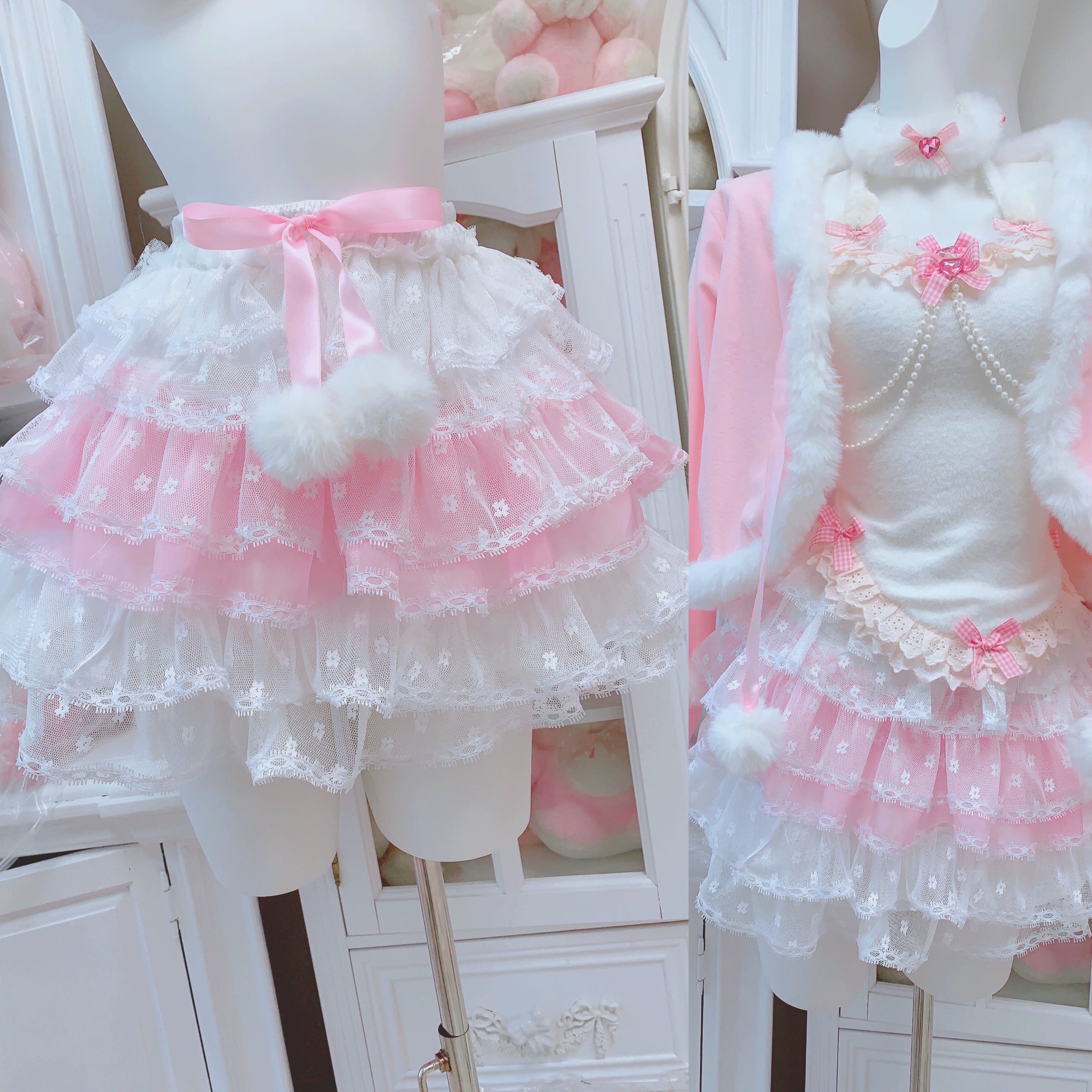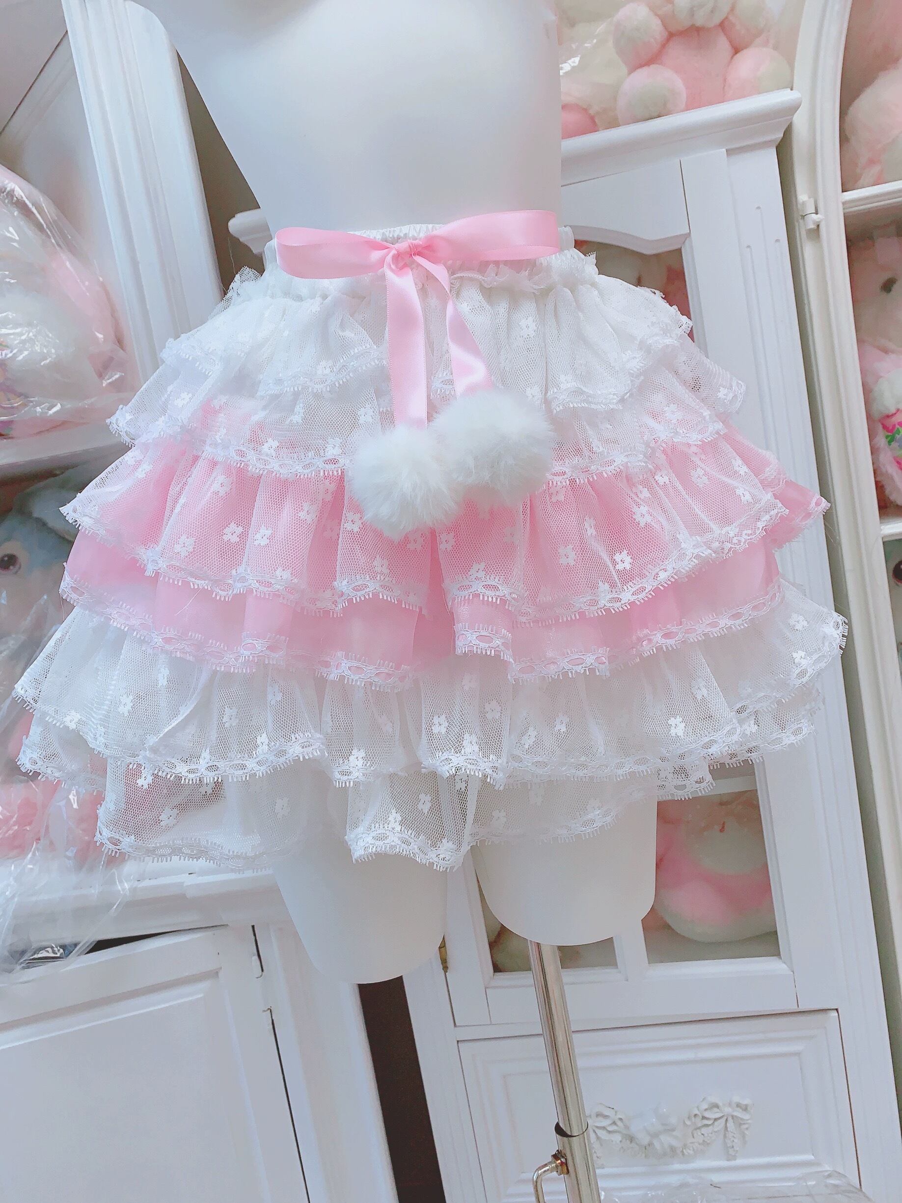 【スカート】フリル 白 ピンク ガーリー ボトムス ぽんぽん