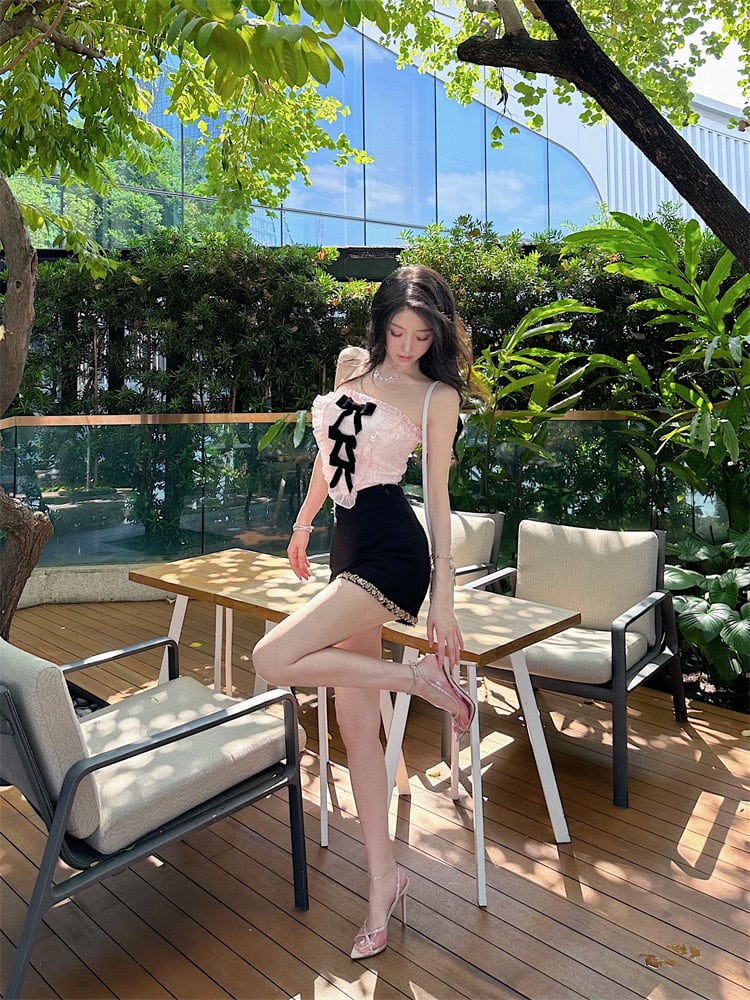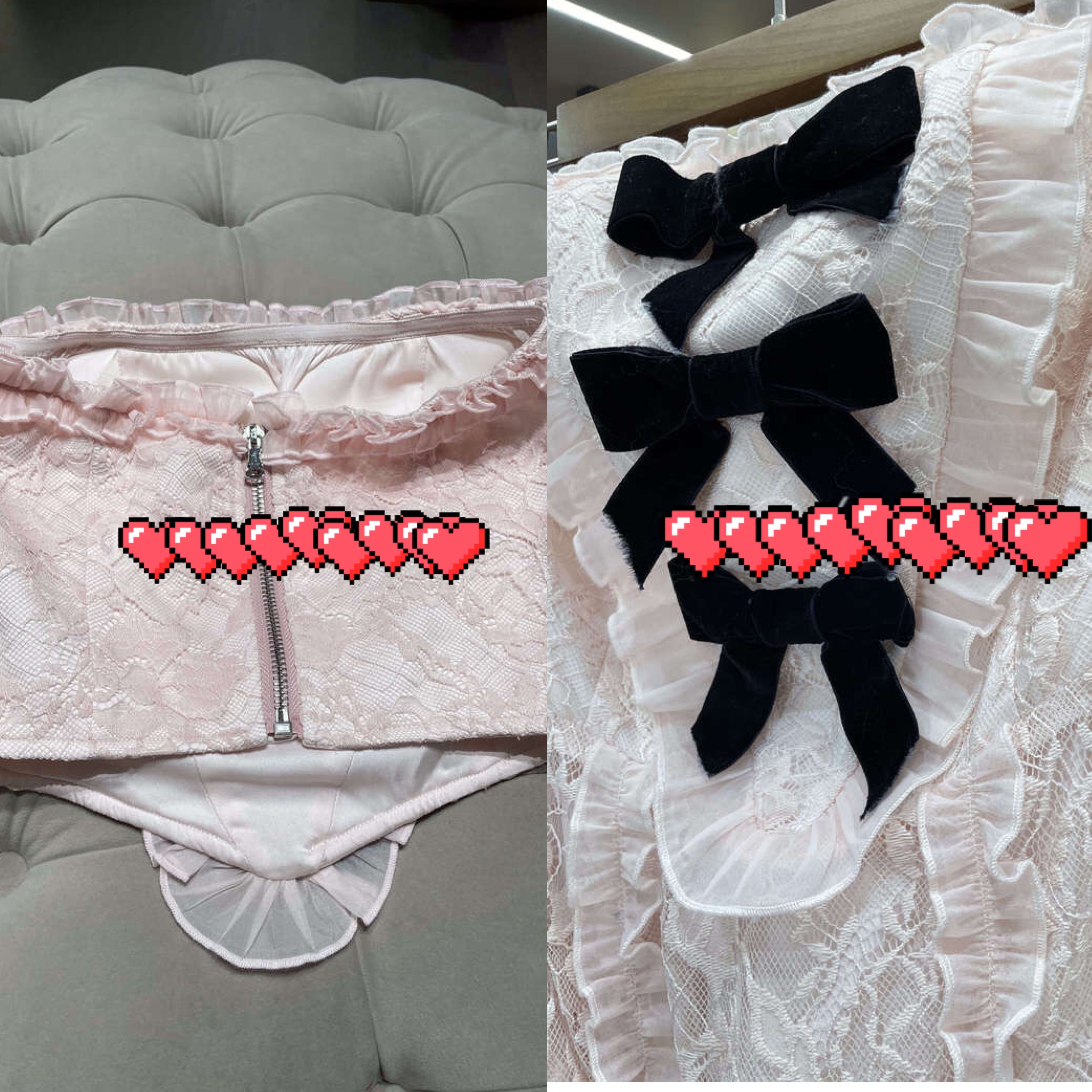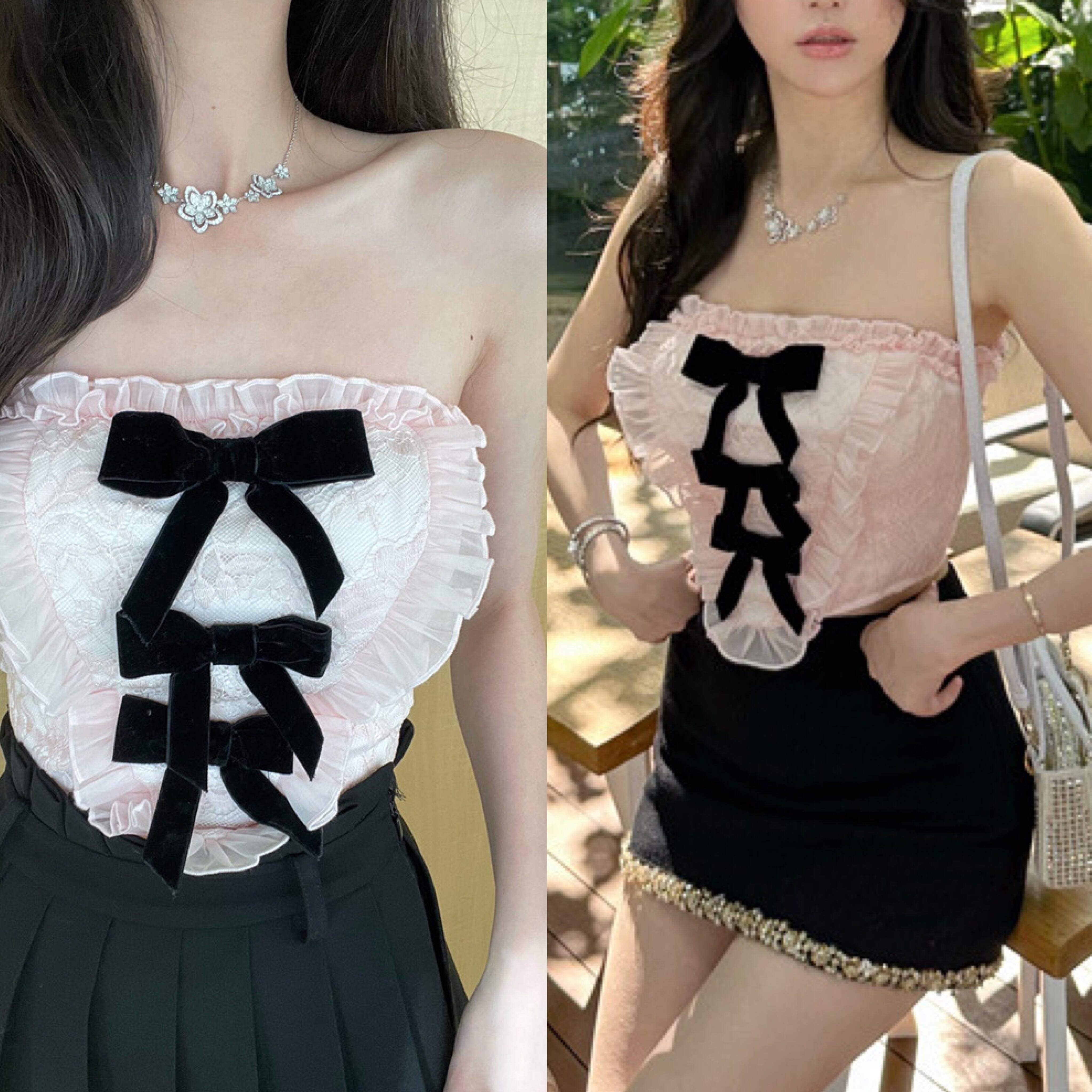 【トップス】ピンク リボン ブラウス キャミソール ベアトップ チュニック
