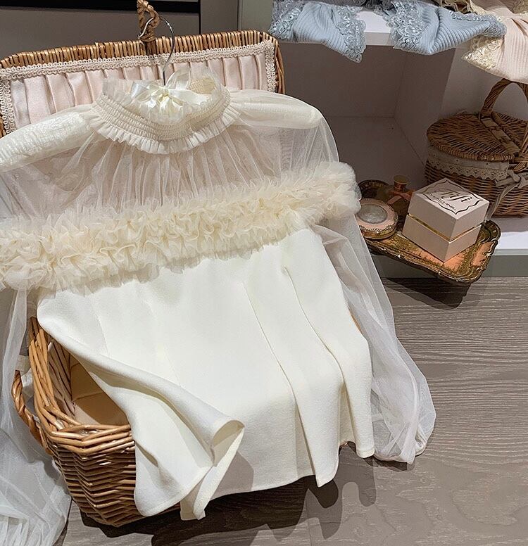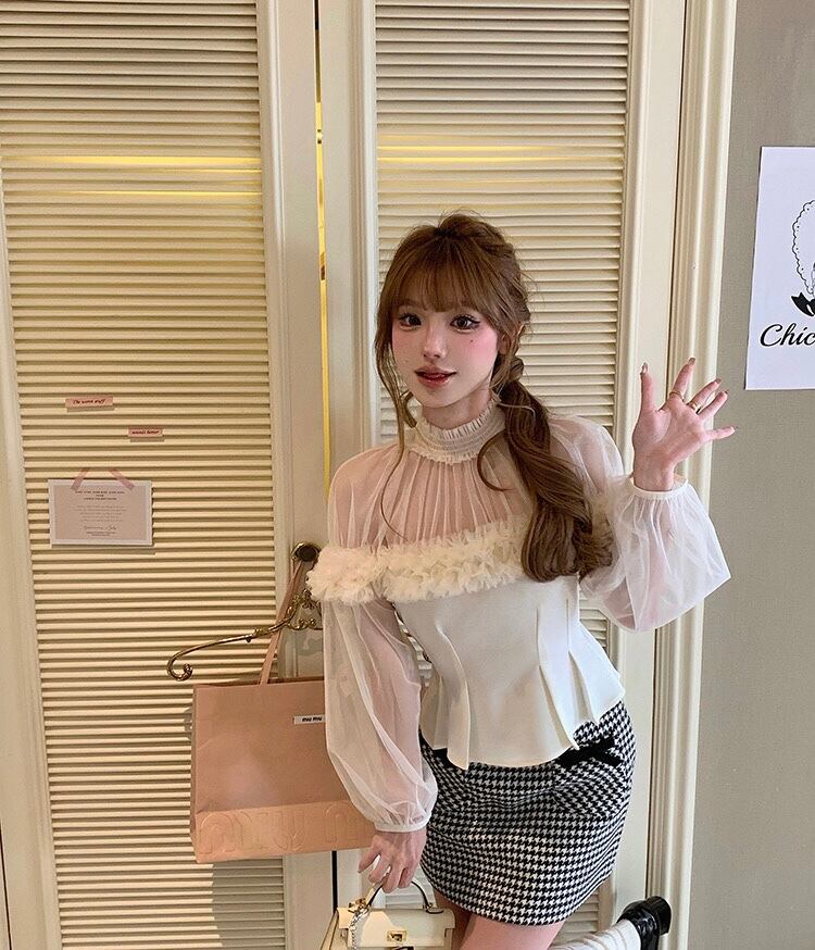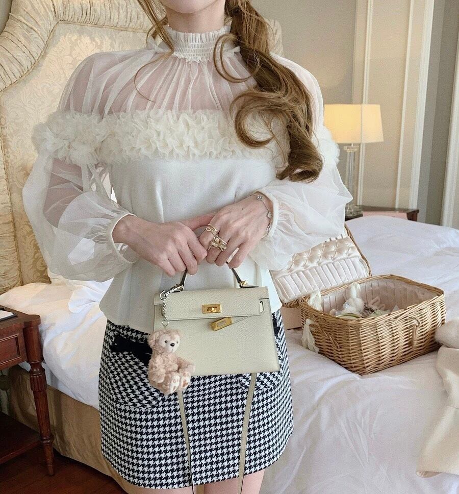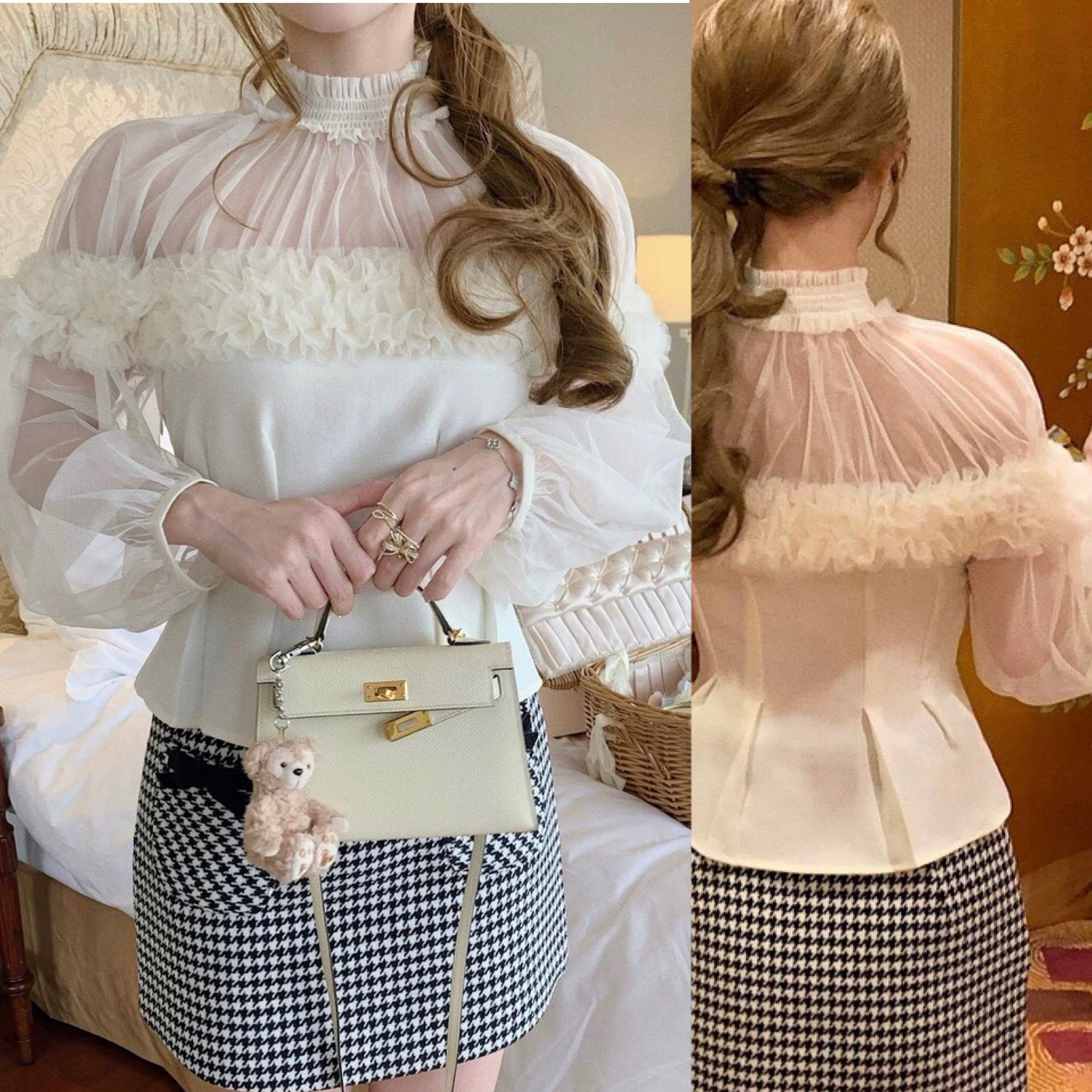 白 ホワイト ハイネック トップス ガーリー オフショルダー ベージュ