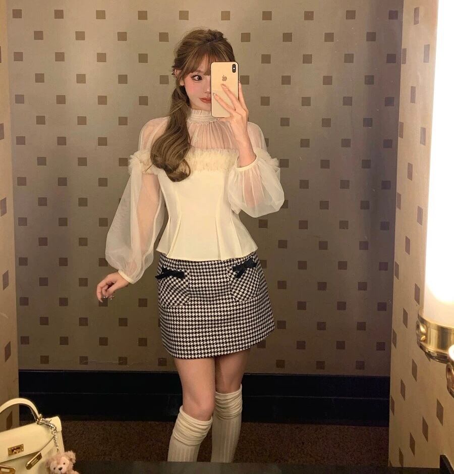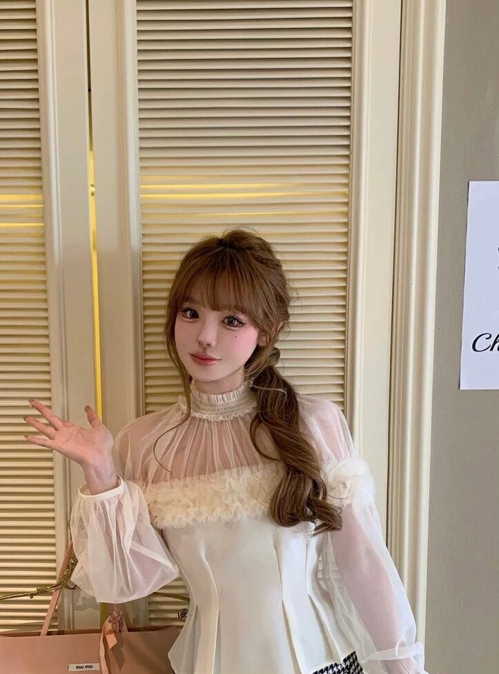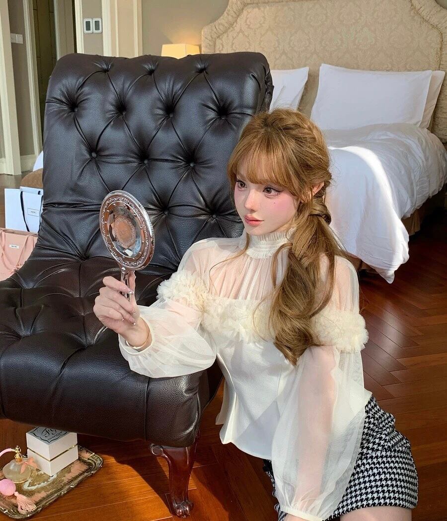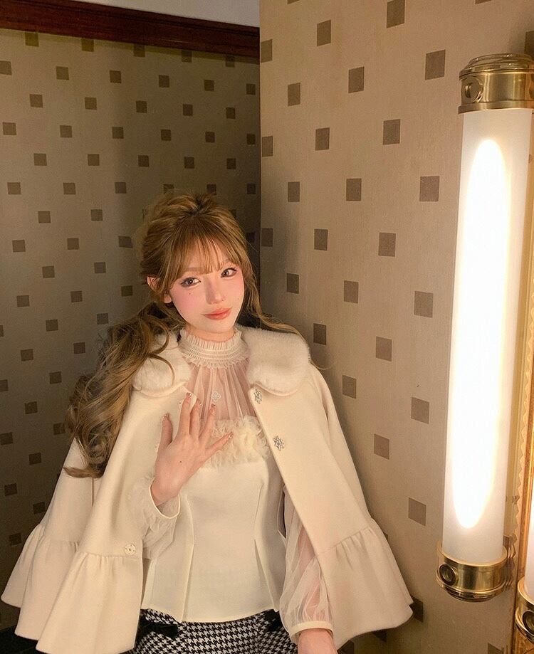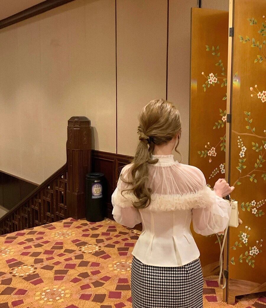 白 ホワイト ハイネック トップス ガーリー オフショルダー ベージュ