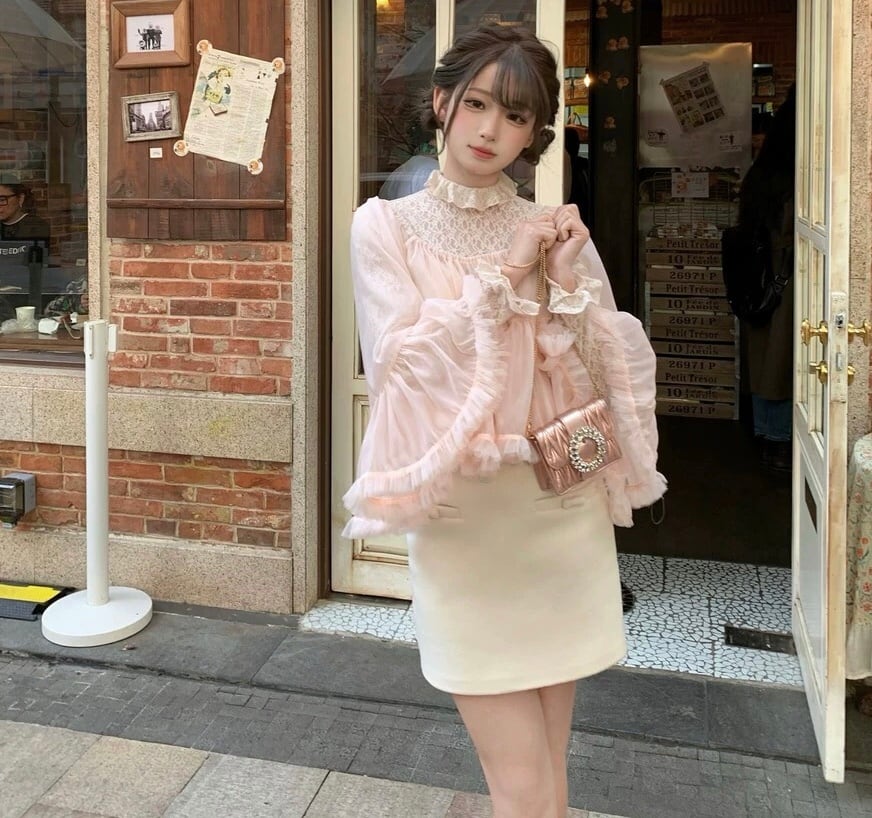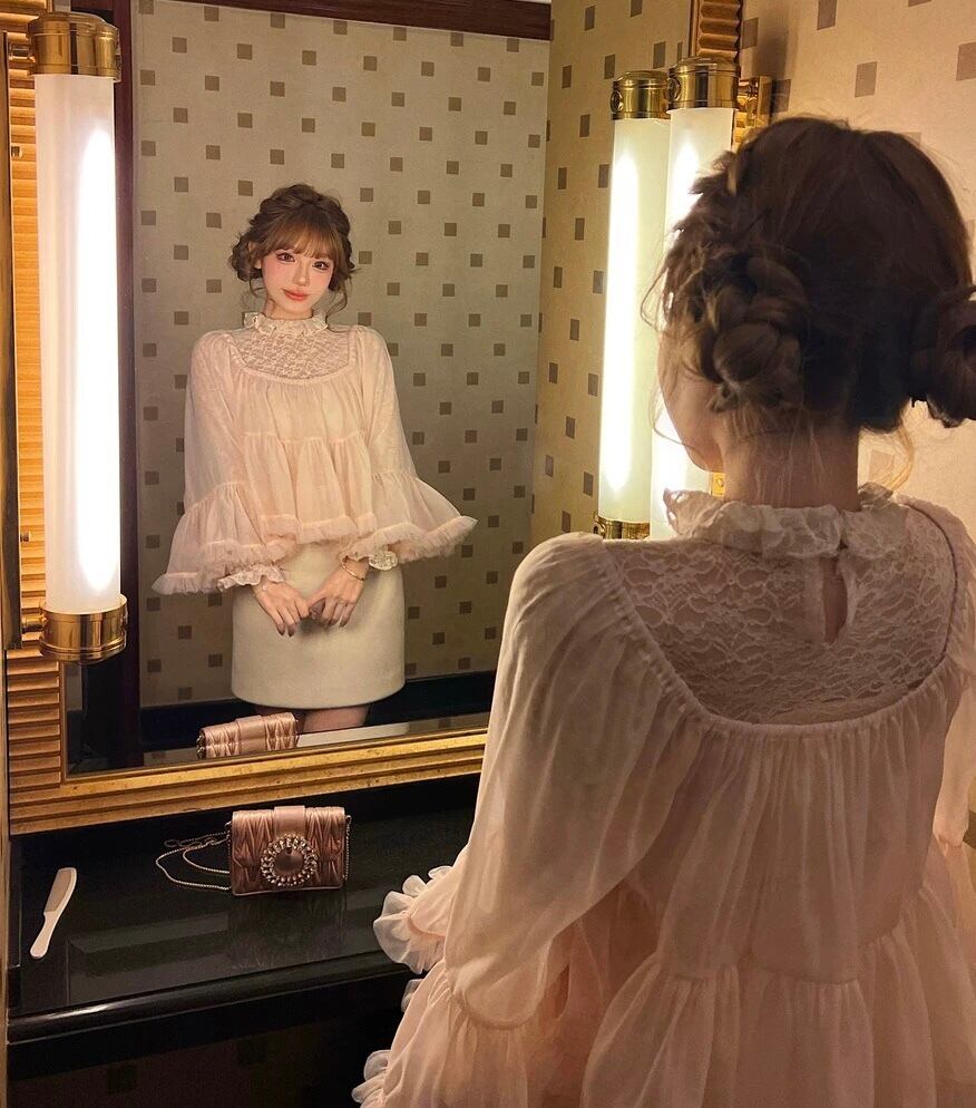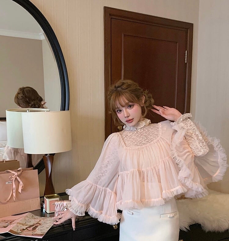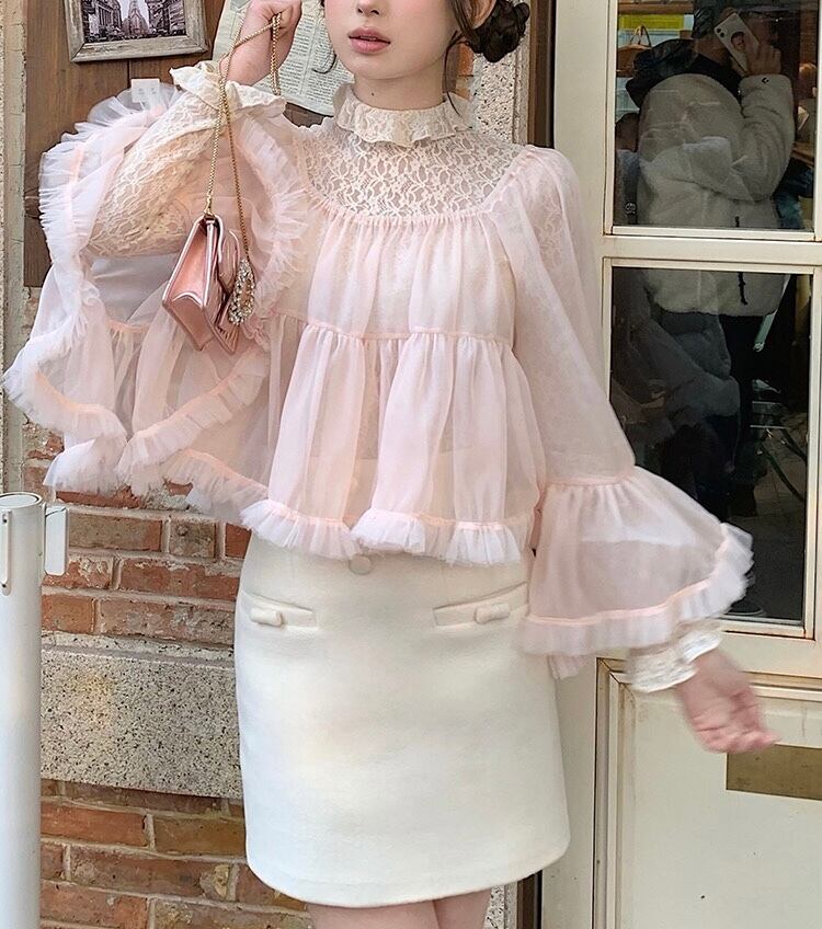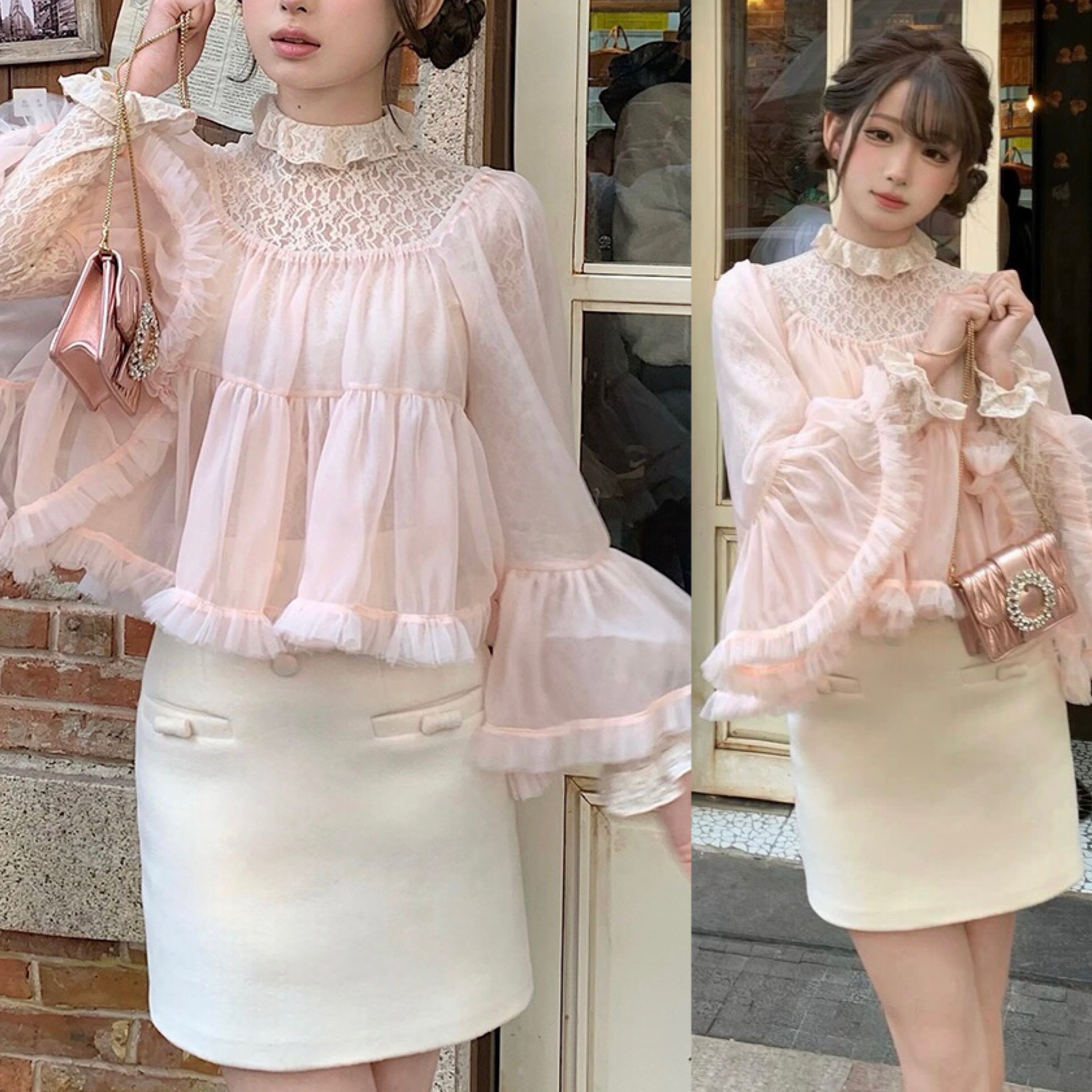 ピンク ベージュ 白 ブラウス トップス チュニック