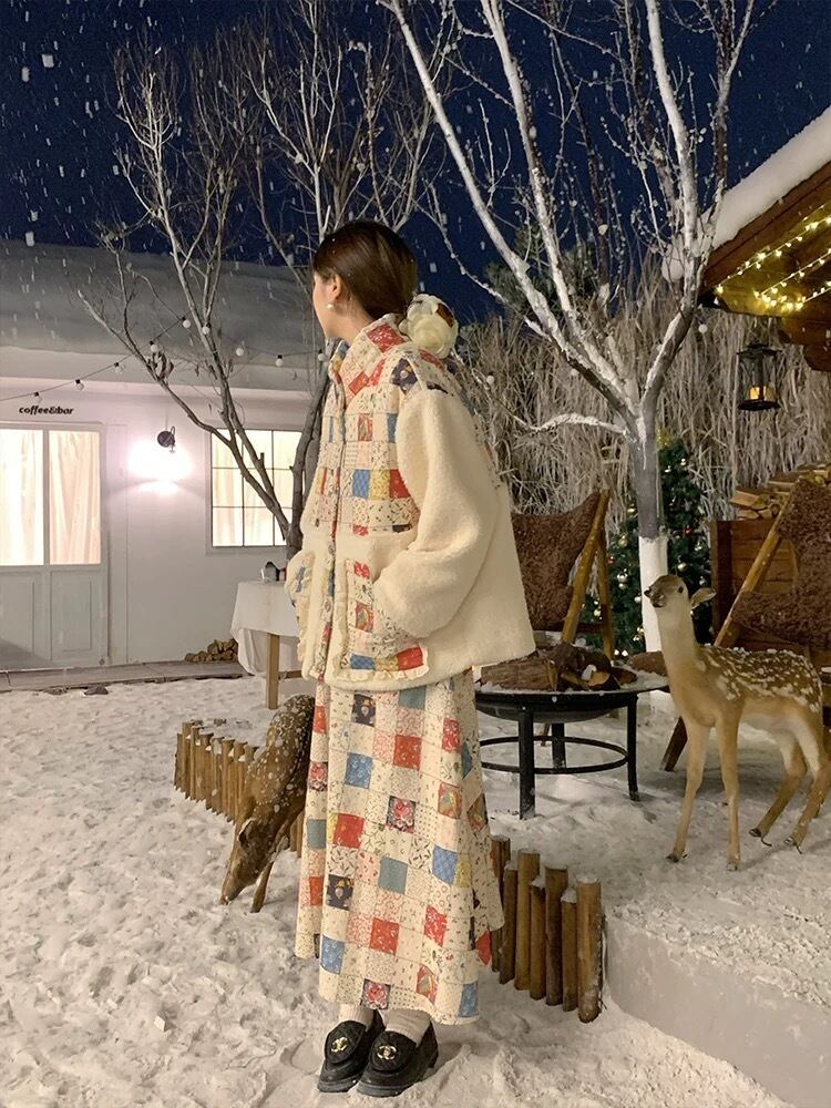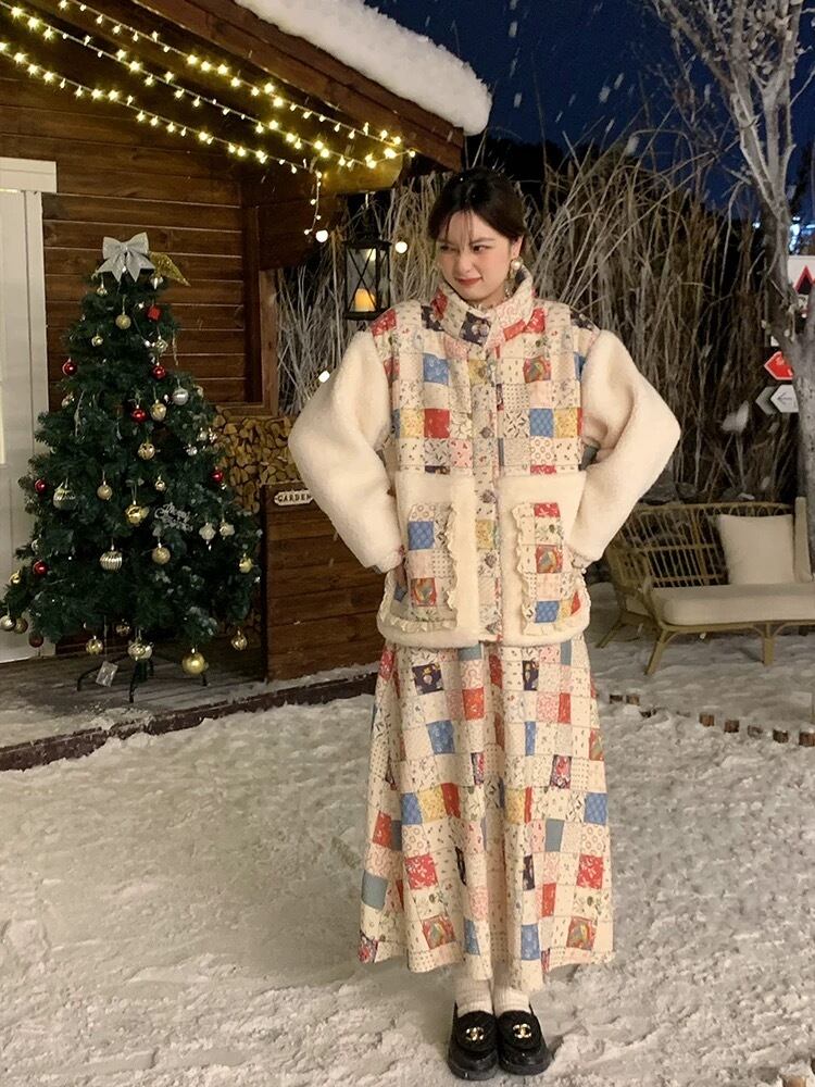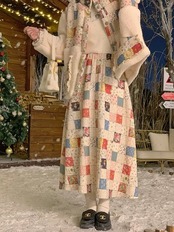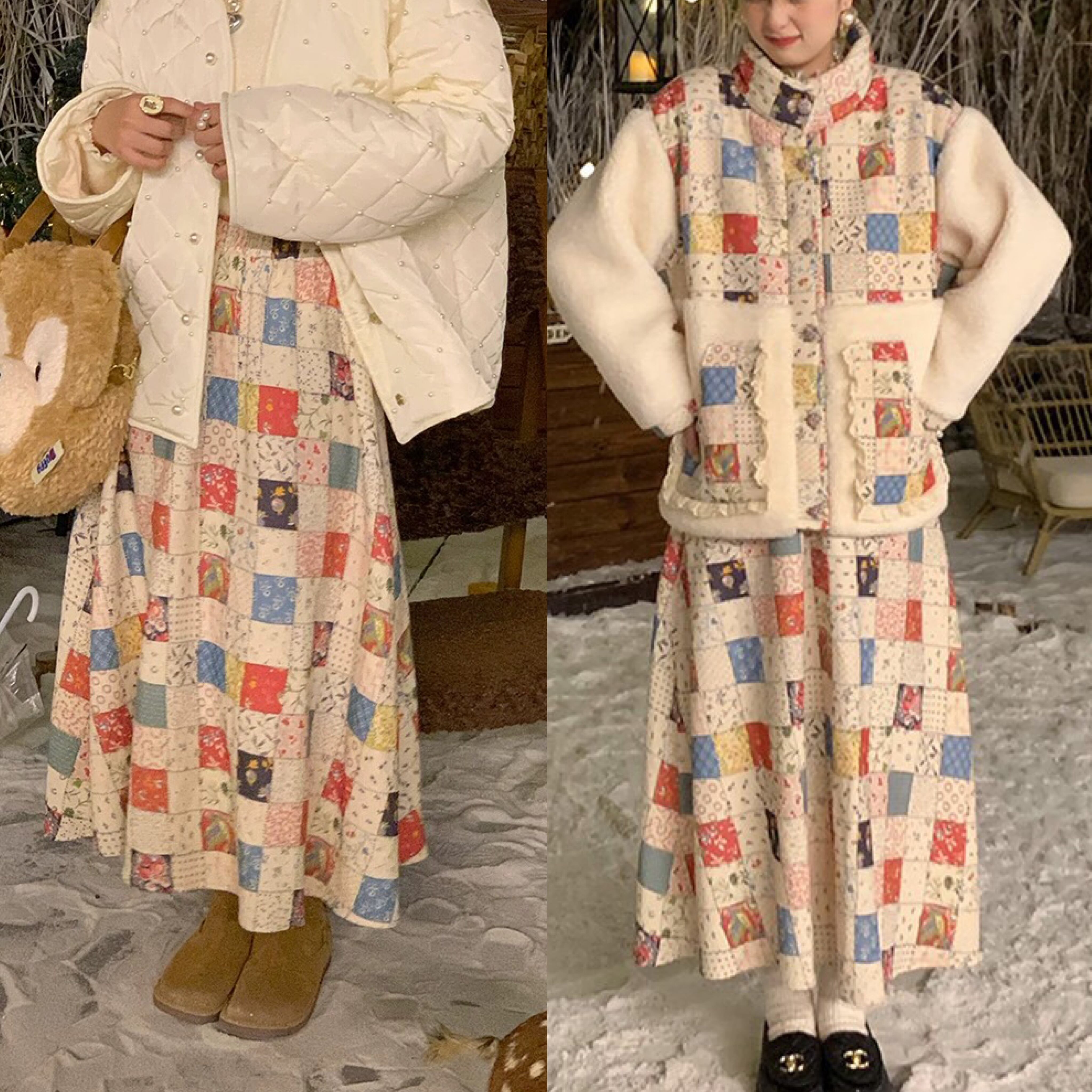 スカート パッチワーク カジュアル カラフル マキシ ゆったり