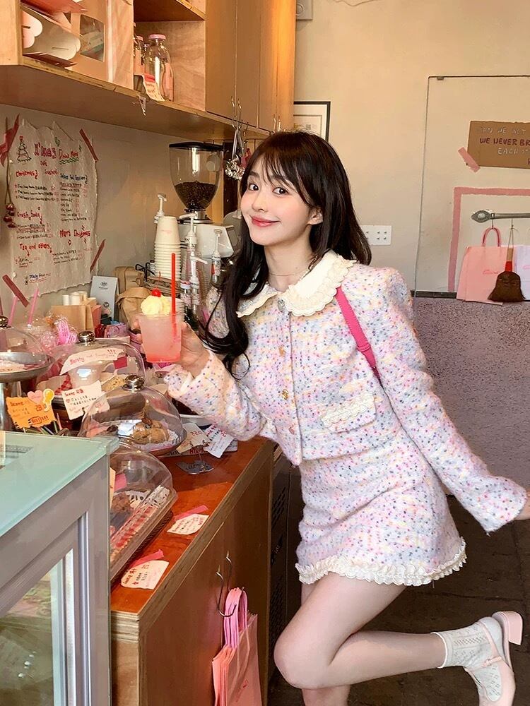 【ジャケット】水玉 ドット カラフル 丸襟 ジャケット ツーピース