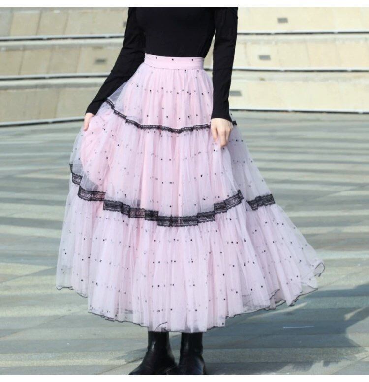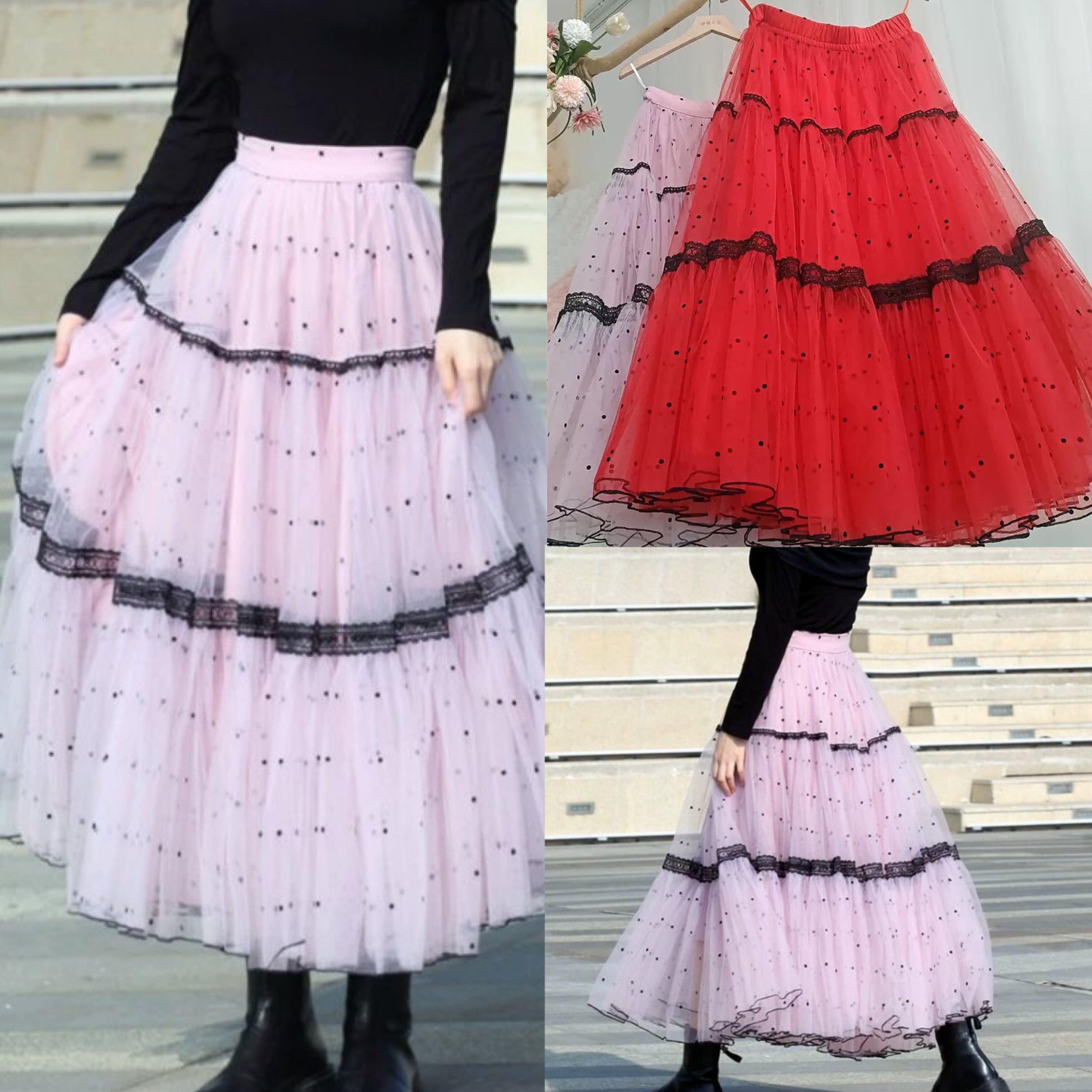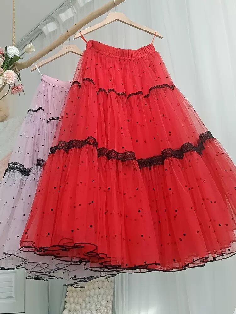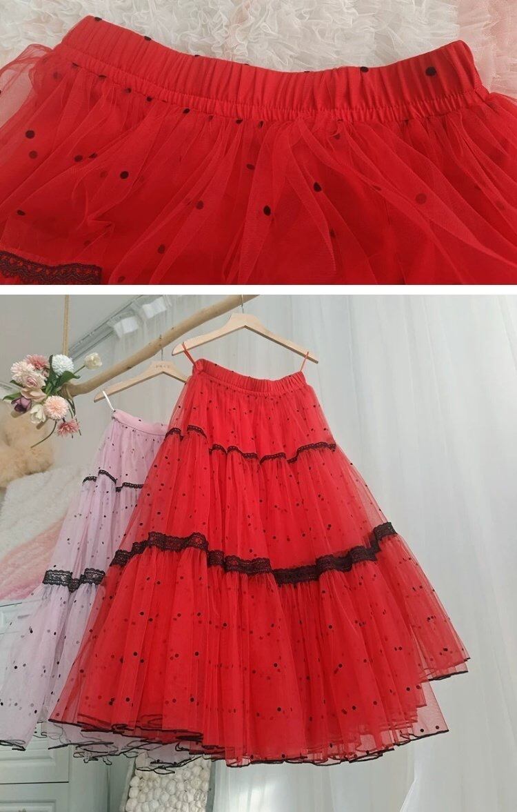 スカート ボトムス XL 2XL 赤 ピンク 水玉 ドット