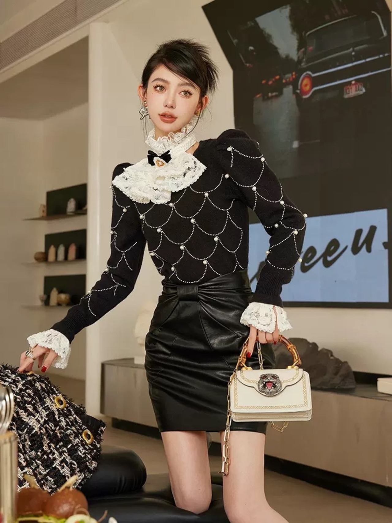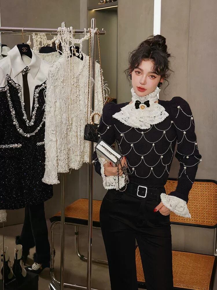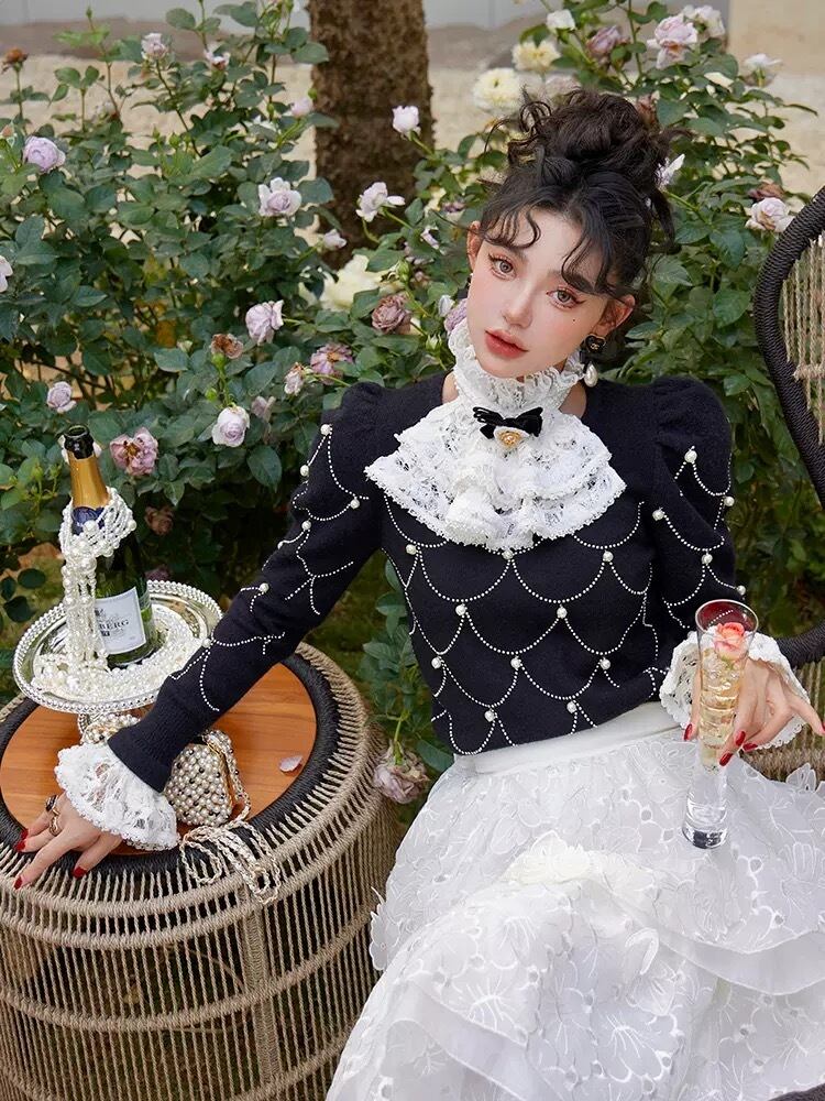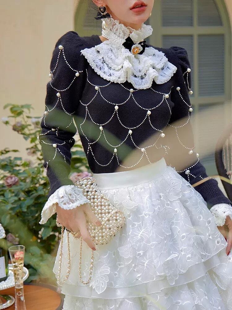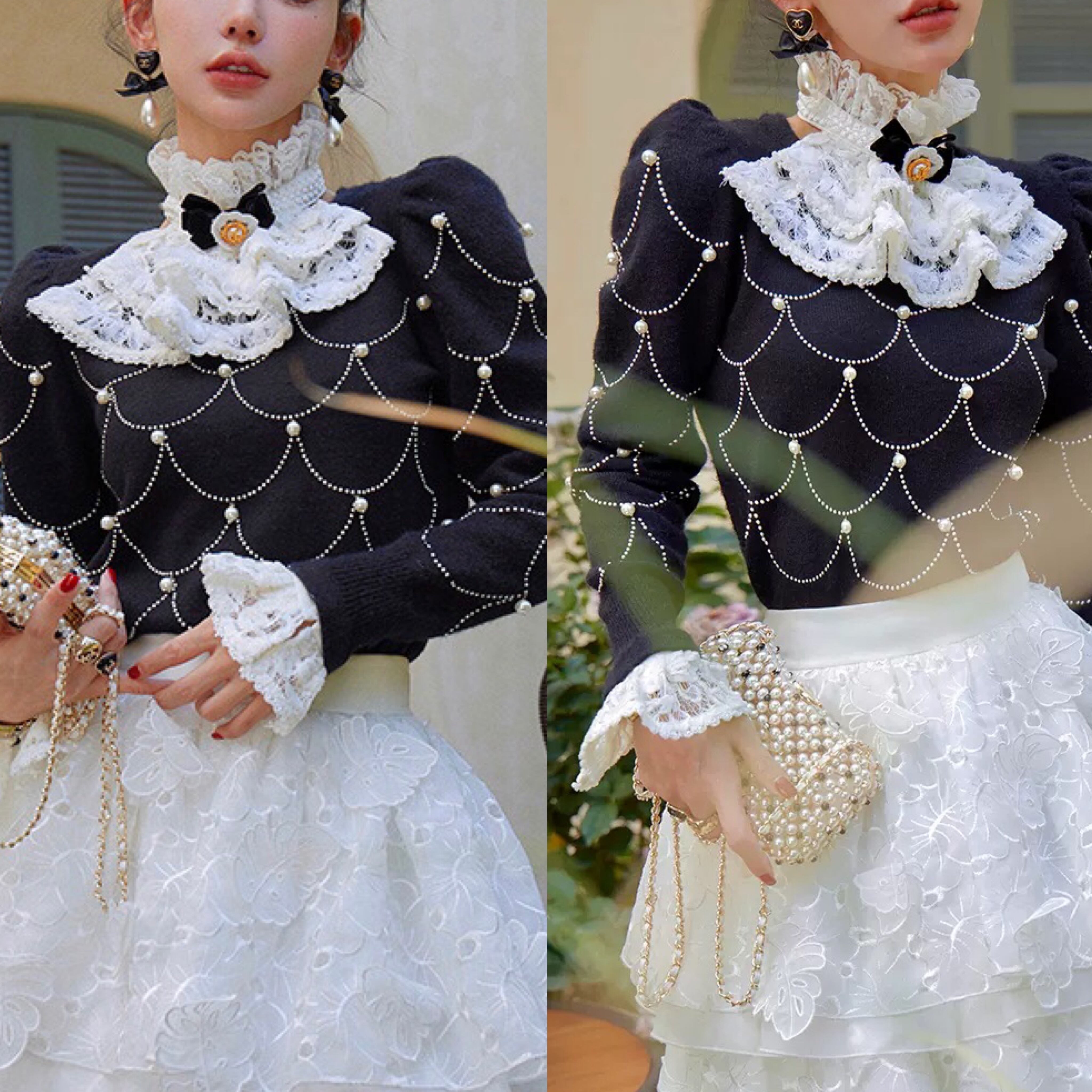 【1点のみ❣️】ハイネック 姫 パール ゴージャス ブラウス セーター カーディガン