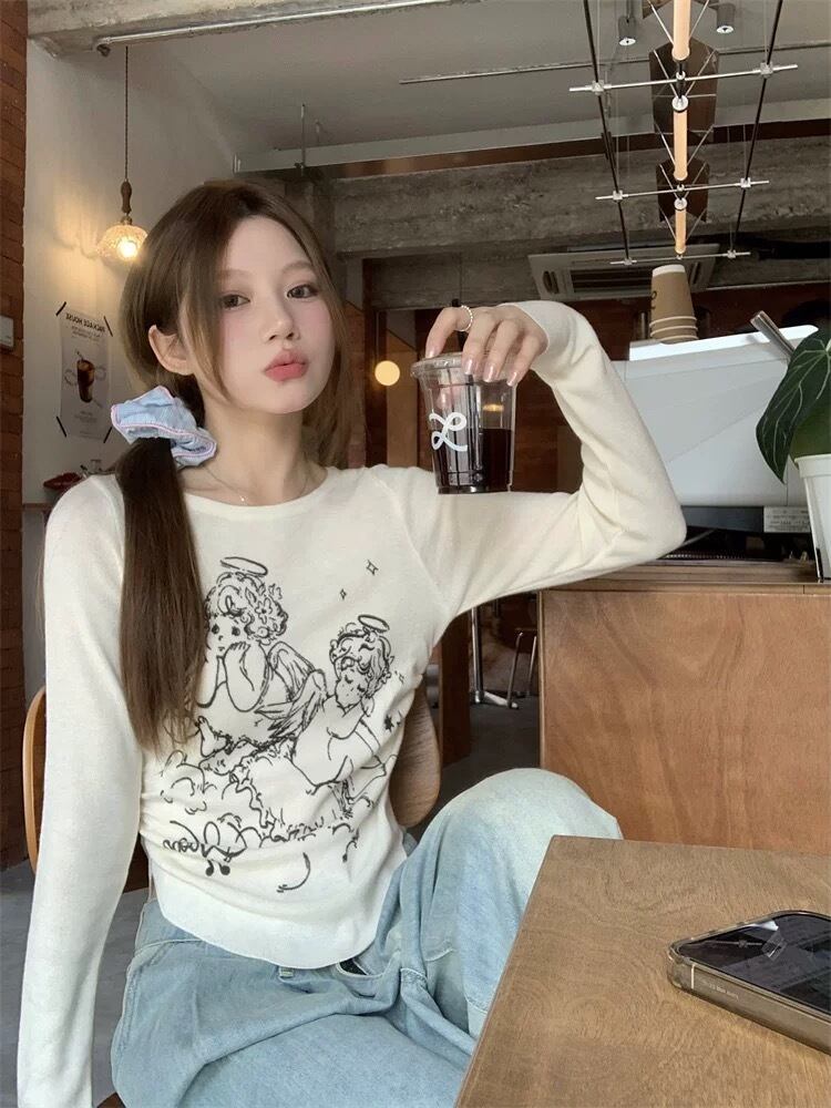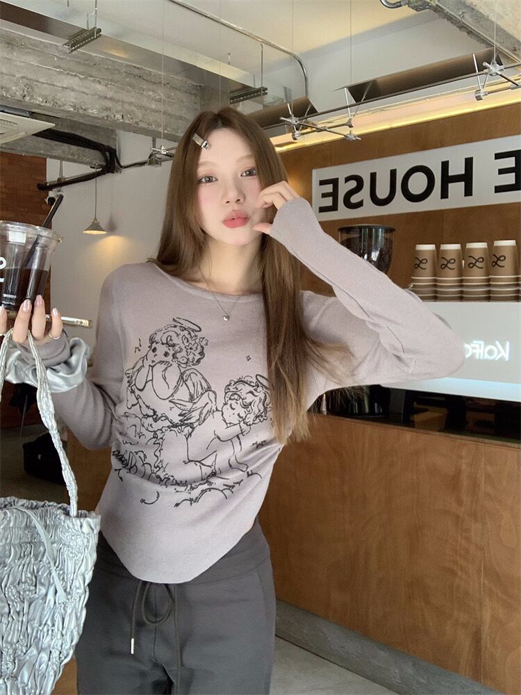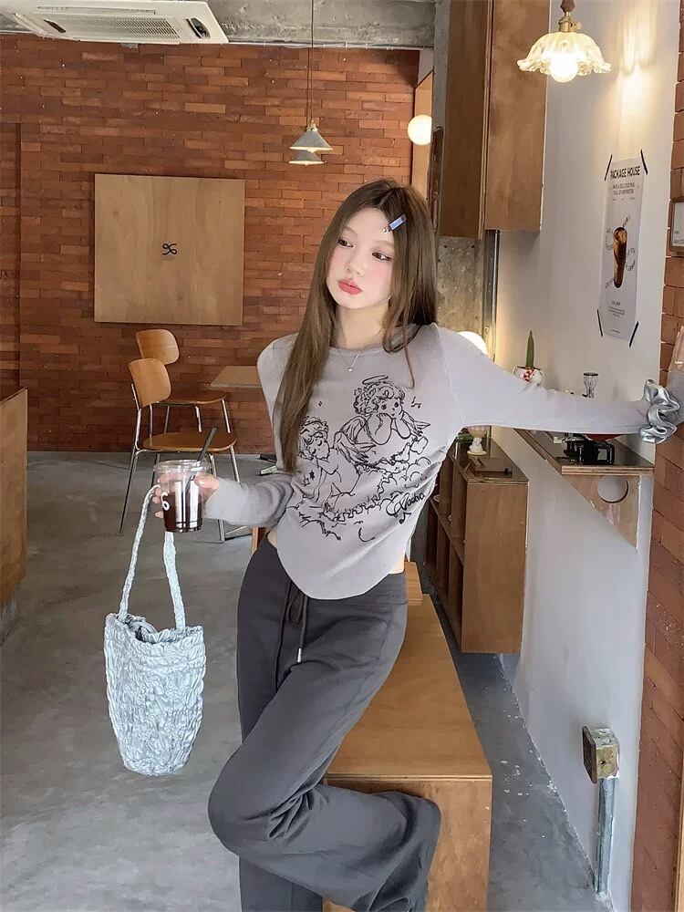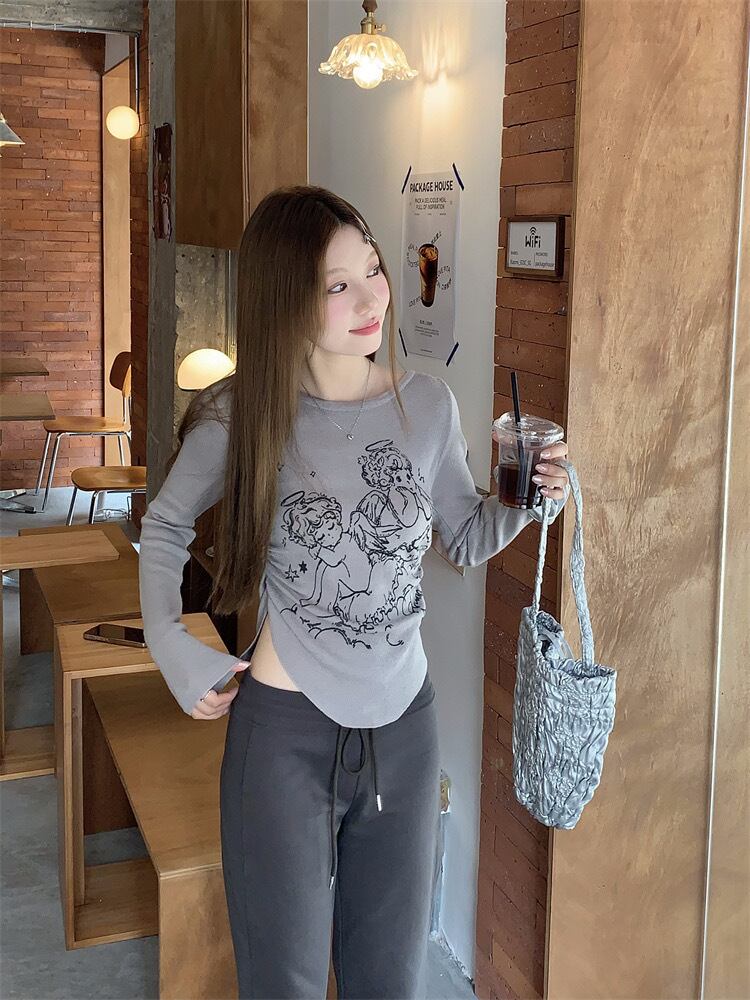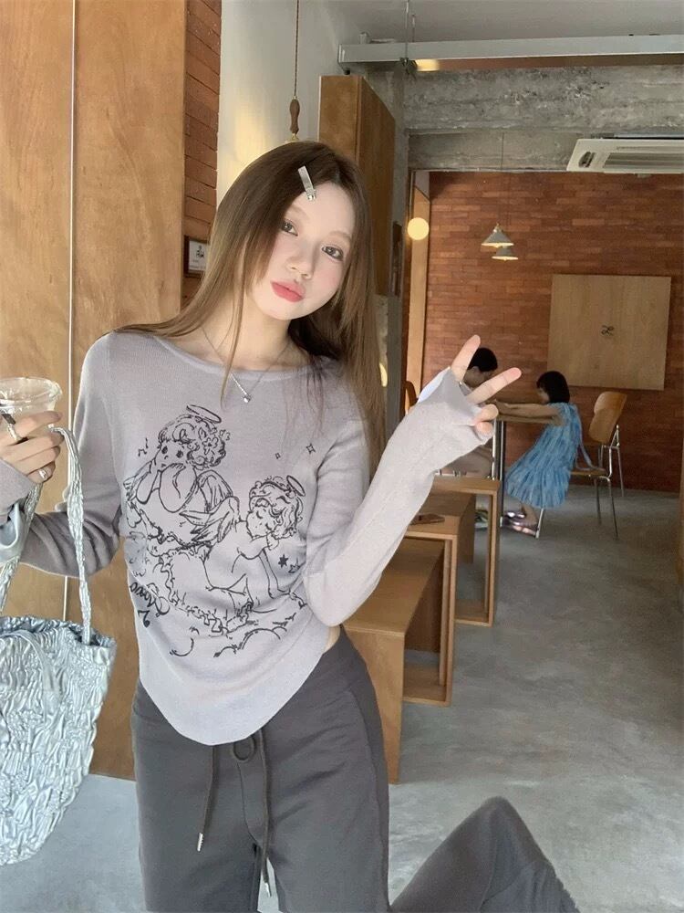 トップス カジュアル ブラウス 天使 可愛い グレー