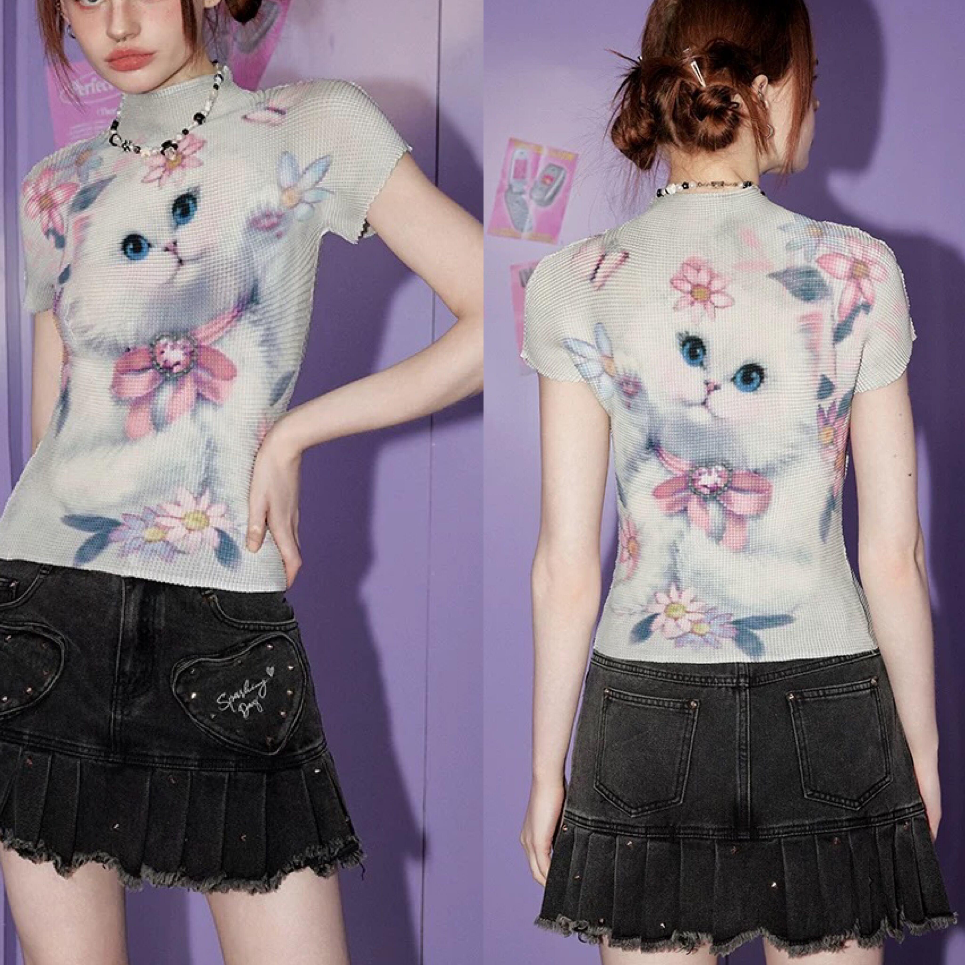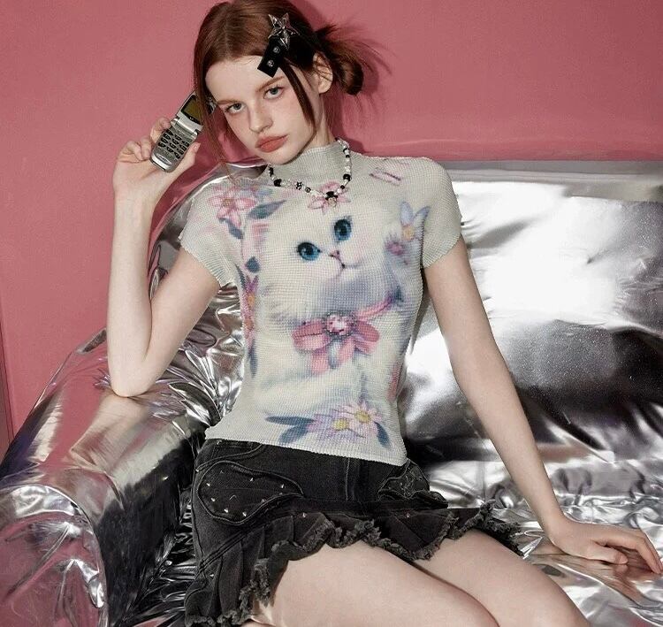 猫ちゃん ブラウス トップス カジュアル リボン ピンク ガーリー