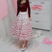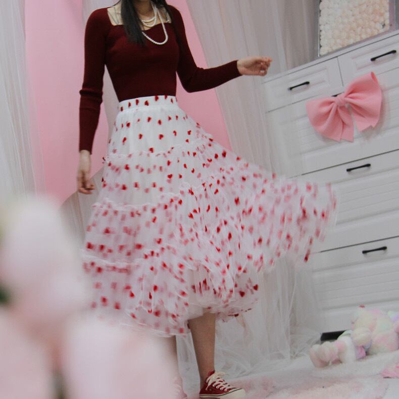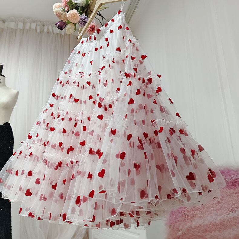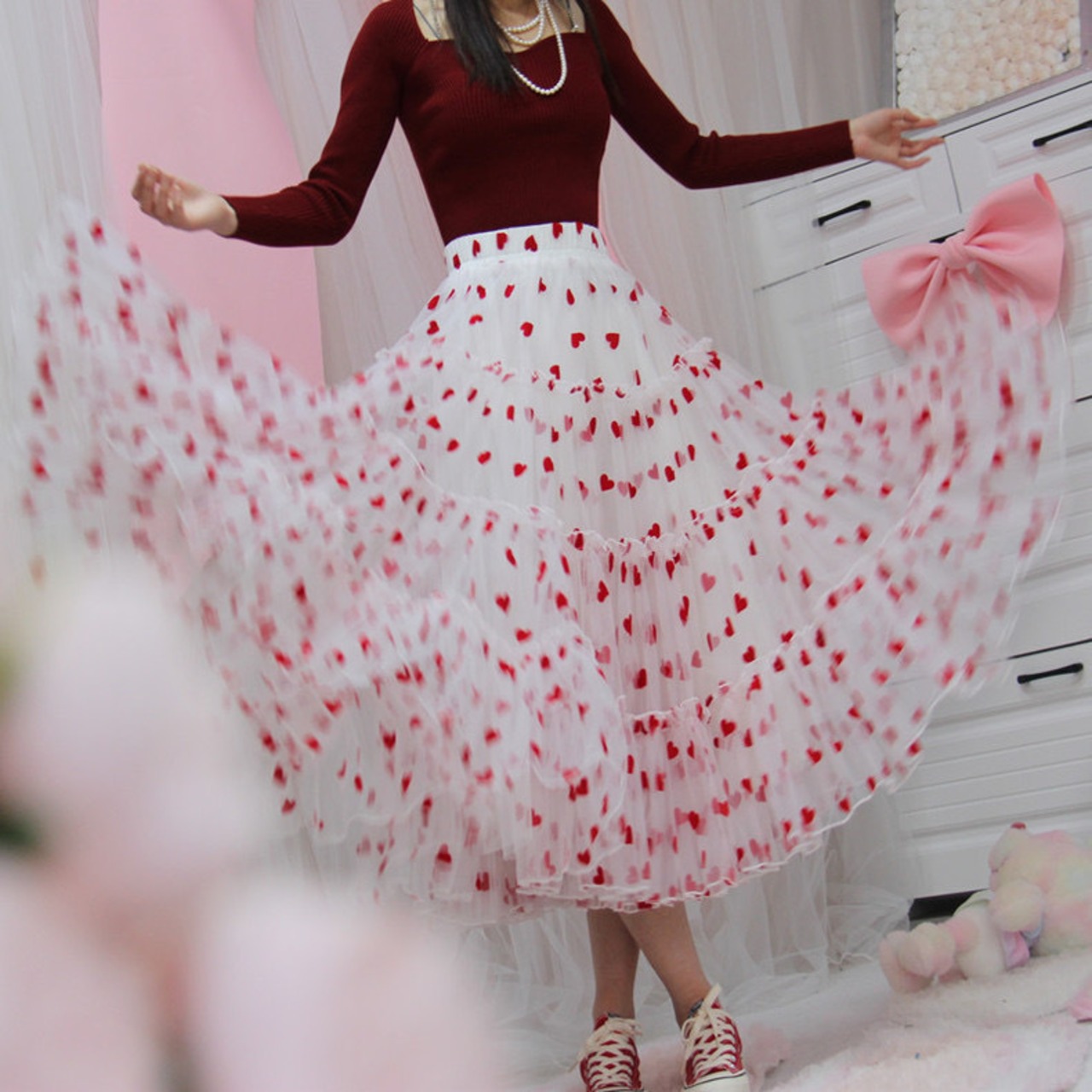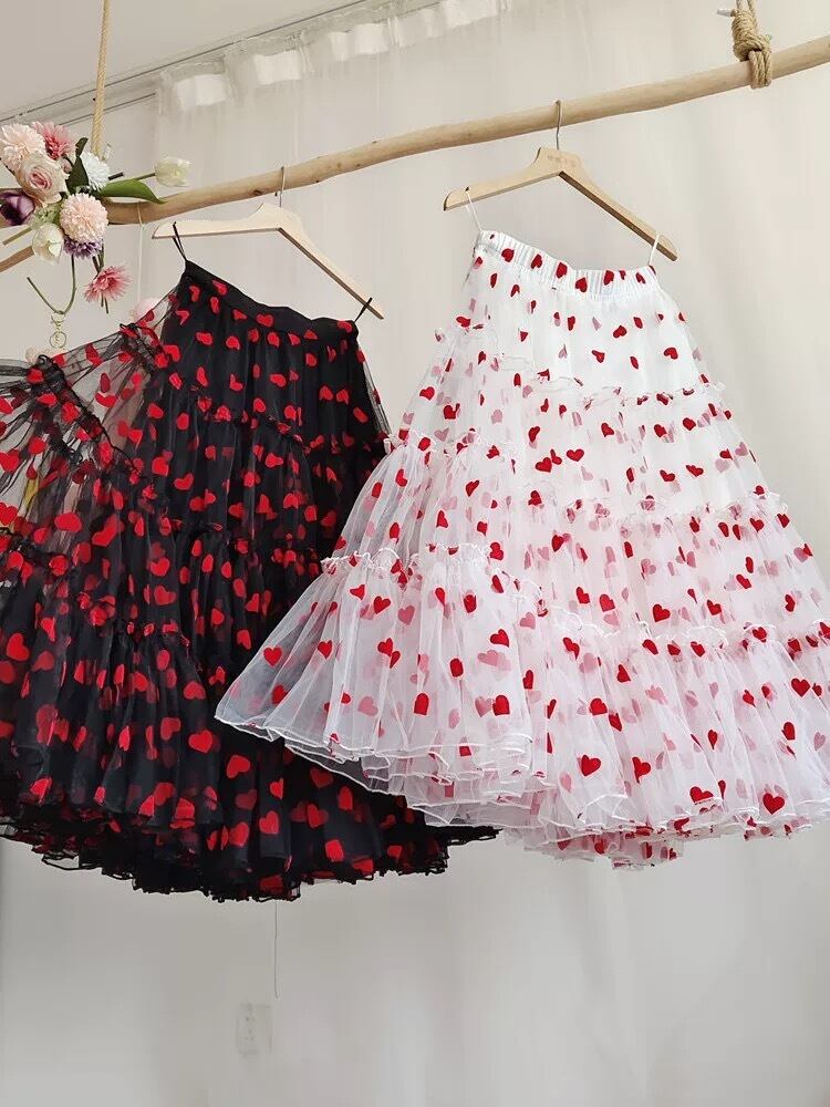 【白】2XL XL ホワイト ハート 赤 ボトムス ガーリー スカート