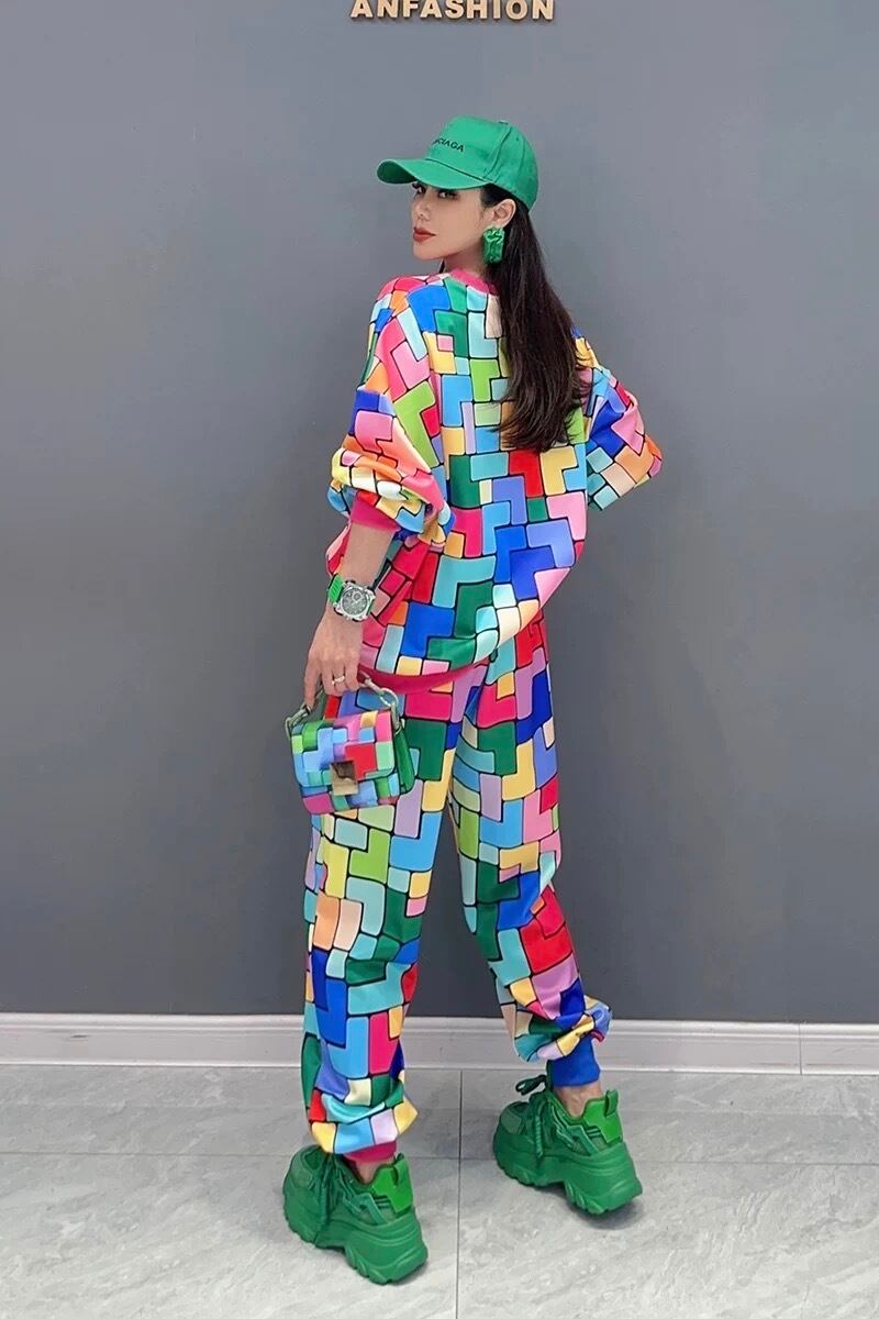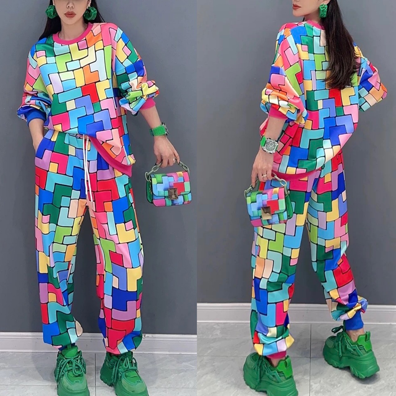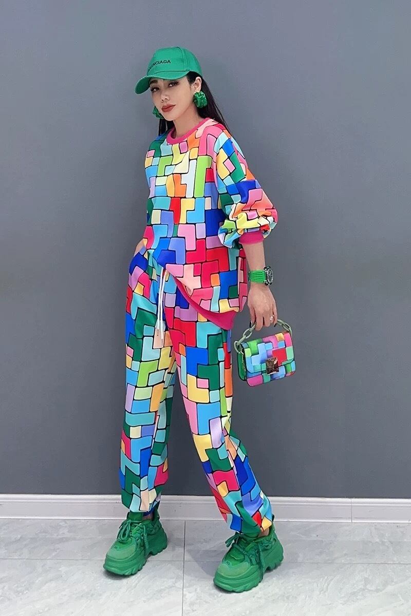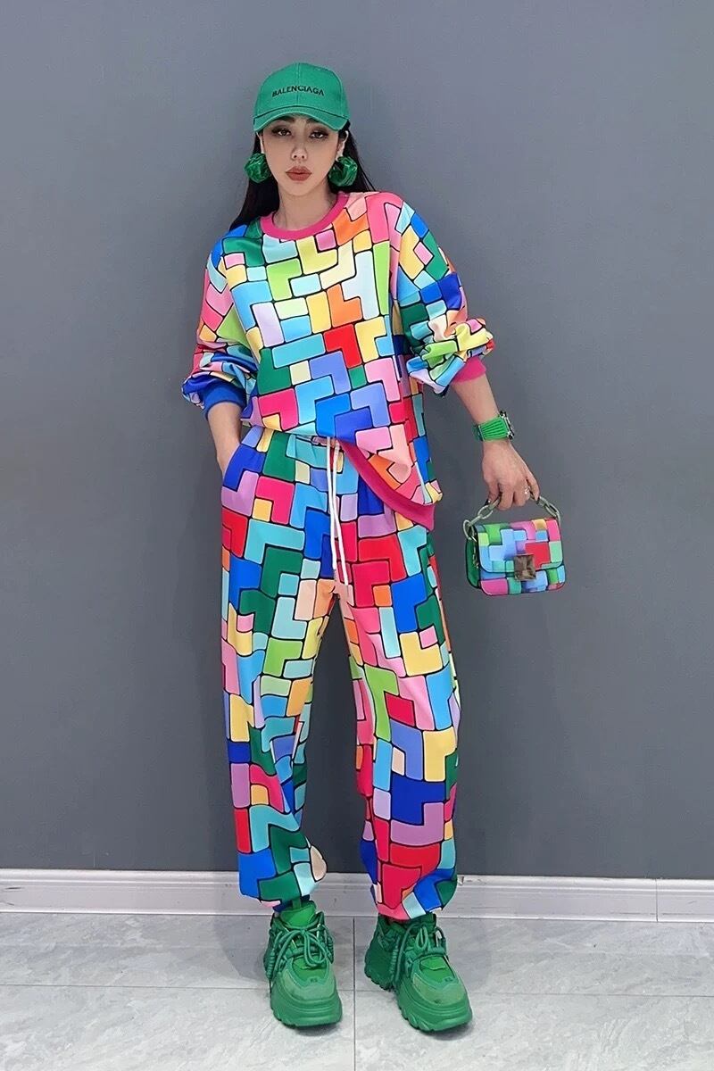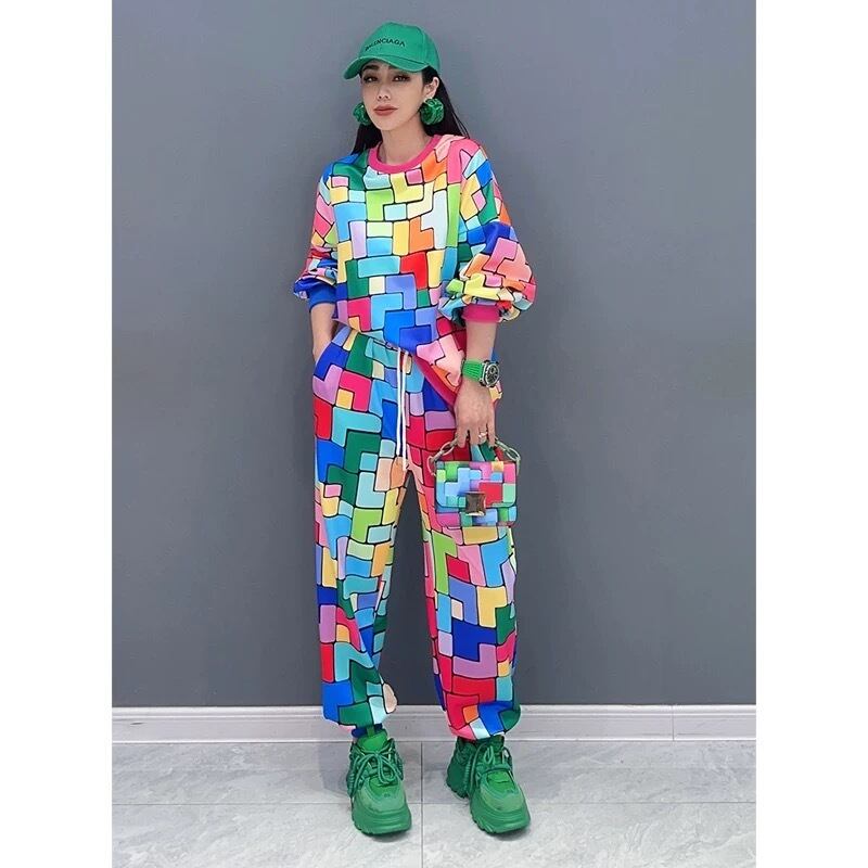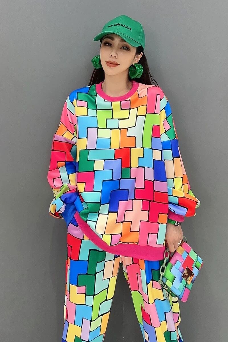 カラフル チェック スウェット セットアップ ルームウェア 虹 チェック