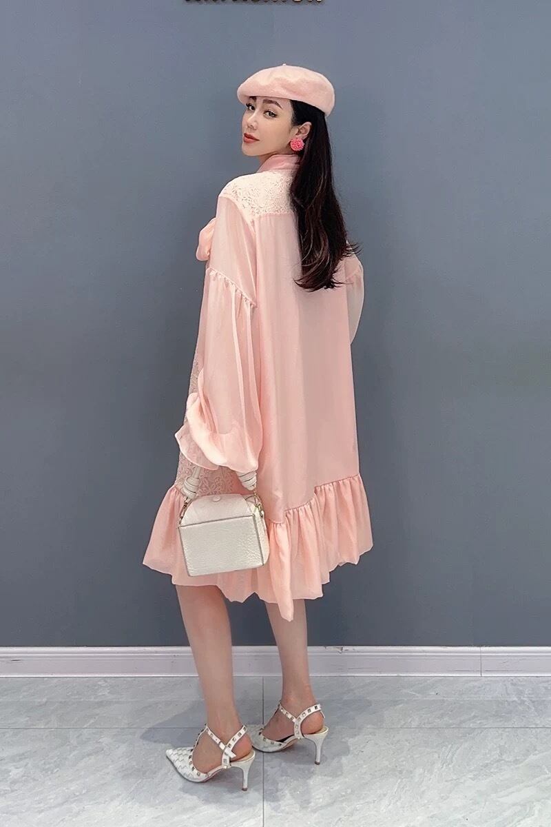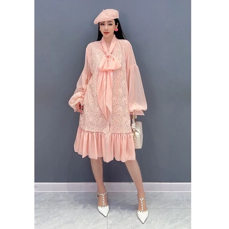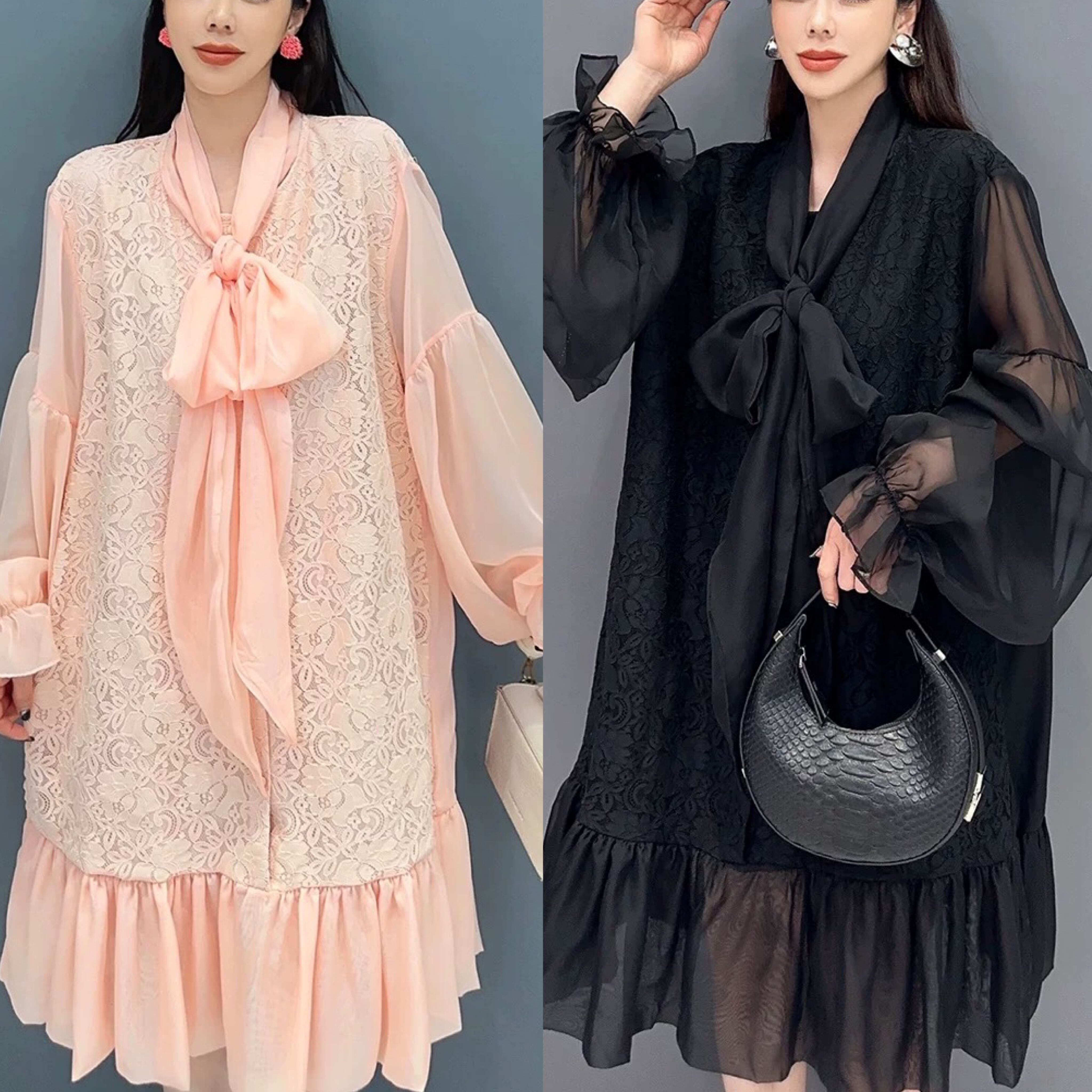 ブラウス リボン ワンピース 黒 ピンク ガーリー ゆったり