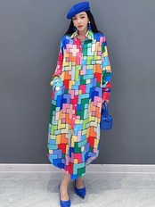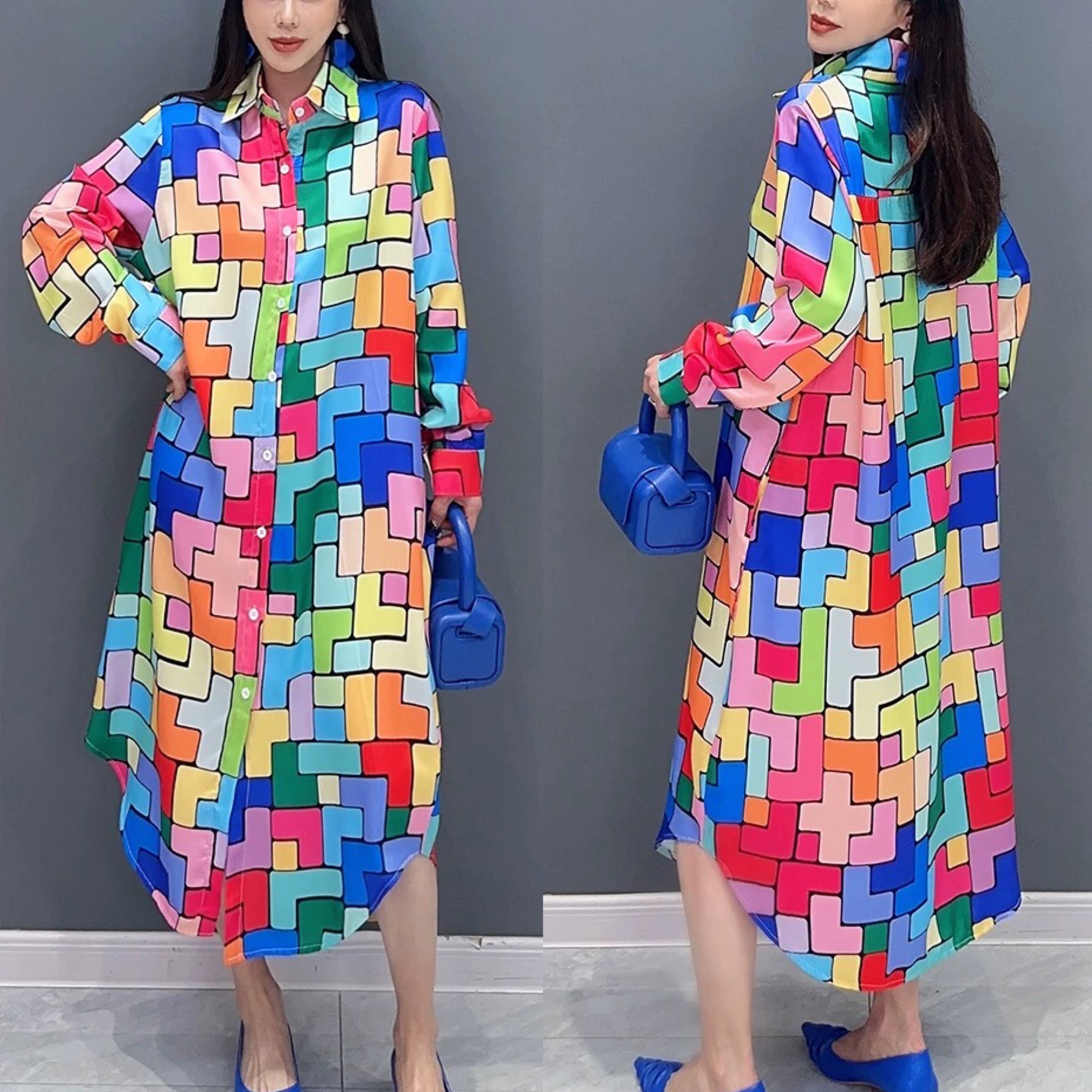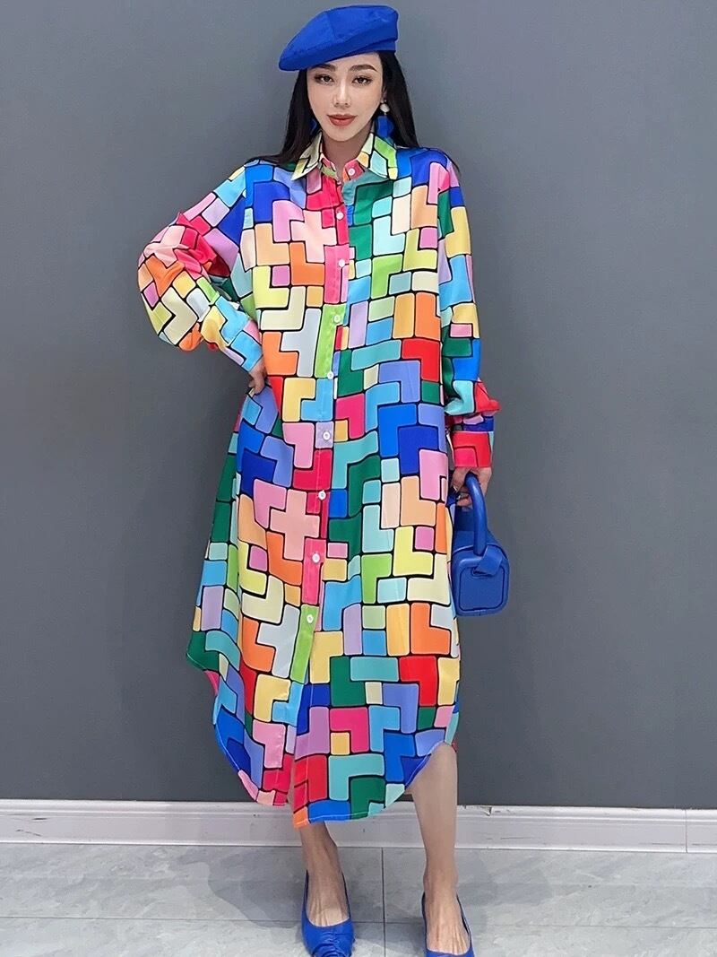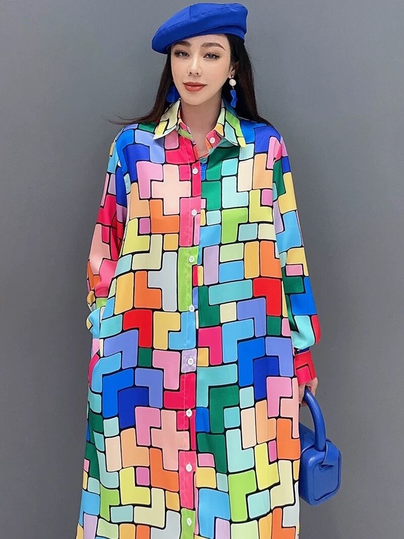 カラフル チェック ワンピース シャツ ブラウス 虹 レインボー