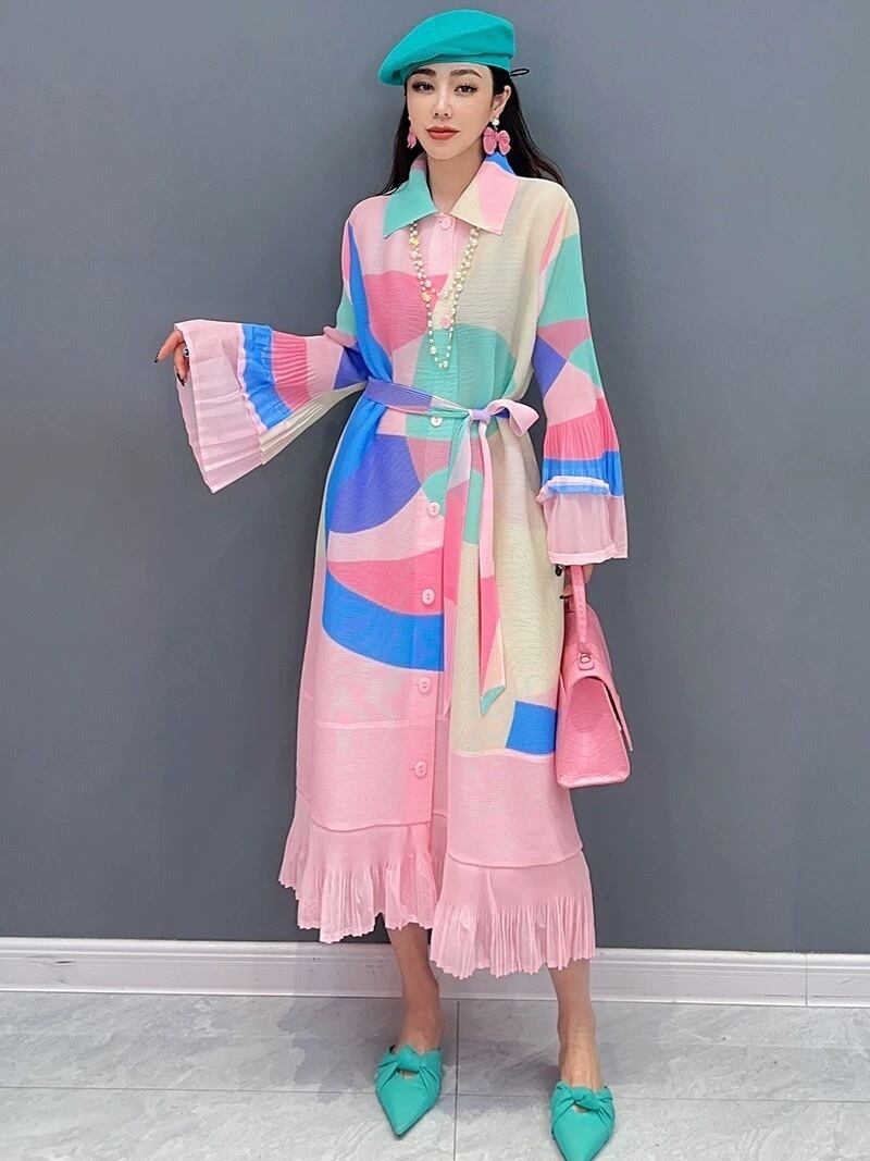カラフル 水色 ピンク ブラウス カーディガン ワンピース 黄色 レインボー