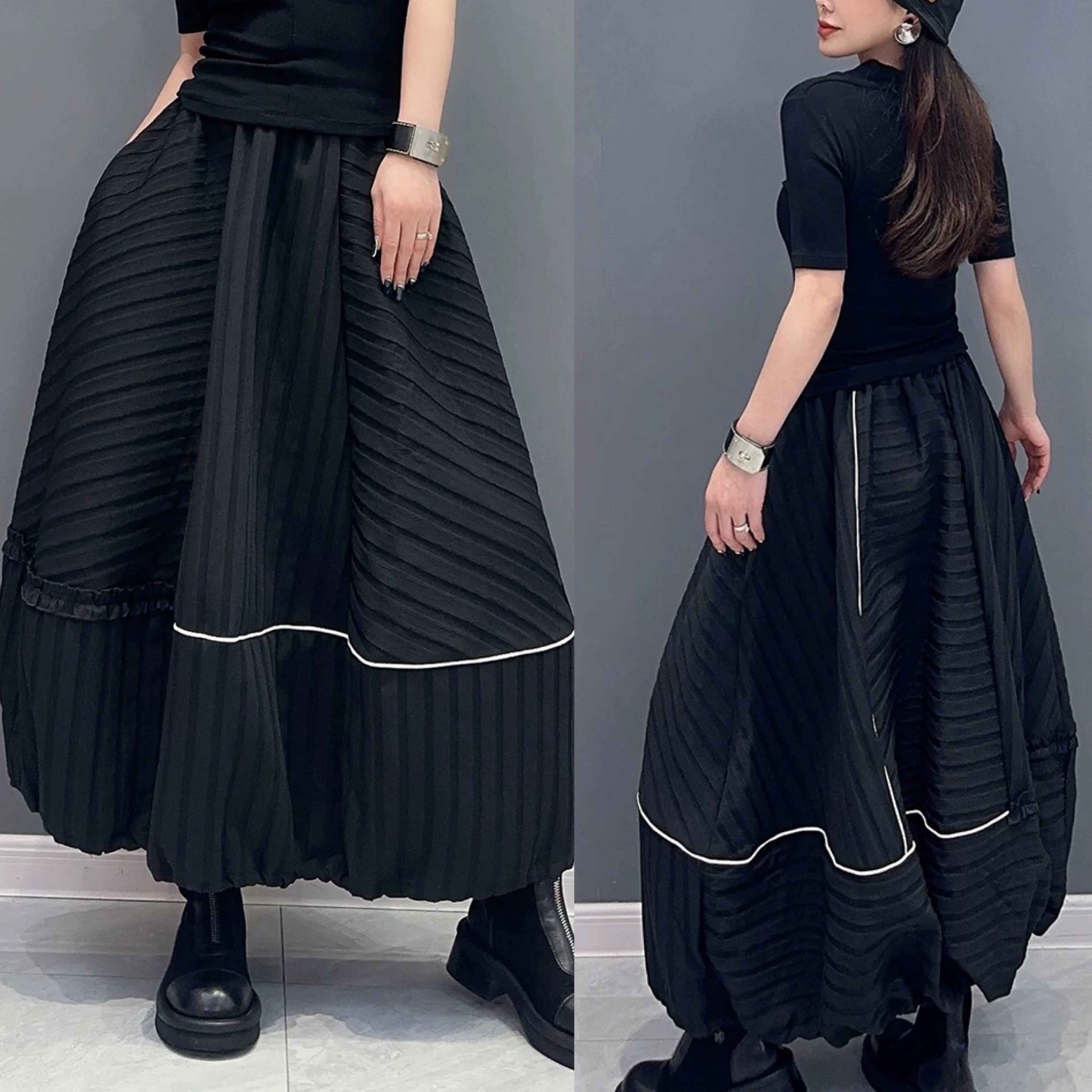ボリューム 黒 スカート バルーン ボトムス