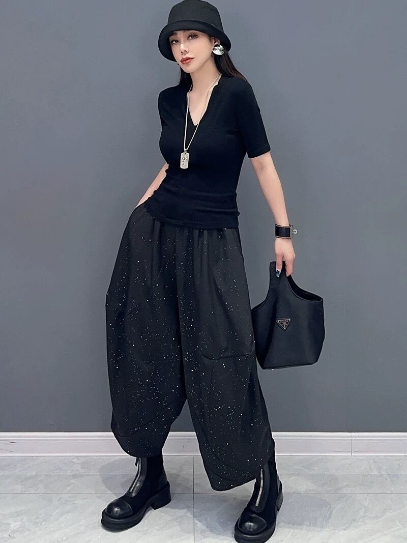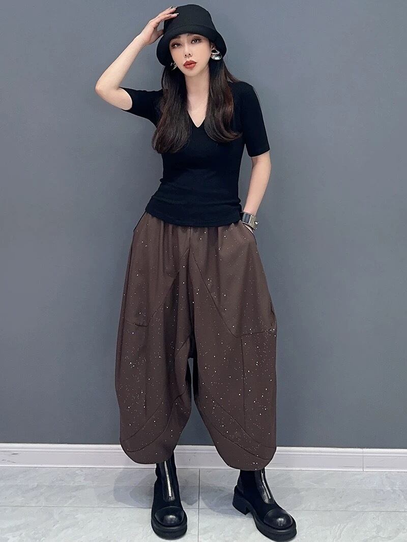 黒 パンツ 茶色 ラメ ボトムス スウェット カジュアル