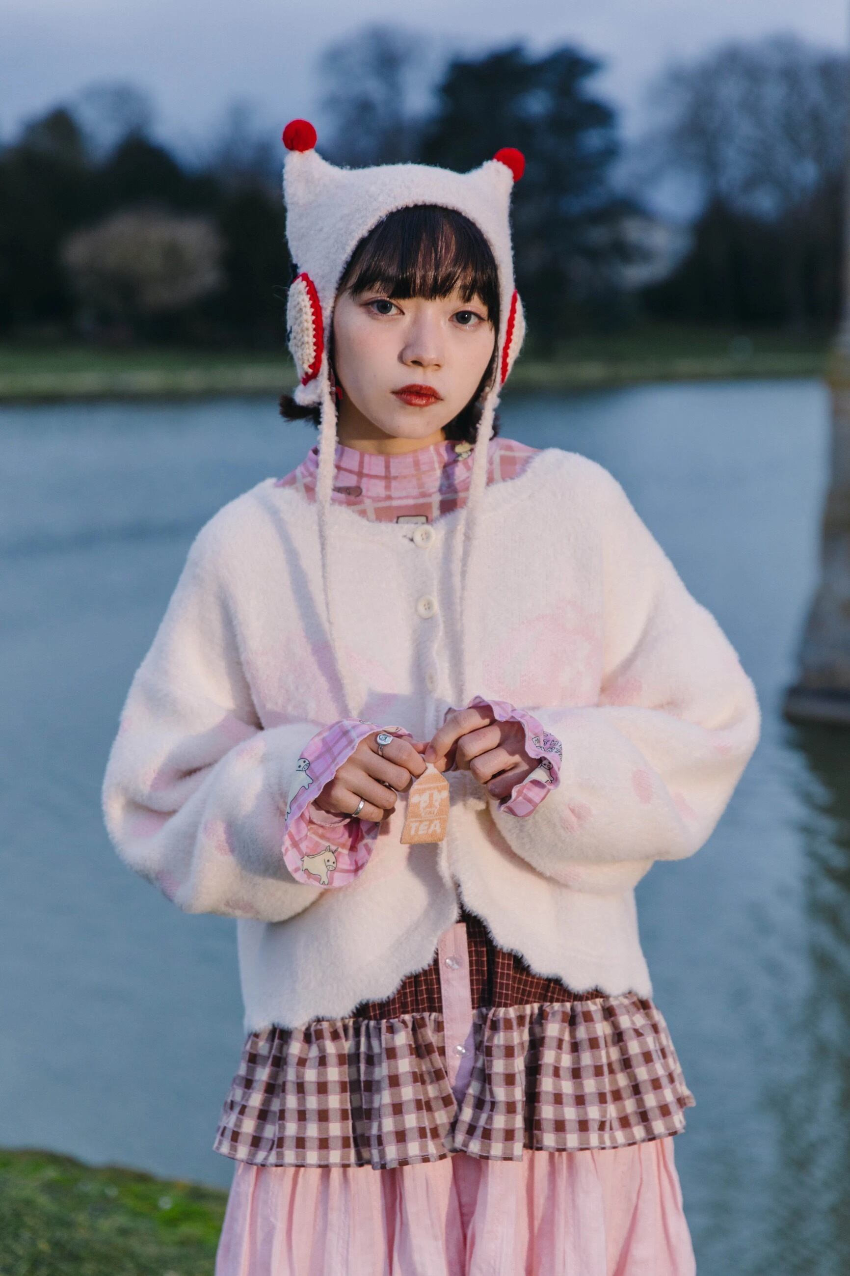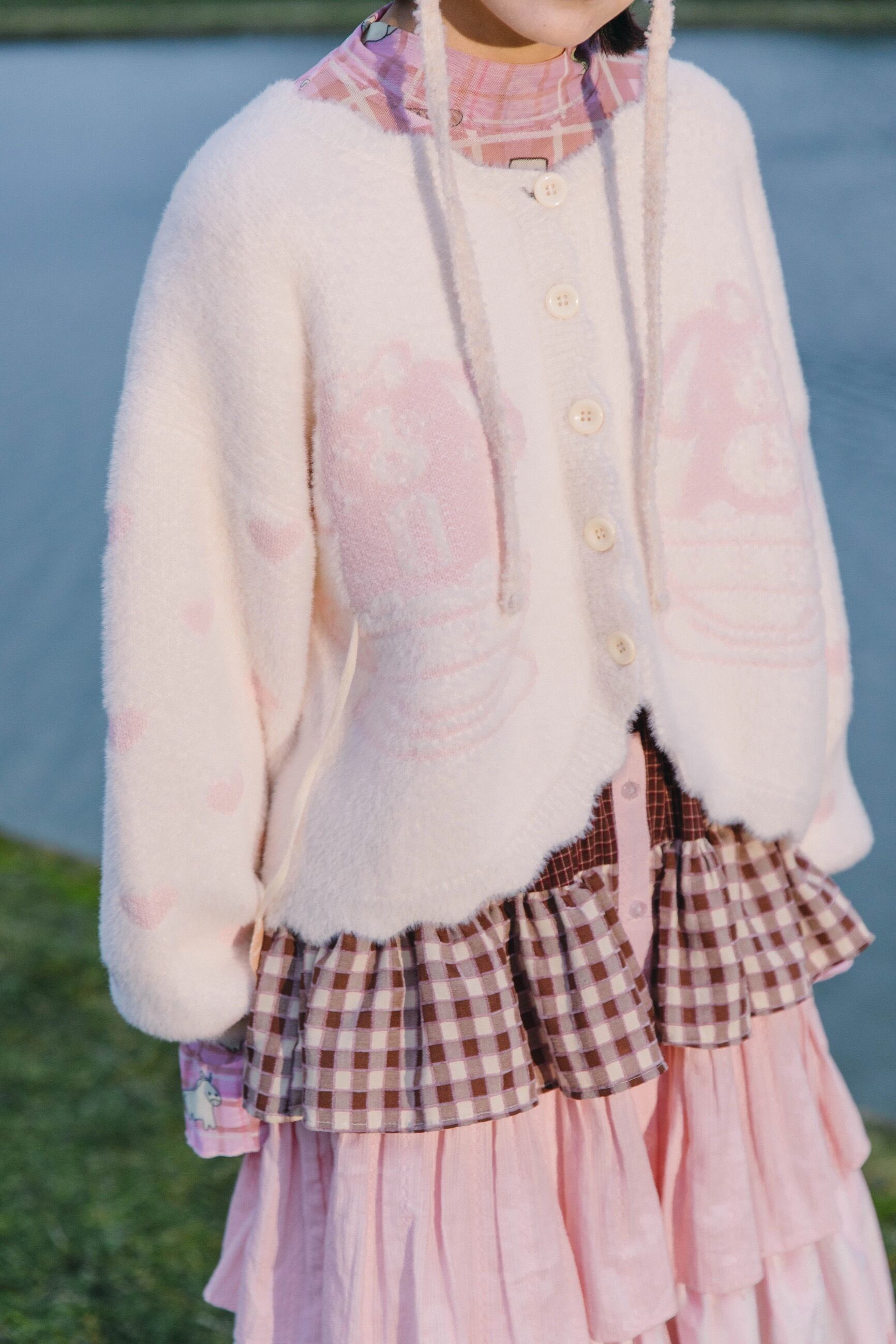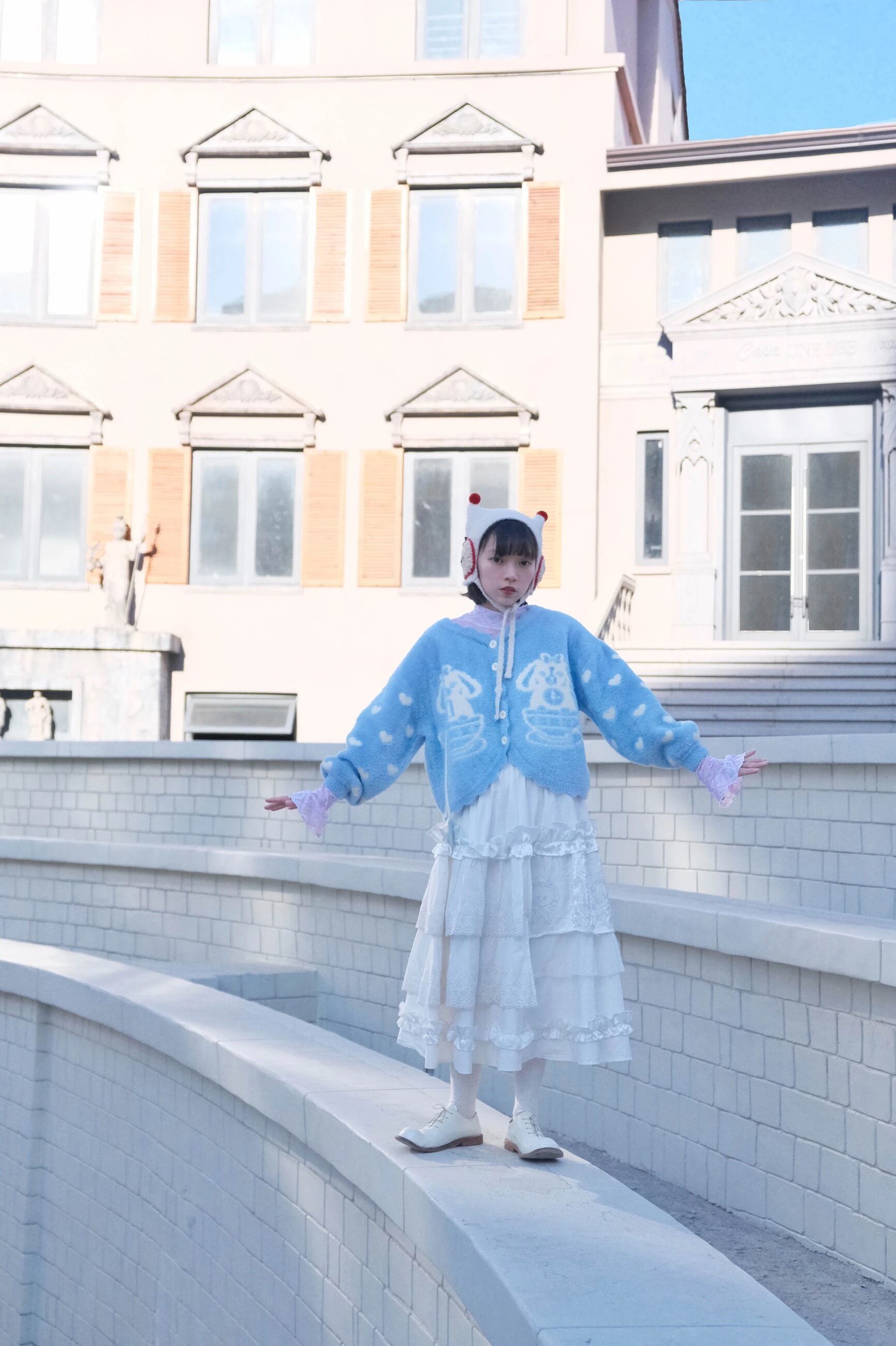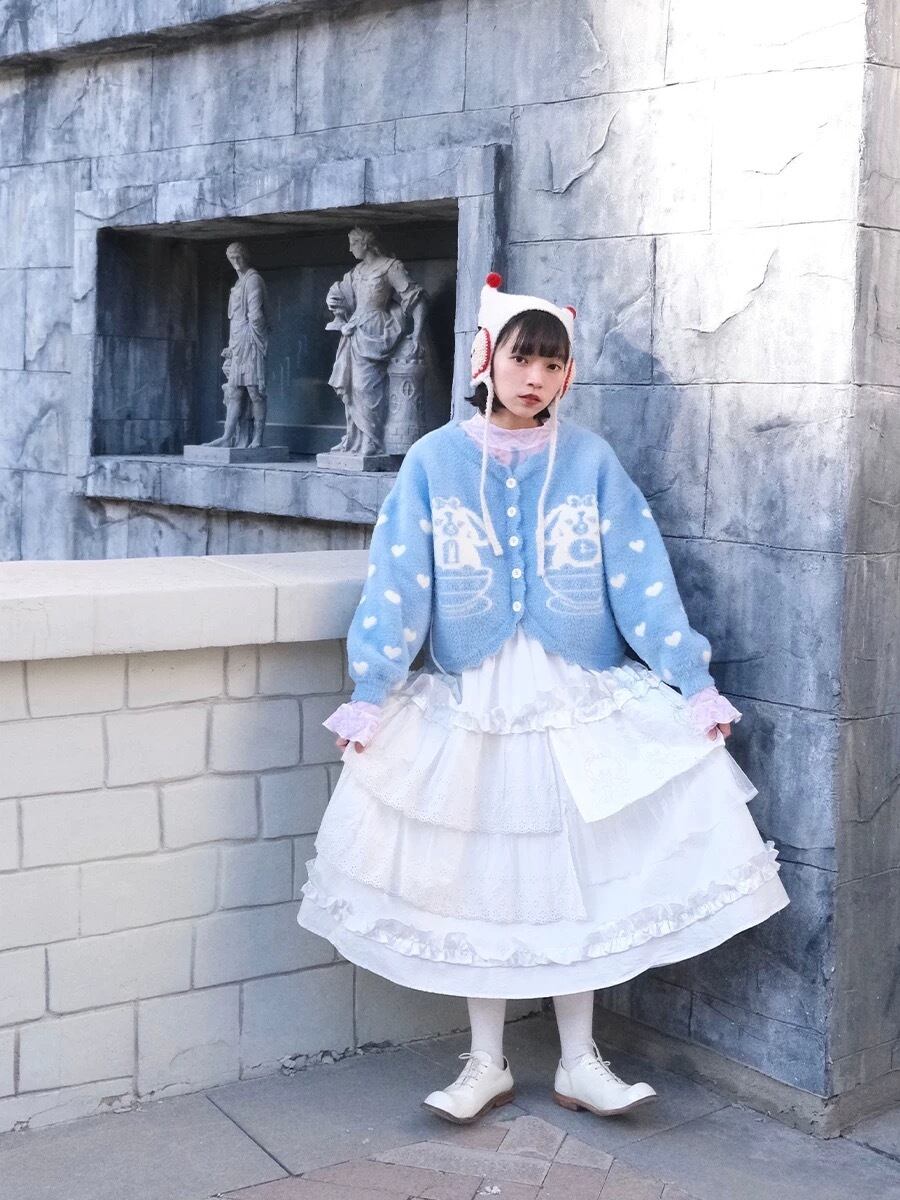 カーディガン ピンク 水色 ガーリー セーター 可愛い ハート ニット アウター