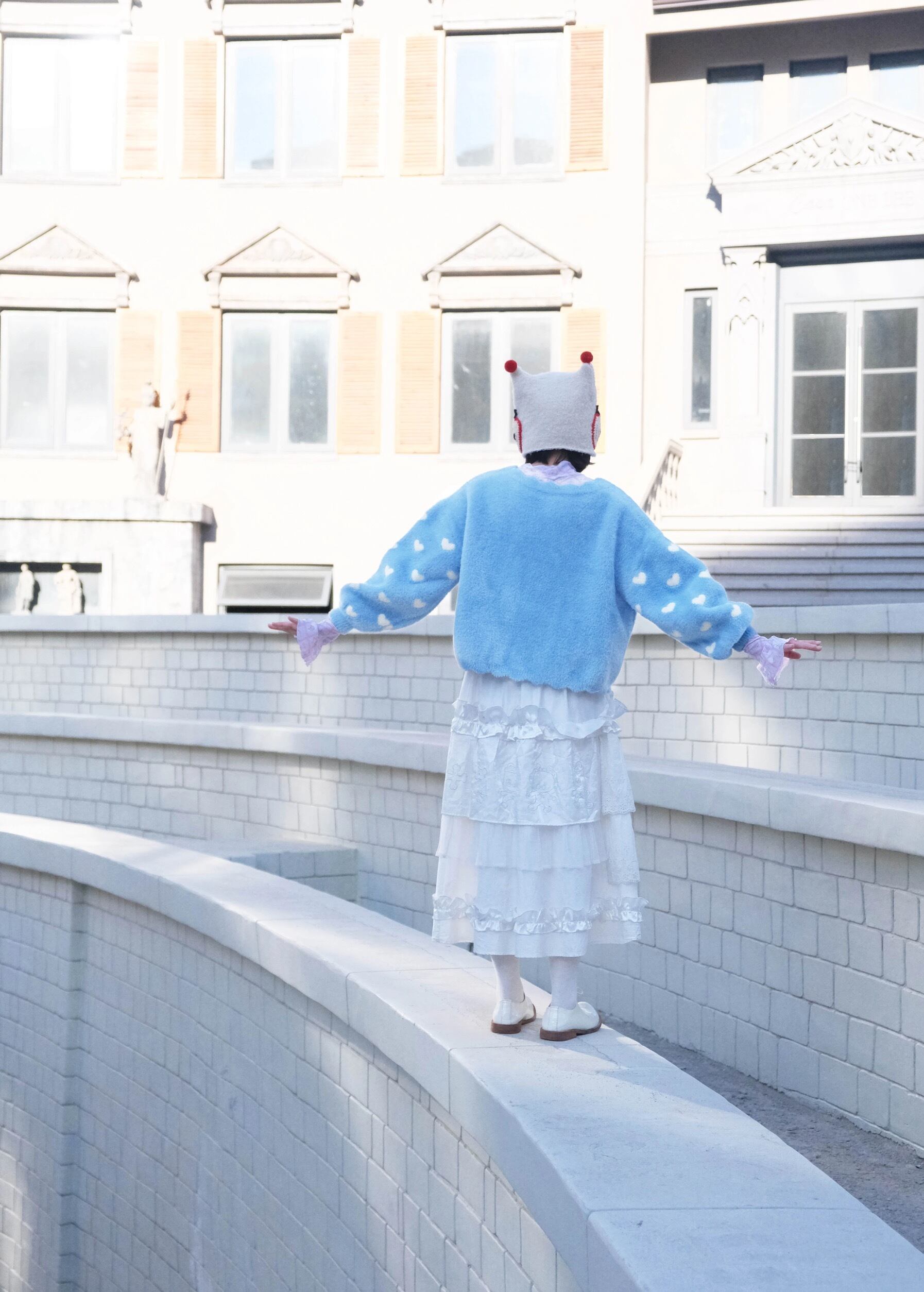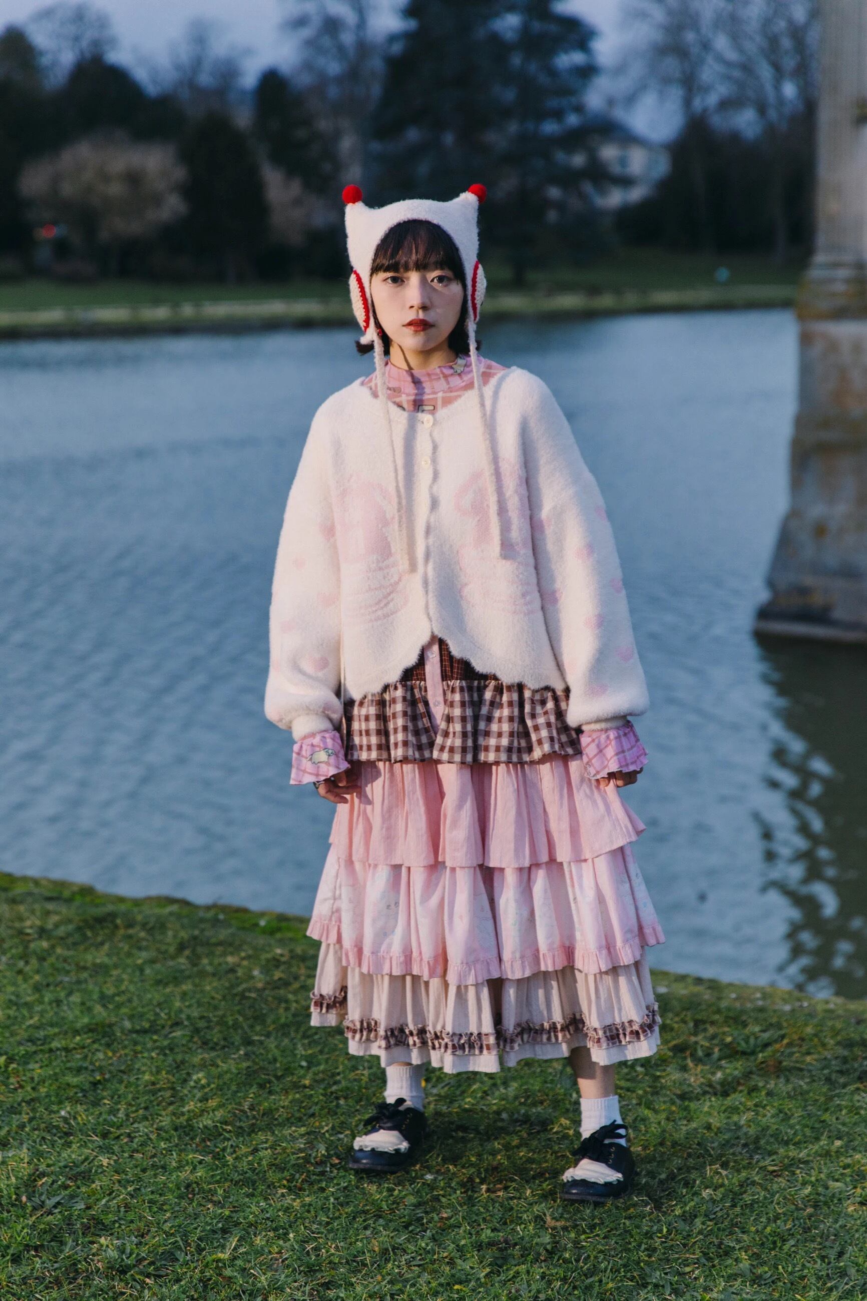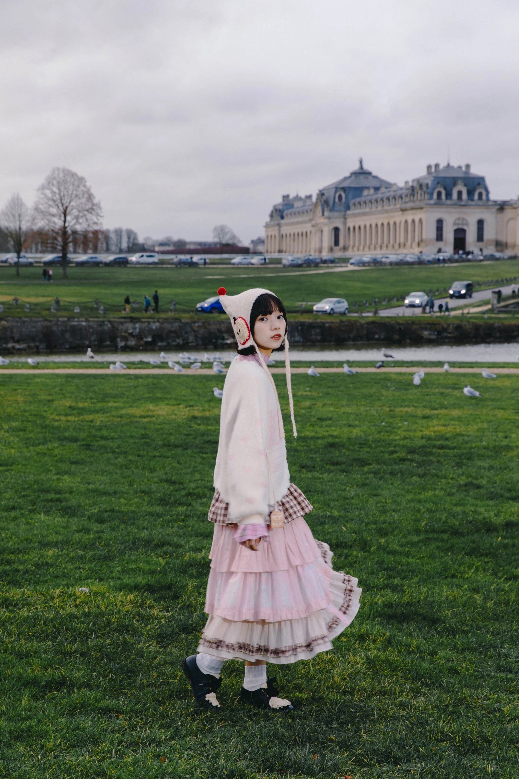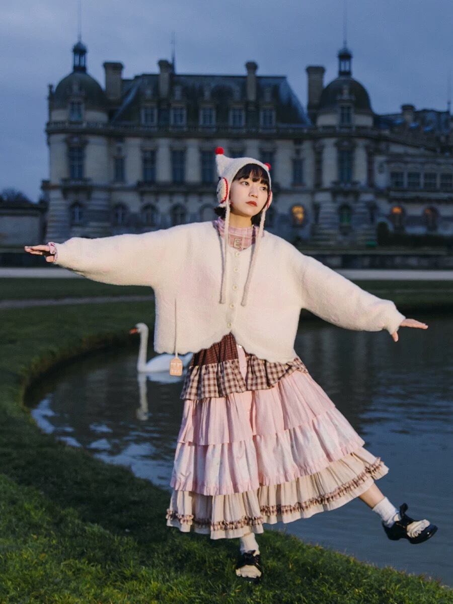 カーディガン ピンク 水色 ガーリー セーター 可愛い ハート ニット アウター