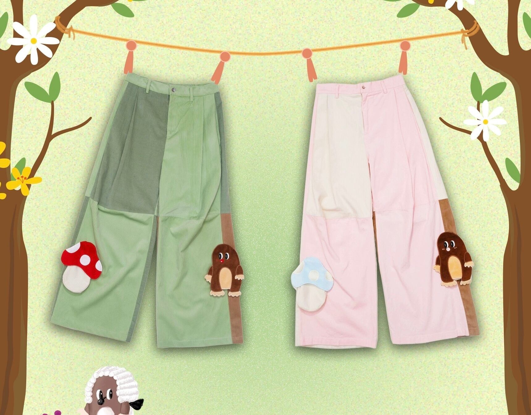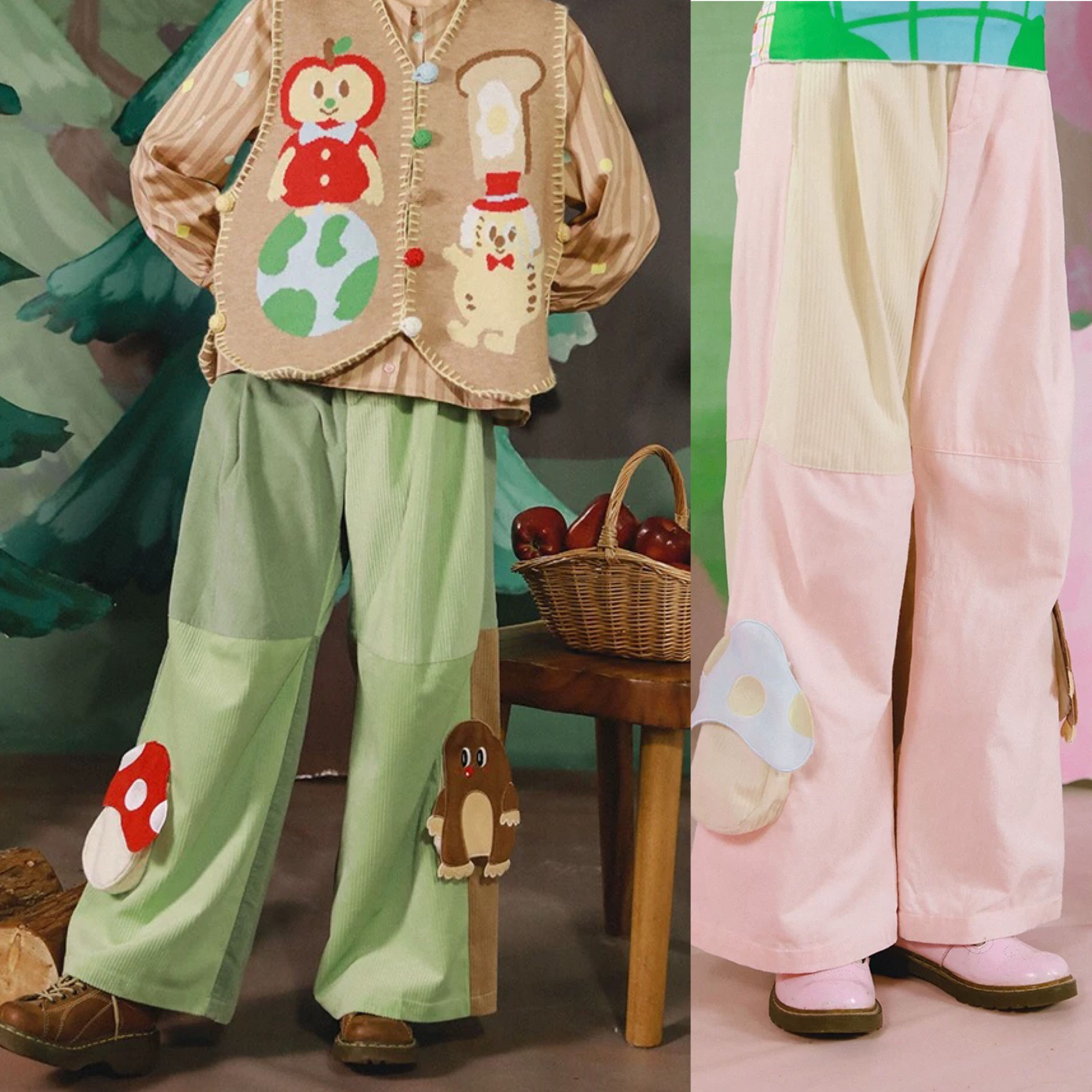パンツ 緑 ピンク チェック もぐら ガーリー ボトムス 星 スウェット
