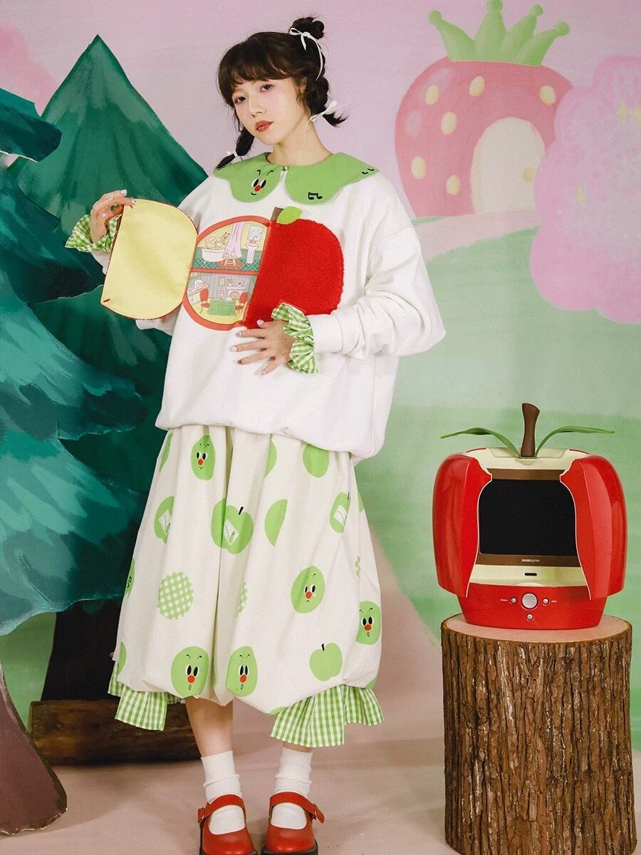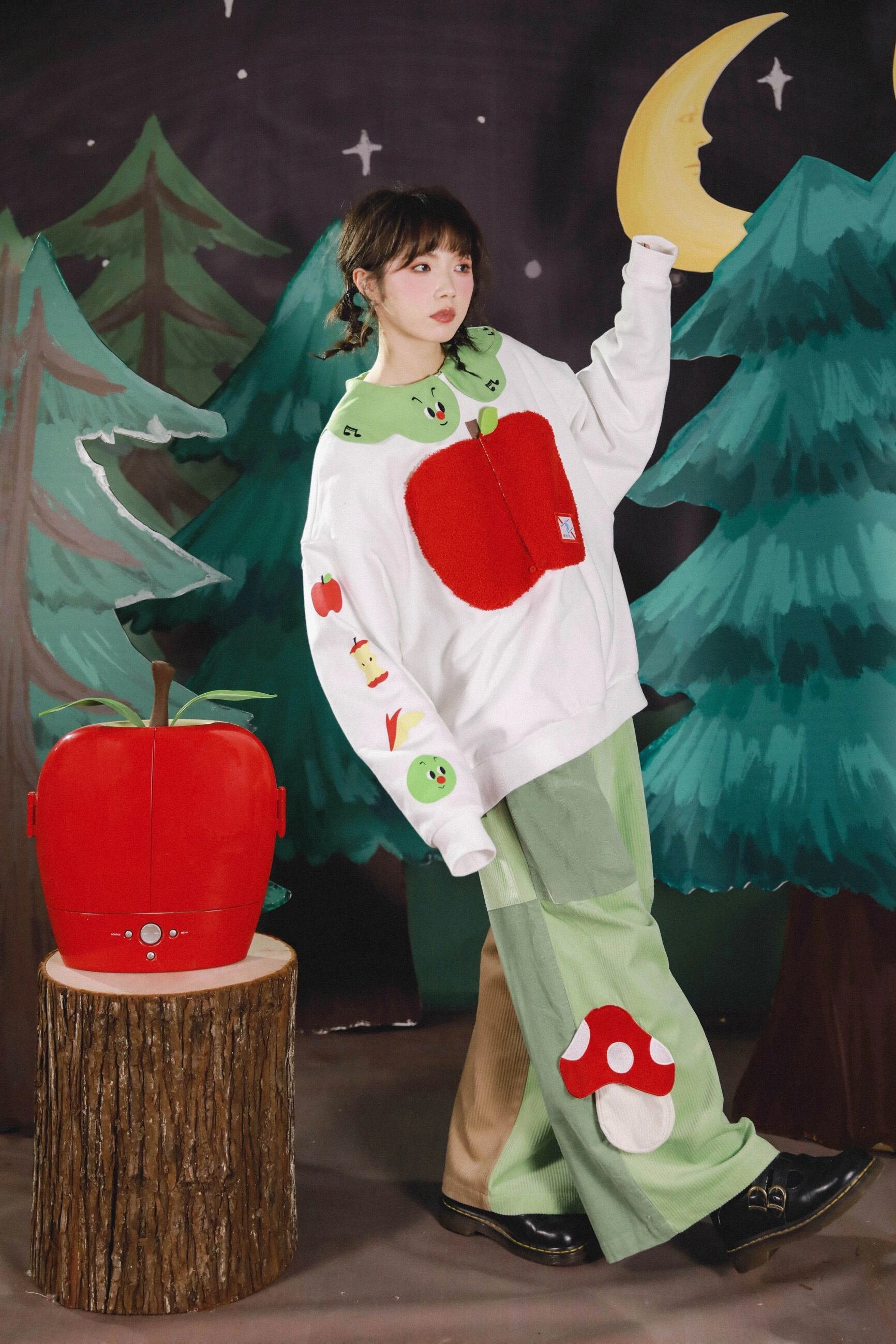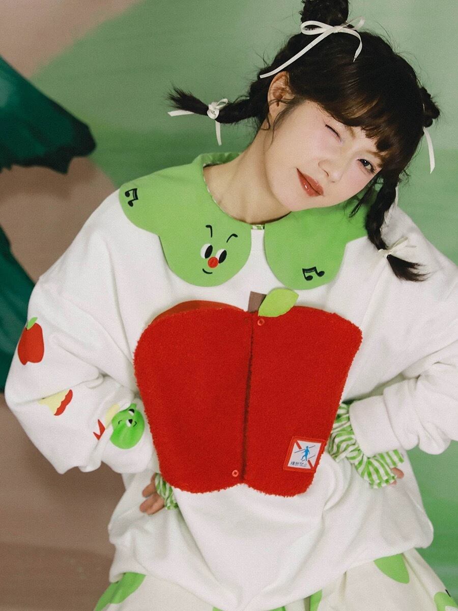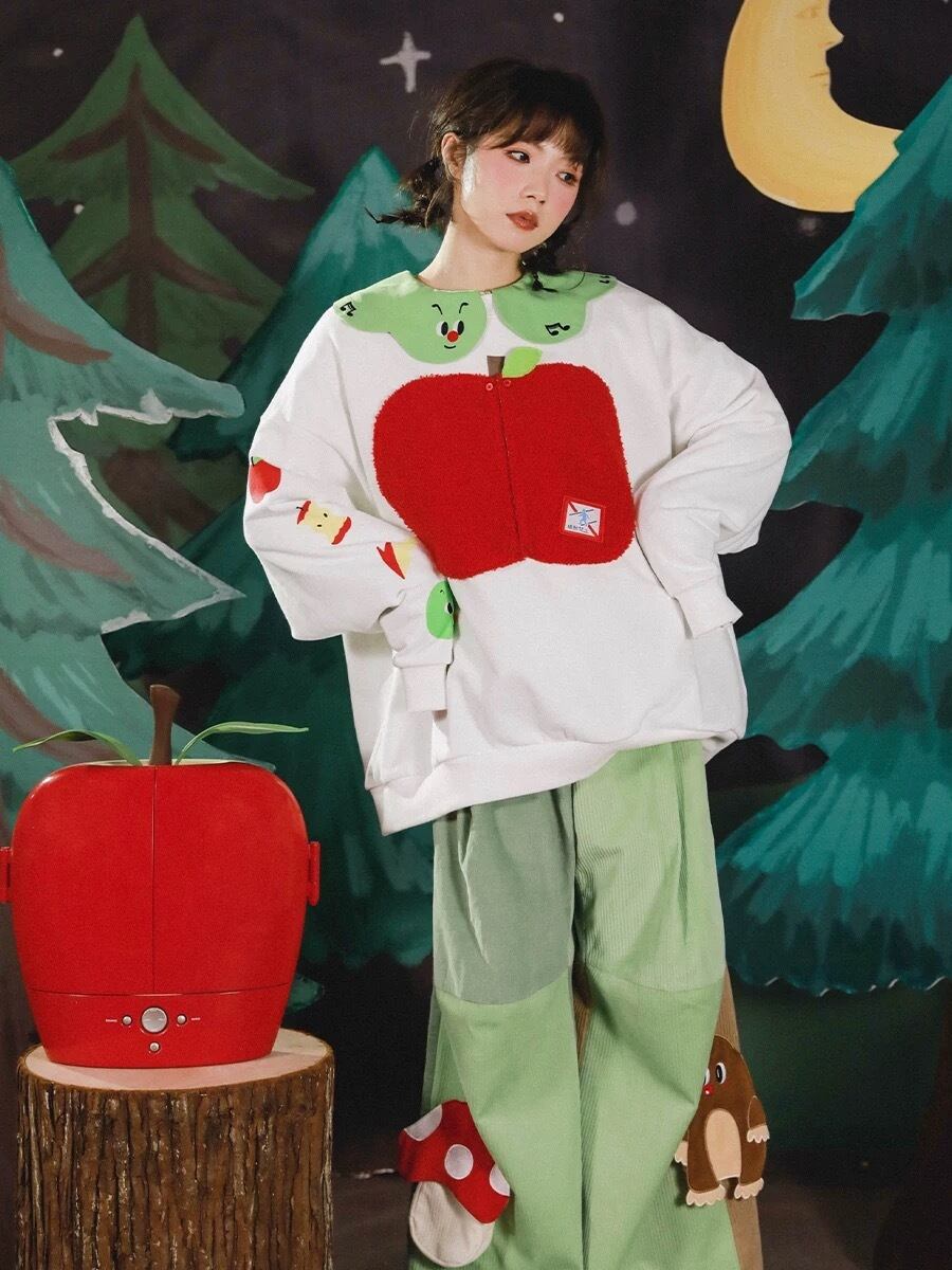 りんご トレーナー フリース スウェット 赤 フルーツ パーカー