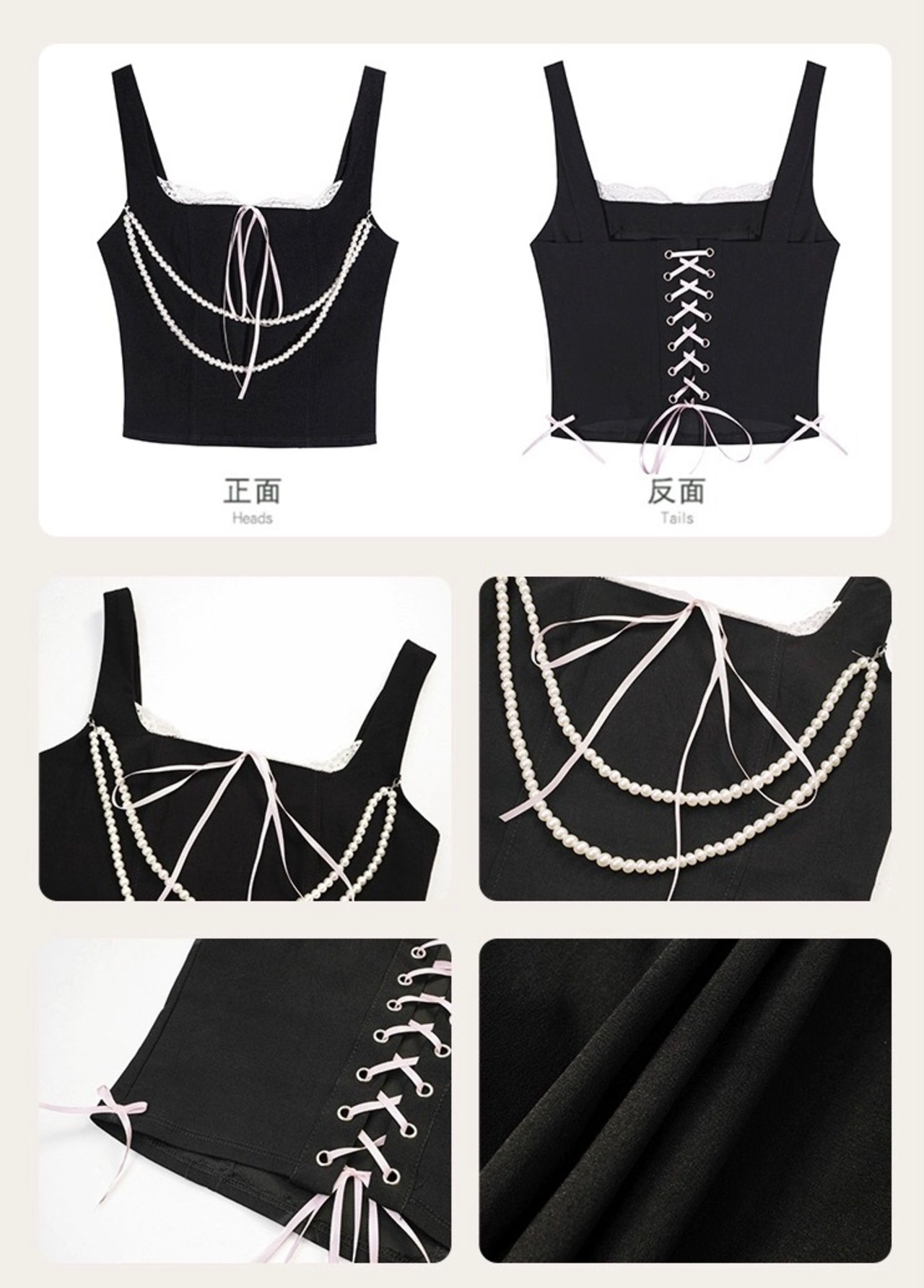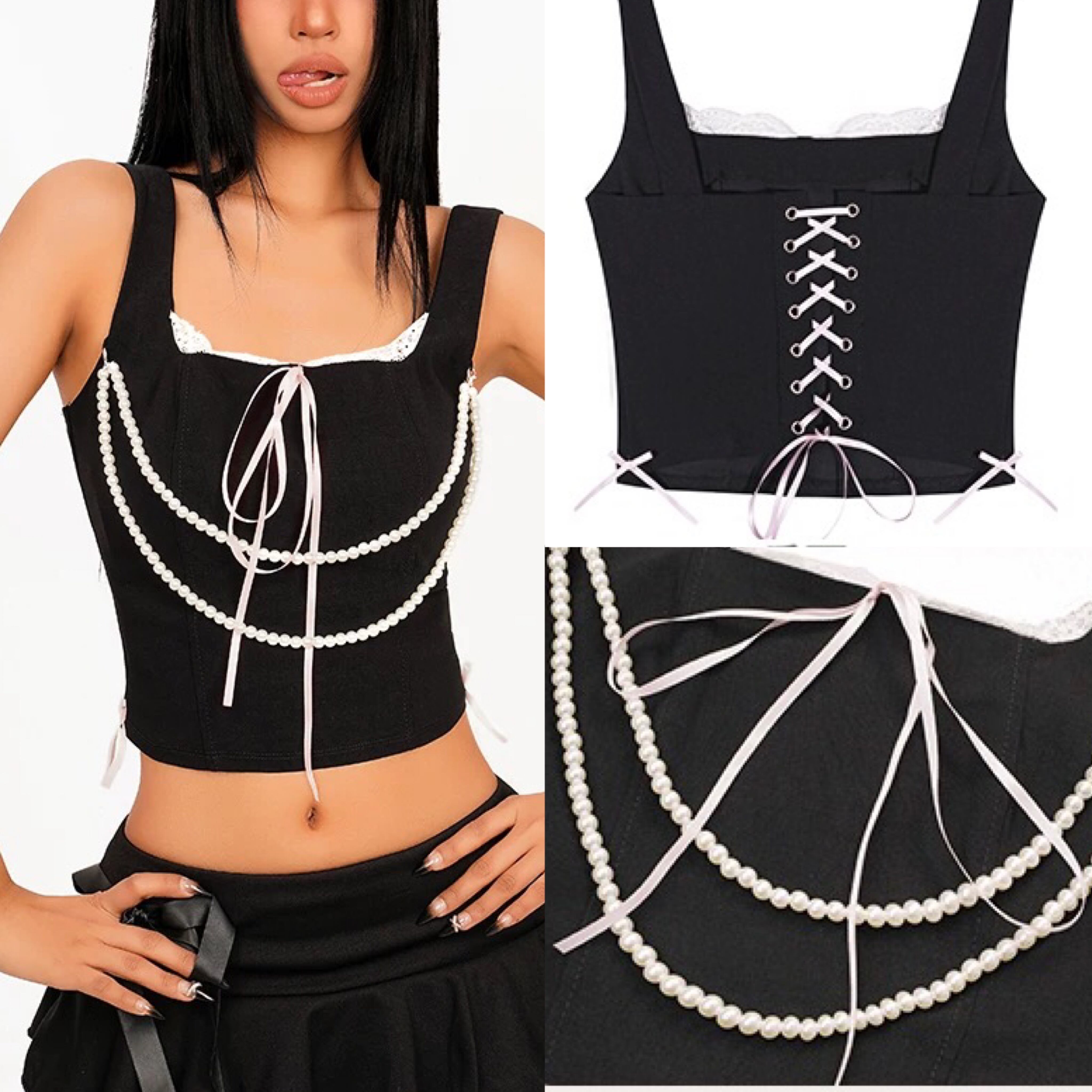 トップス パール カジュアル ブラウス ネックレス タンクトップ