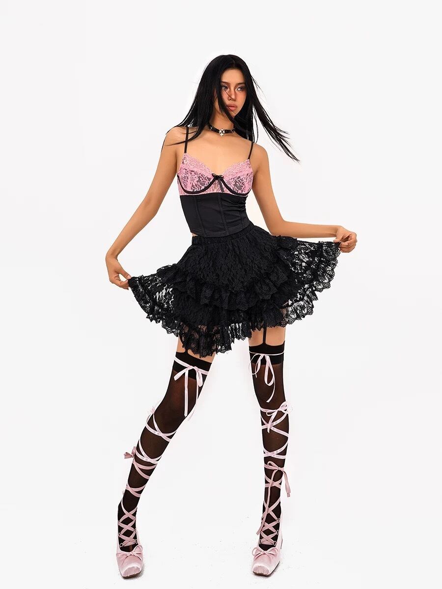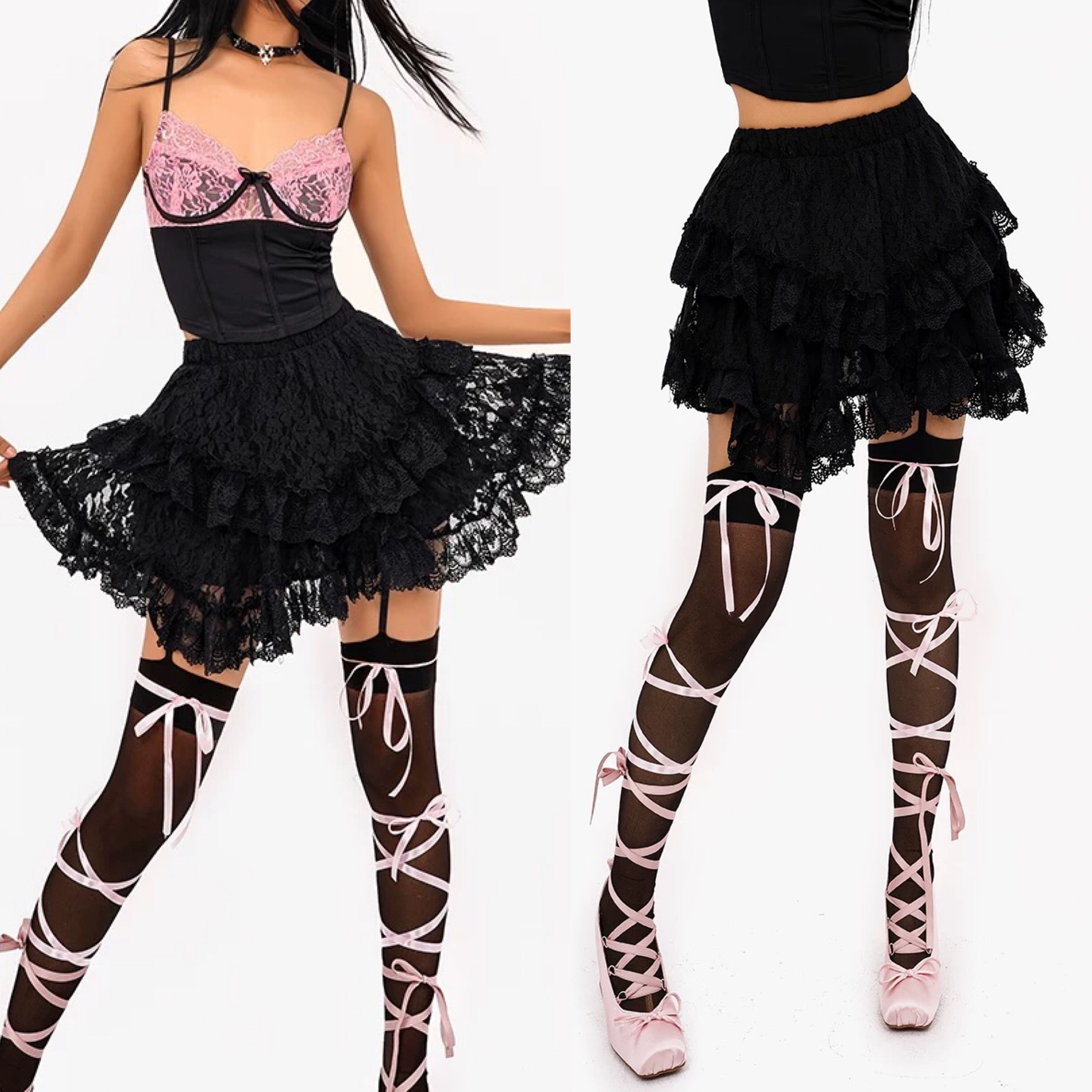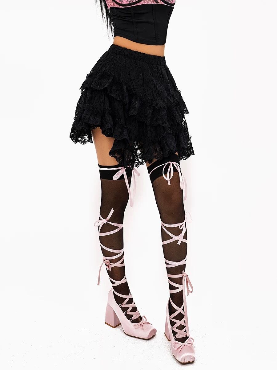 スカート 黒 フリル リボン ボトムス ミニスカート