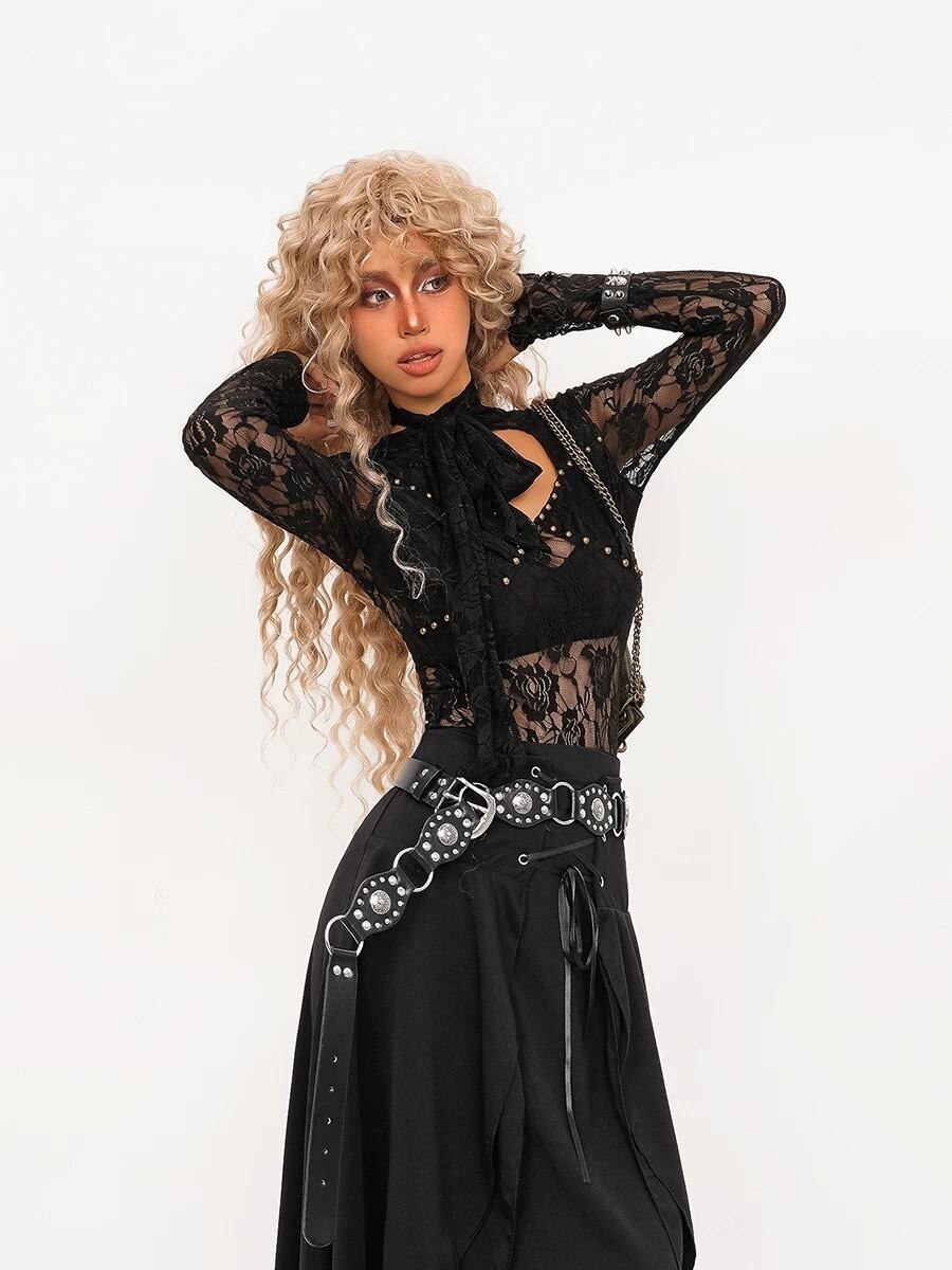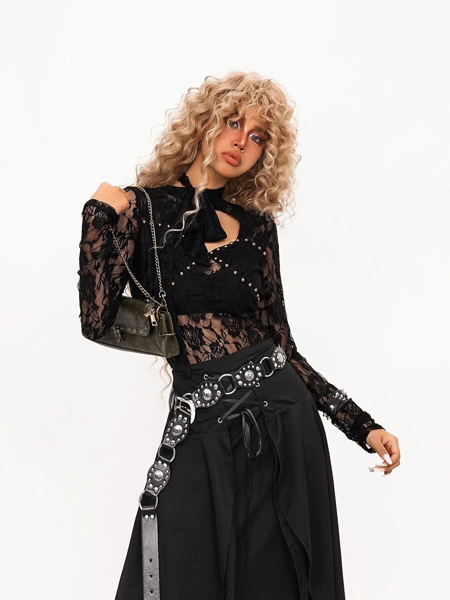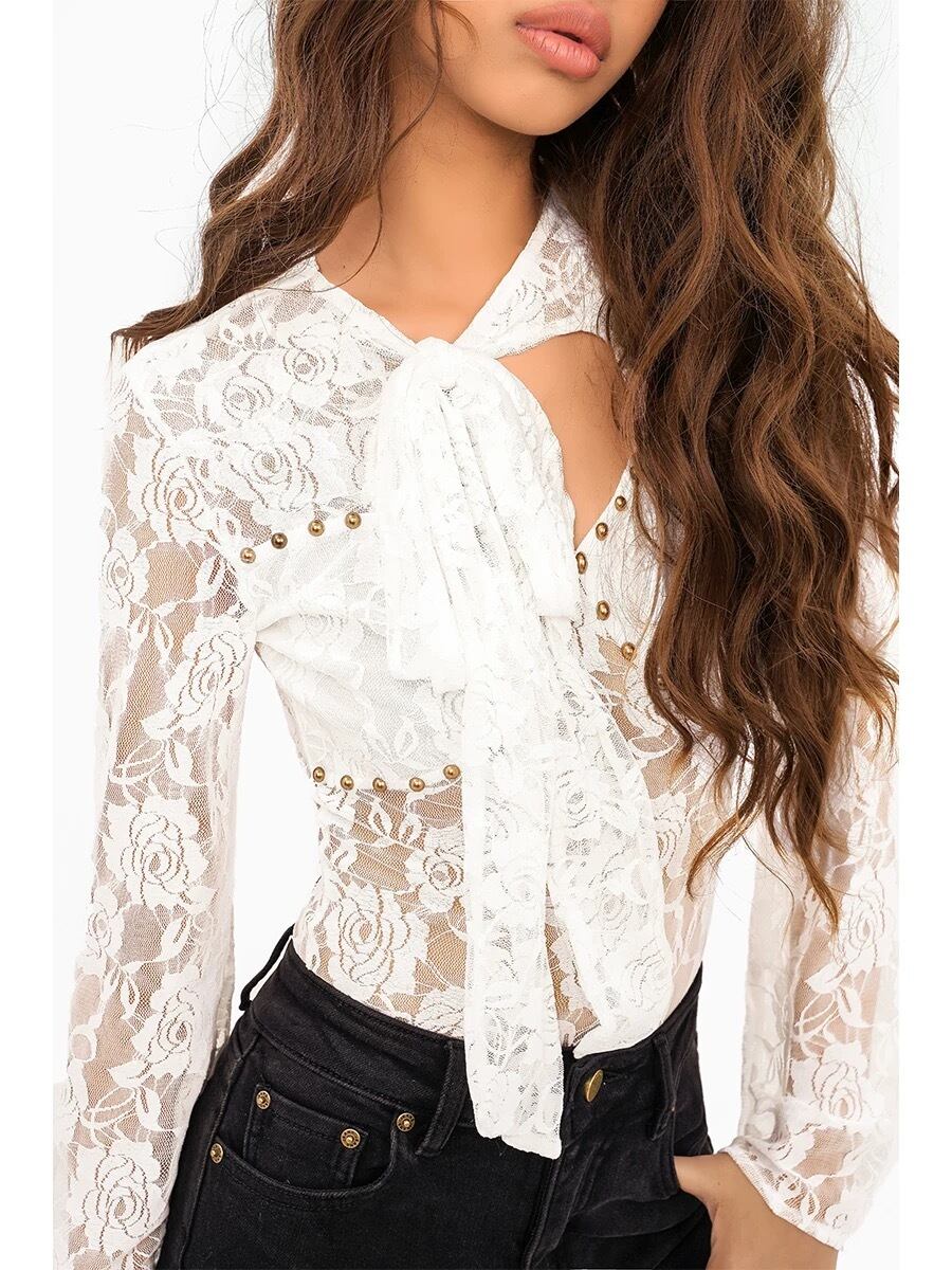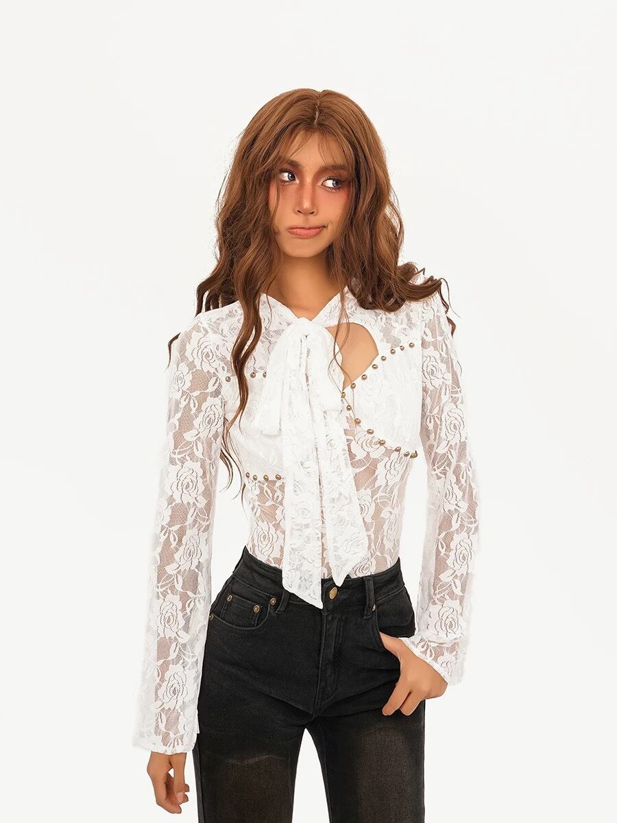 トップス ブラウス オフショルダー ベージュ 黒 リボン レース