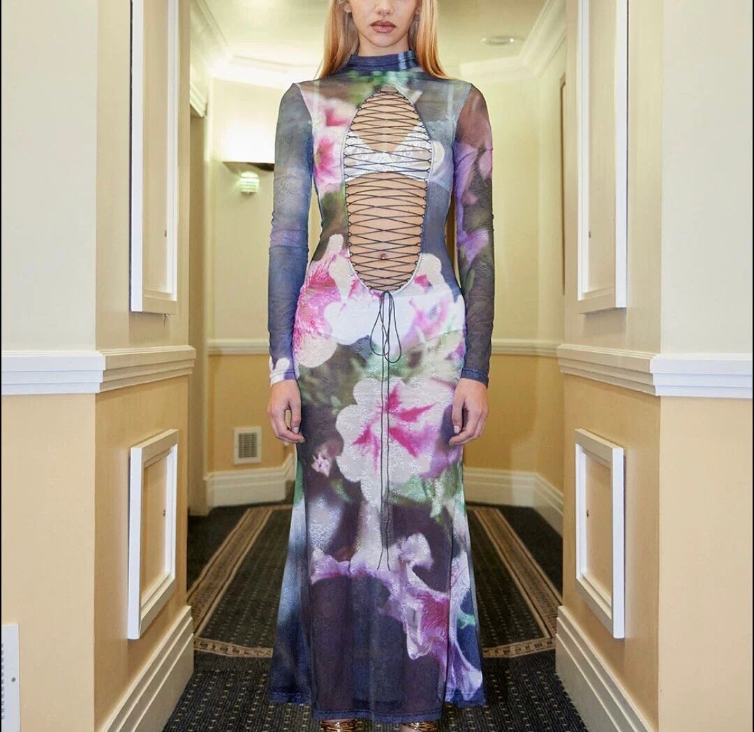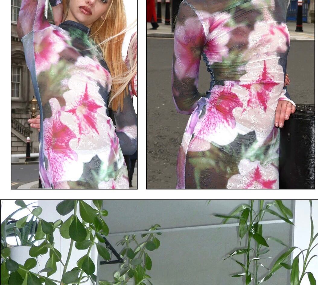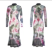 【リバーシブル】あみあみ 花柄 フラワー ドレス ワンピース ピンク
