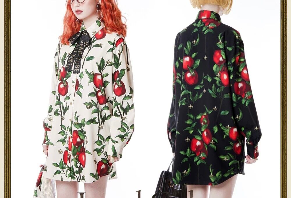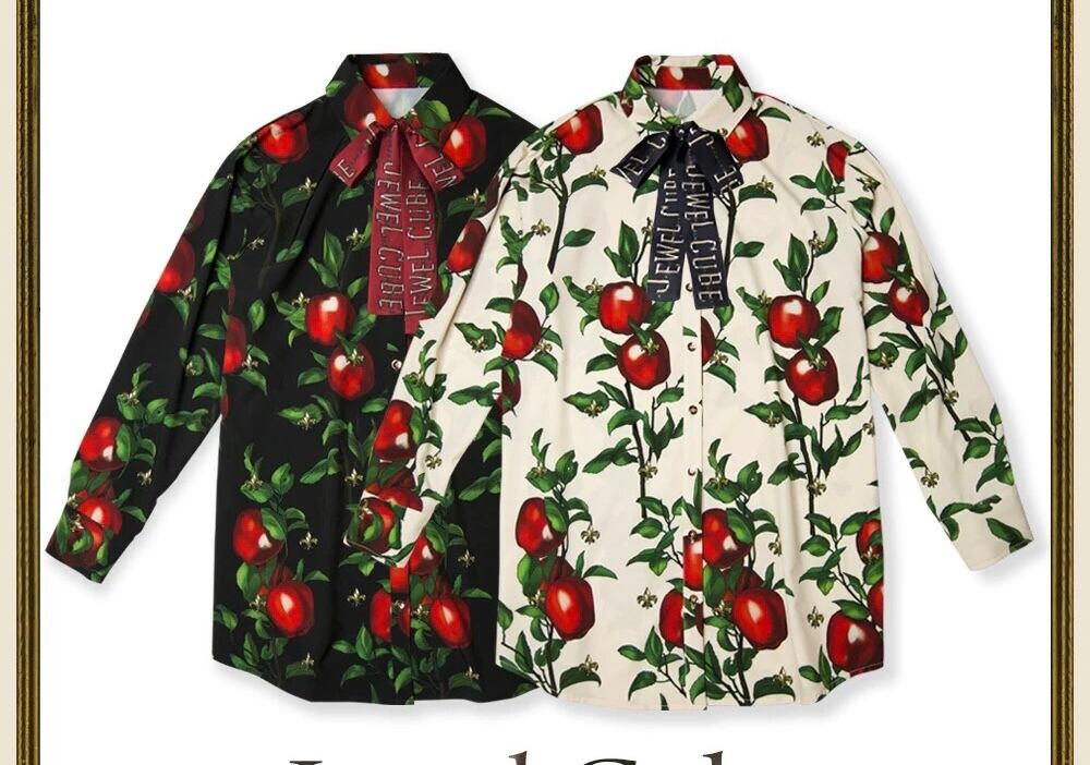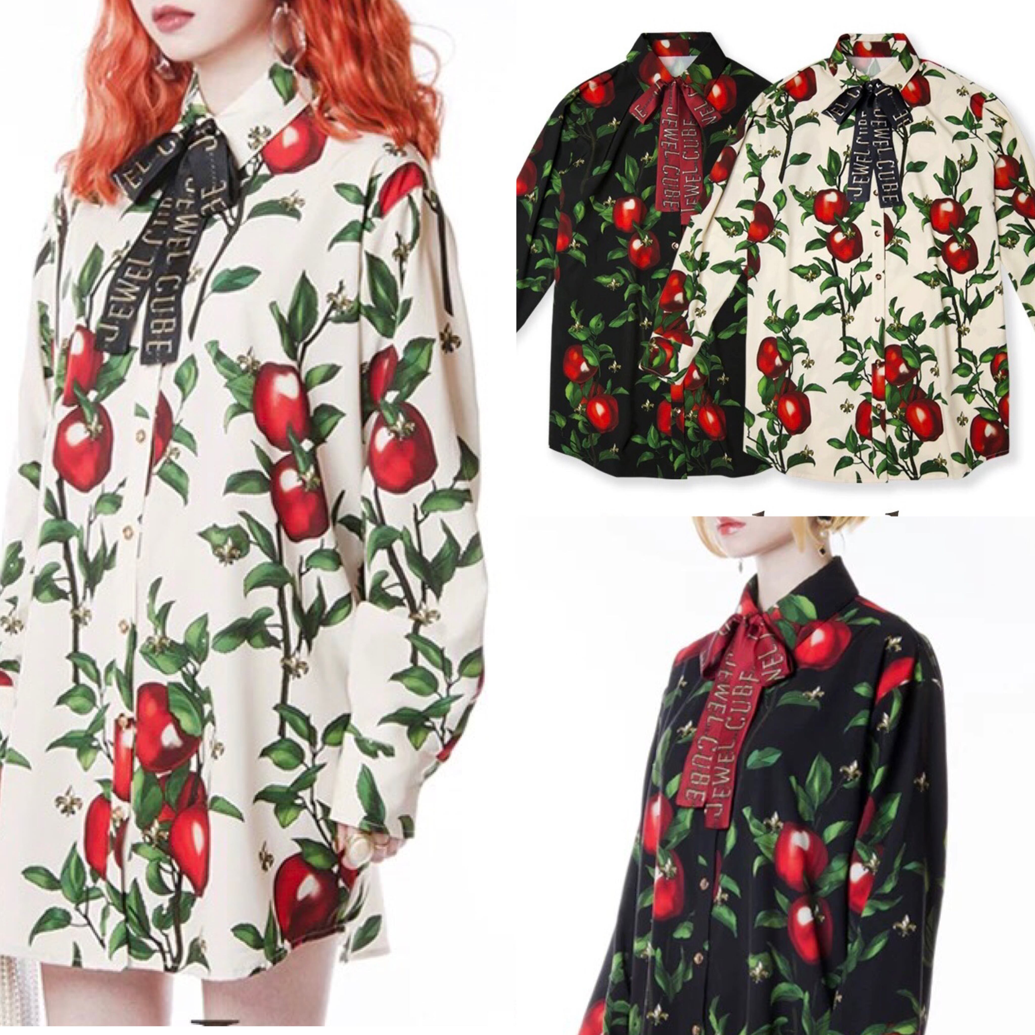 ブラウス カジュアル トップス 赤 さくらんぼ 可愛い リボン