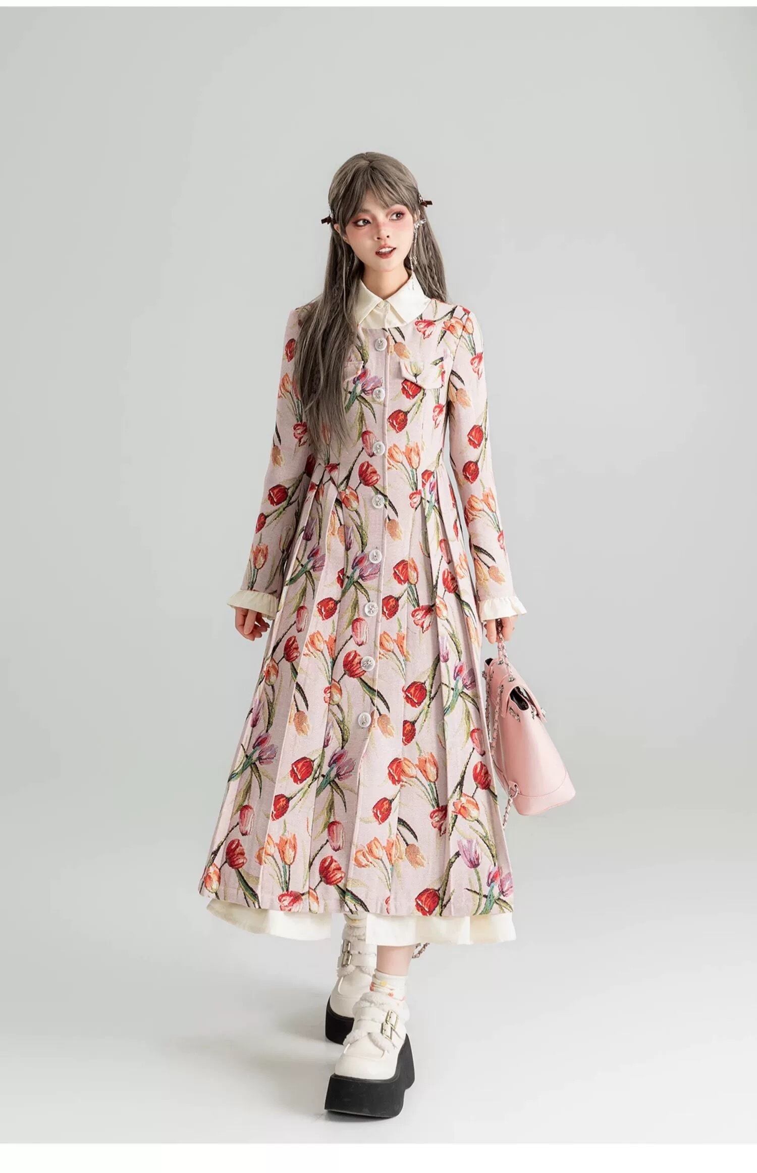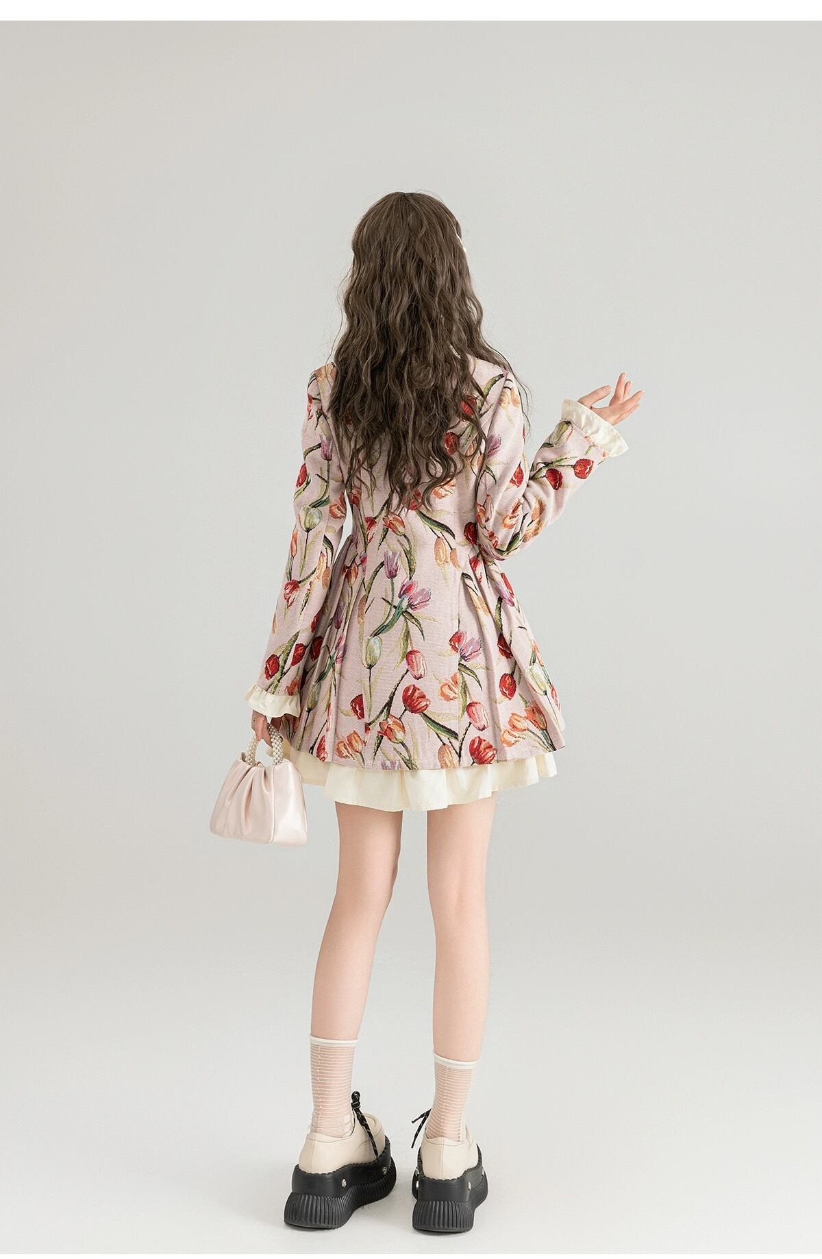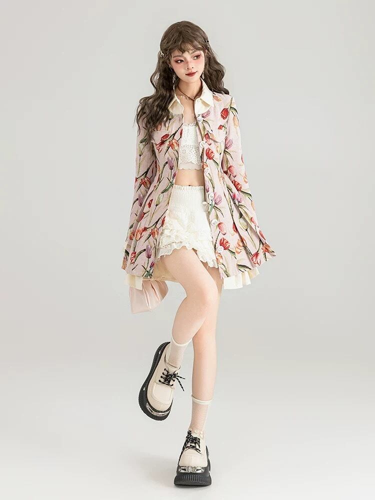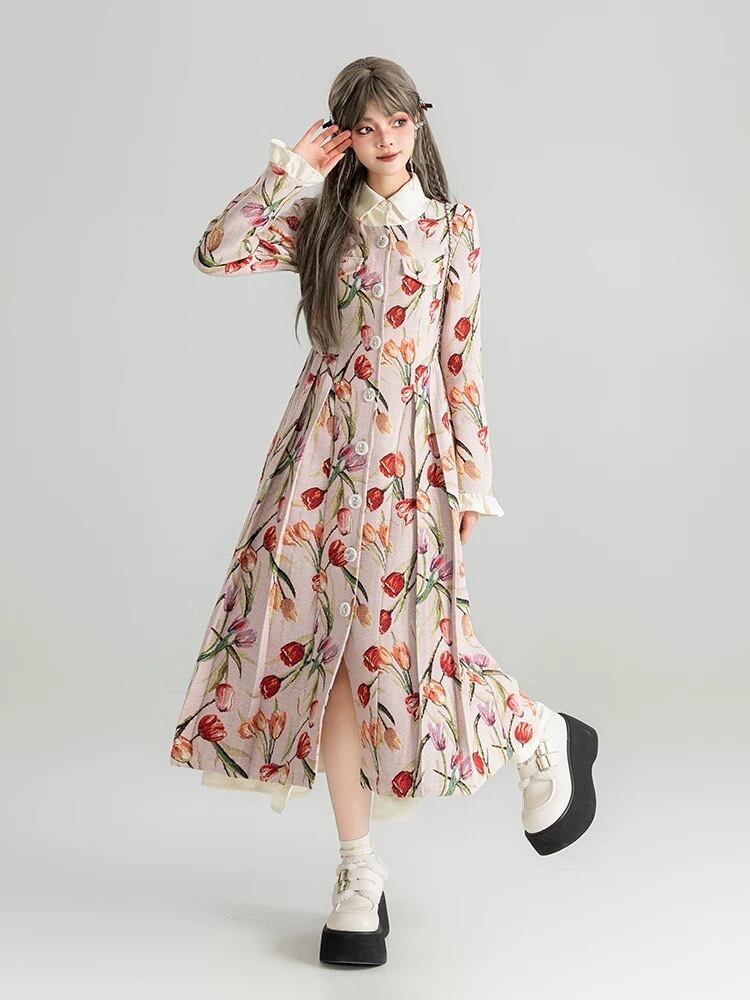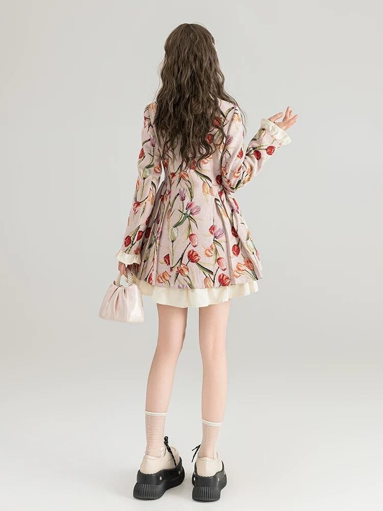 チューリップ ワンピース XL ベージュ 花柄 フラワー ジャケット ガーリー カーディガン原宿