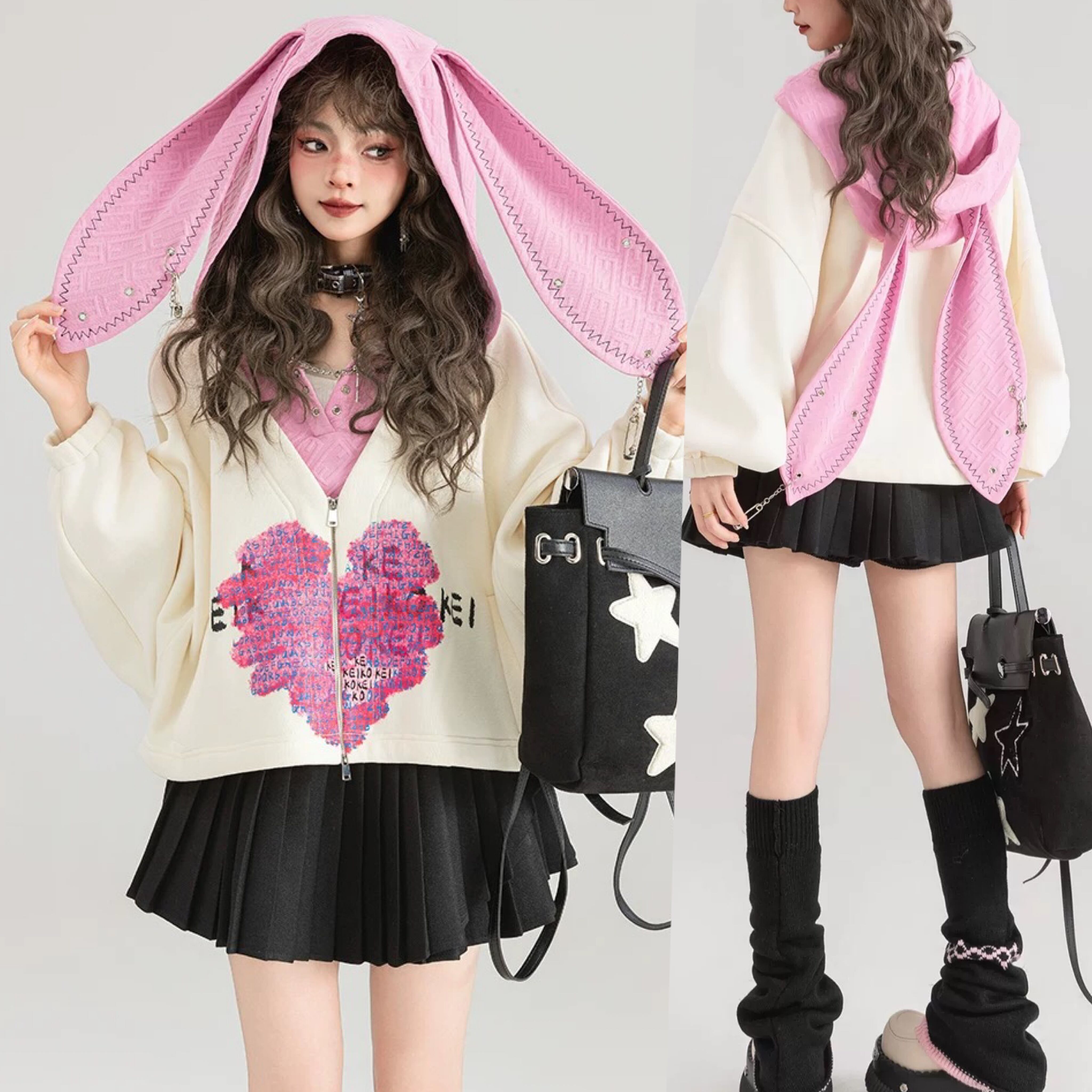 パーカー うさぎ スウェット トレーナー カジュアル アウター ハート 可愛い