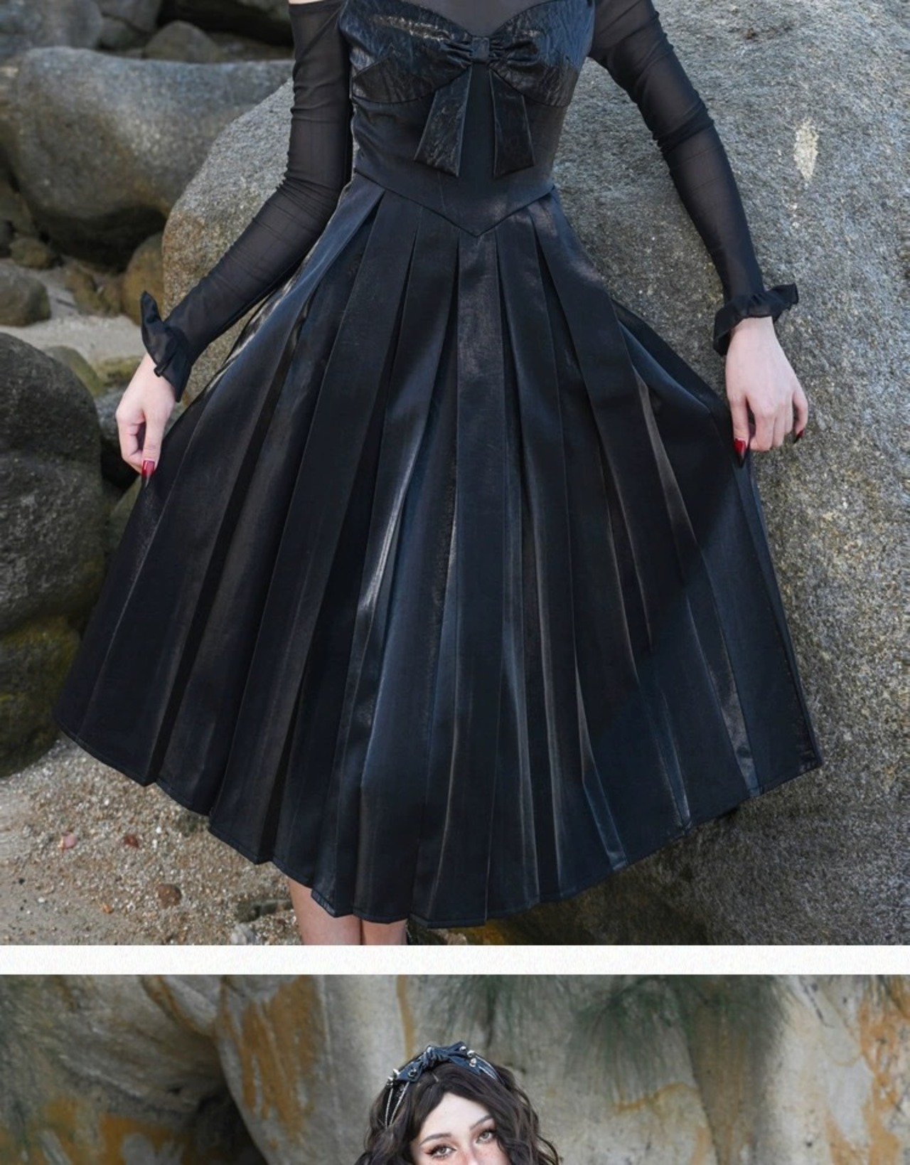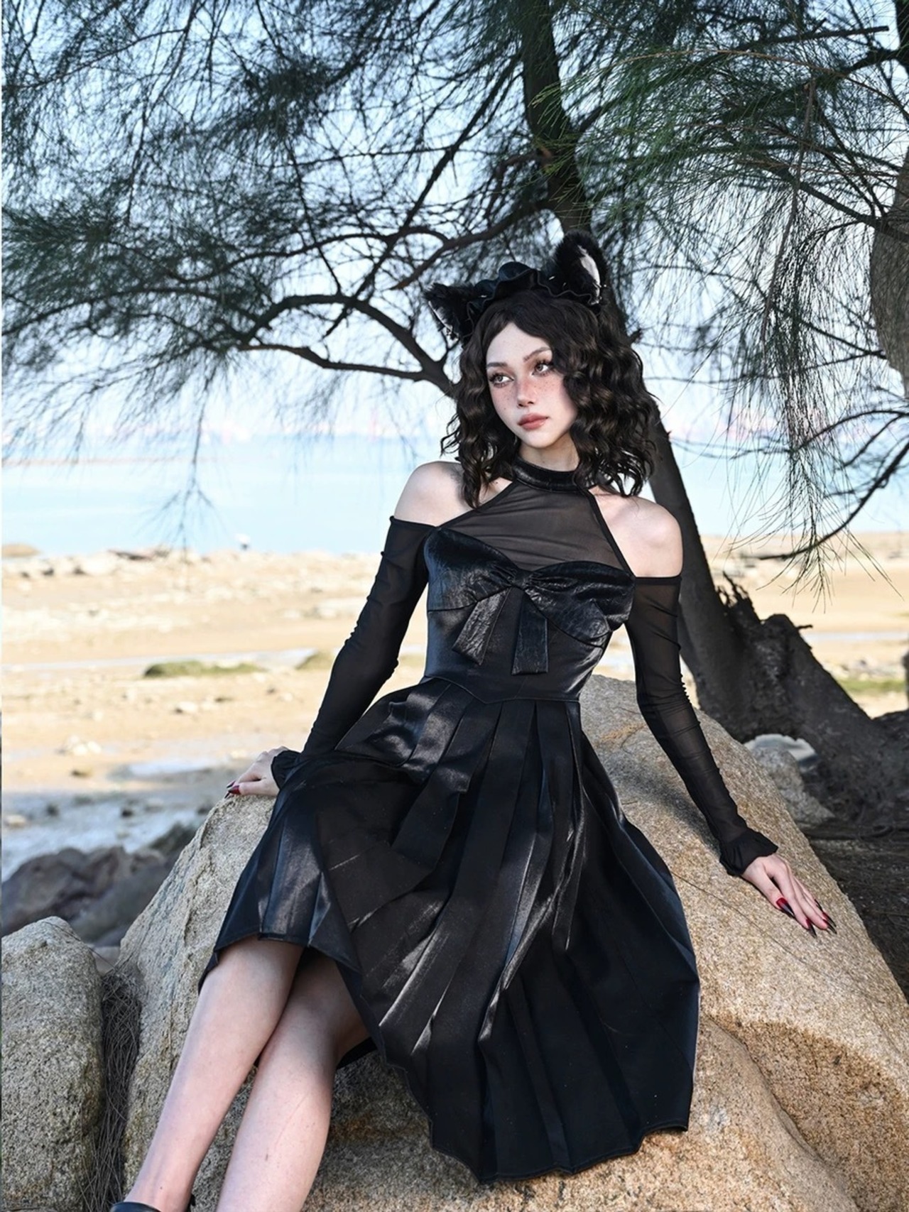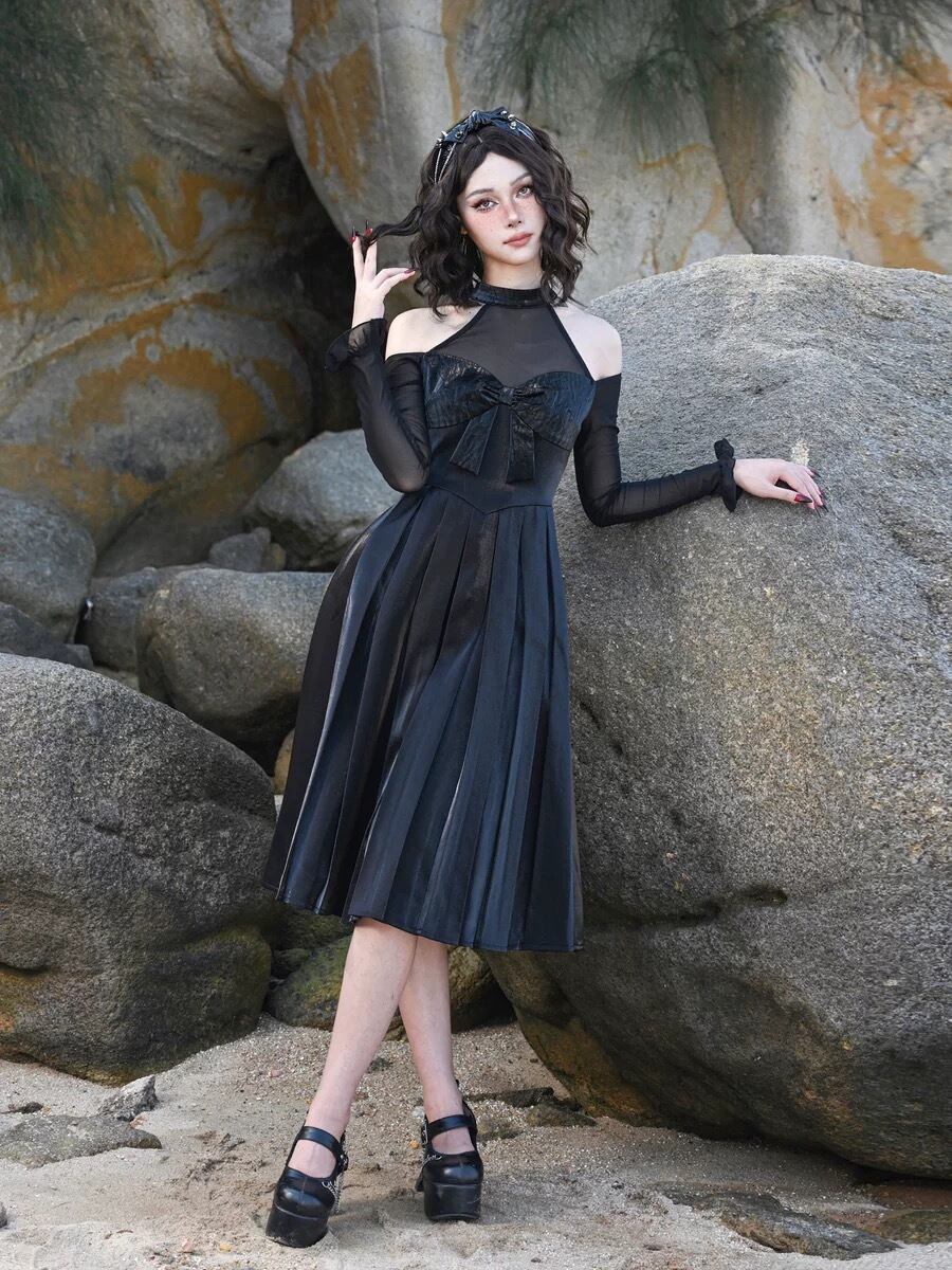 黒 ワンピース オフショルダー プリーツスカート ブラック ドレス