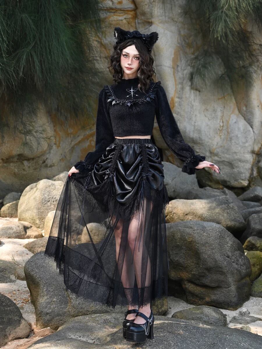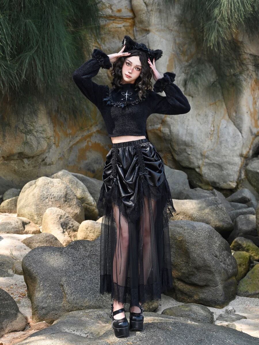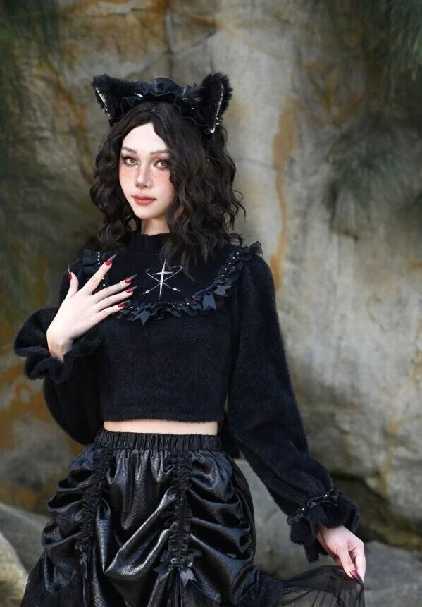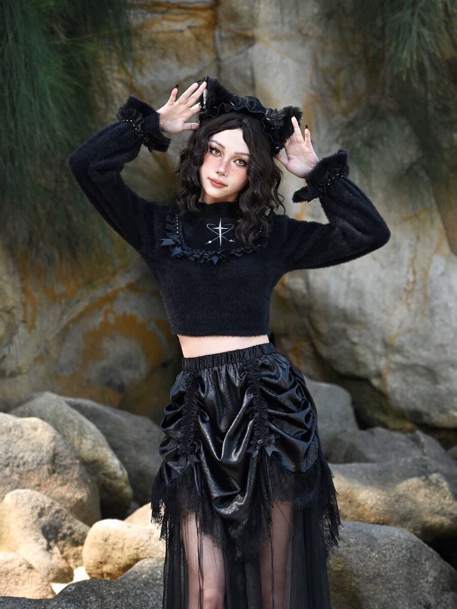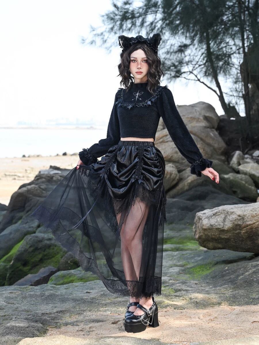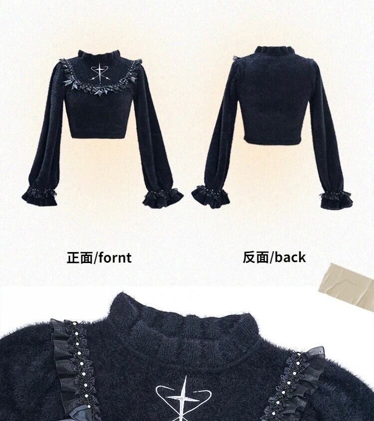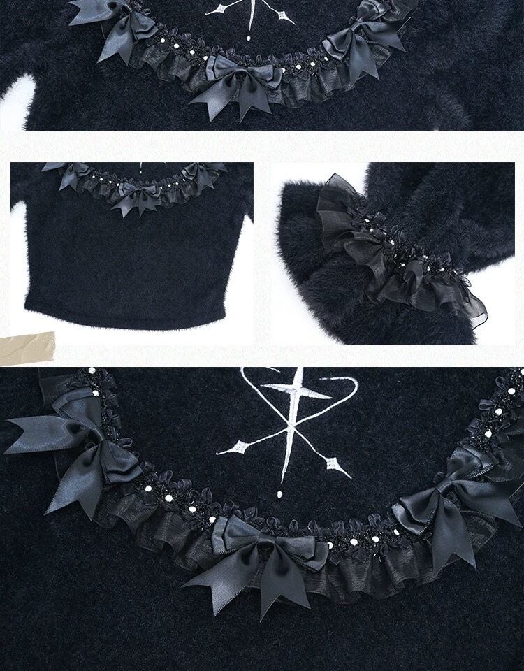 セーター ニット ガーリー カーディガン 黒 リボン 可愛い トップス