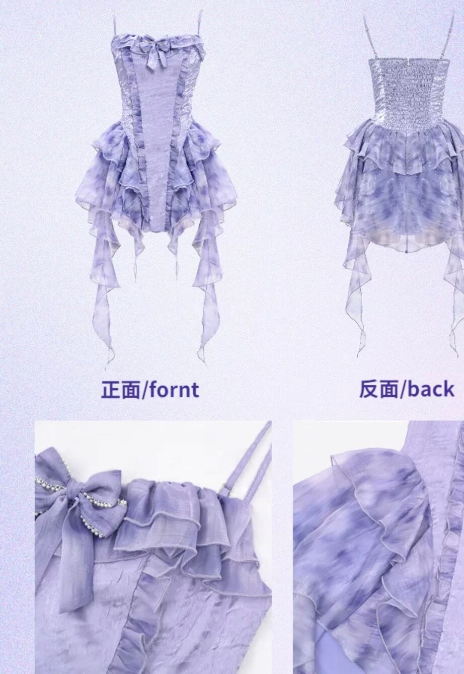 水色 紫 姫 ワンピース ドレス XL ガーリー リボン