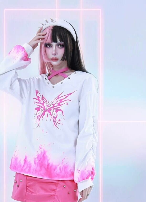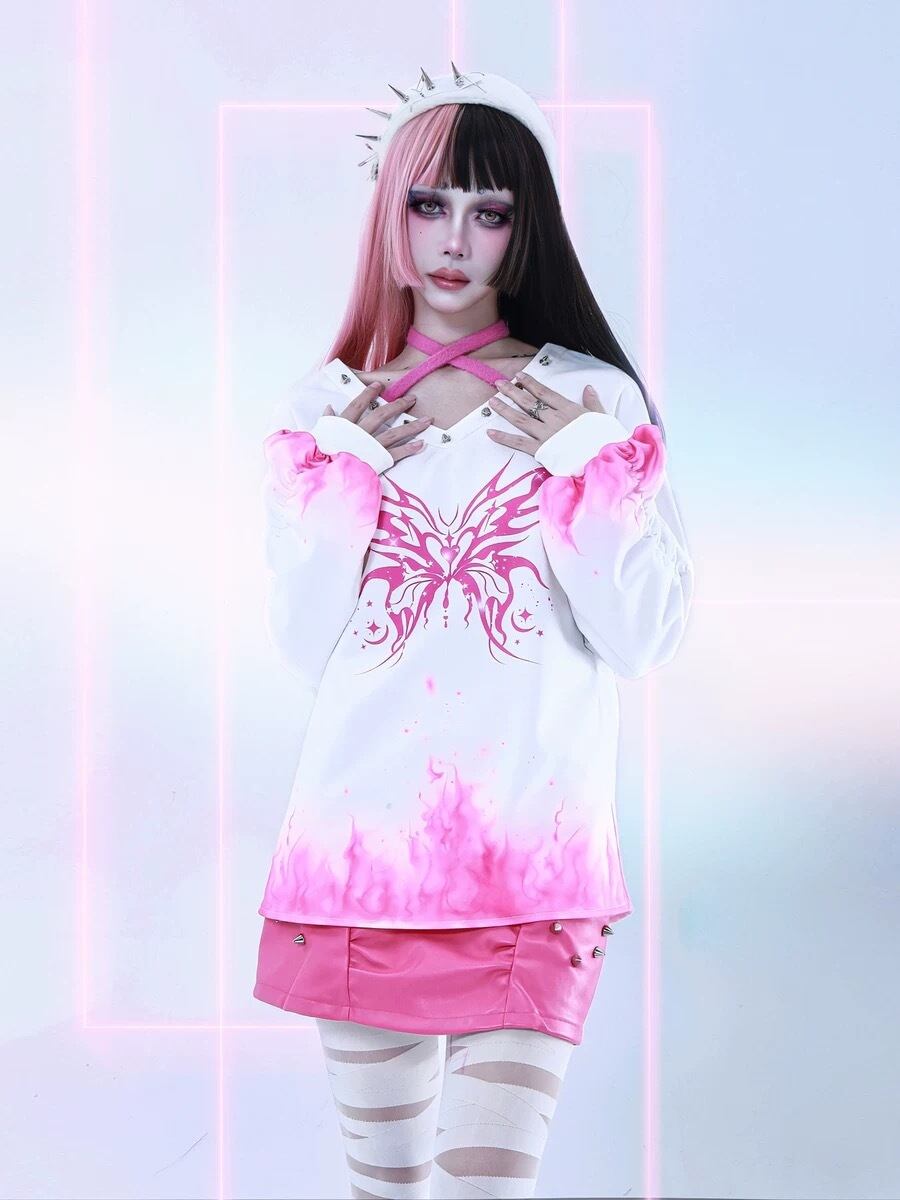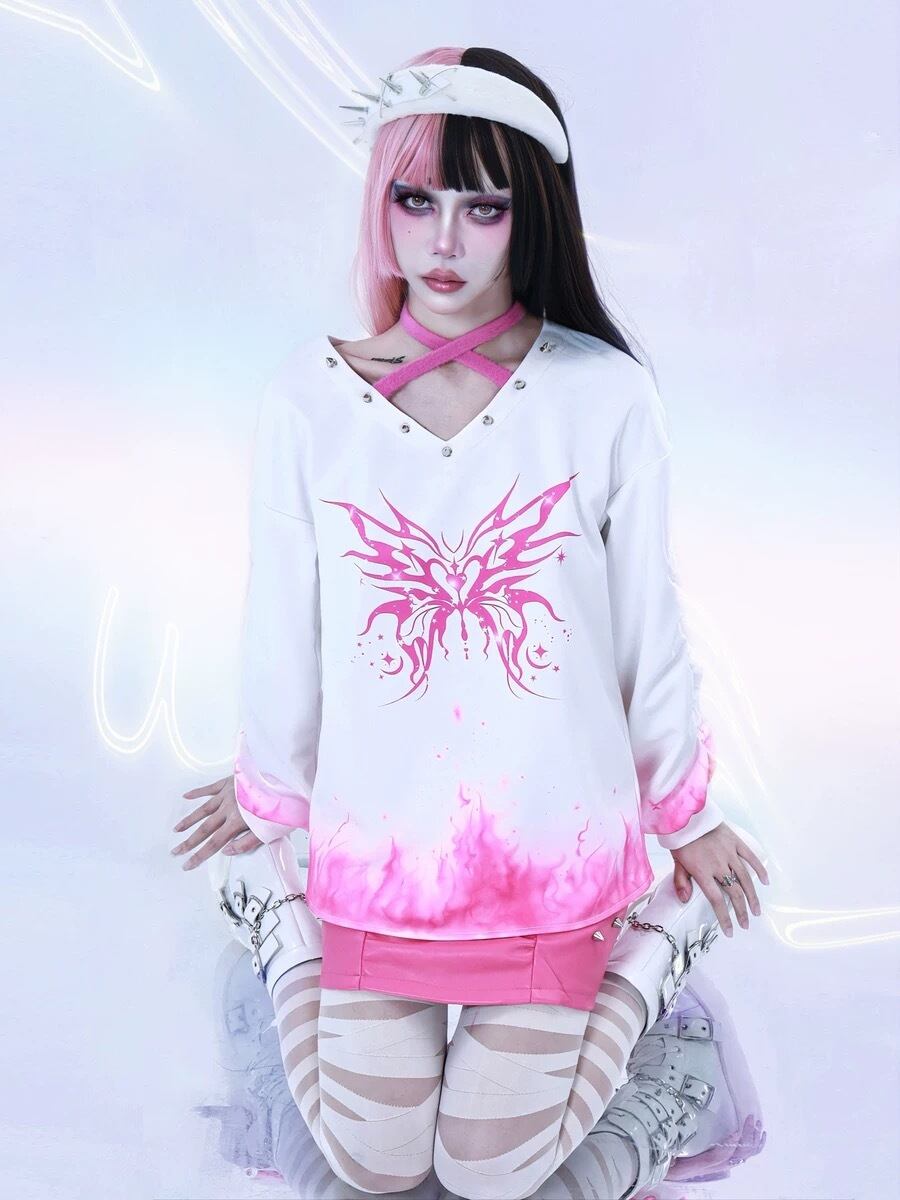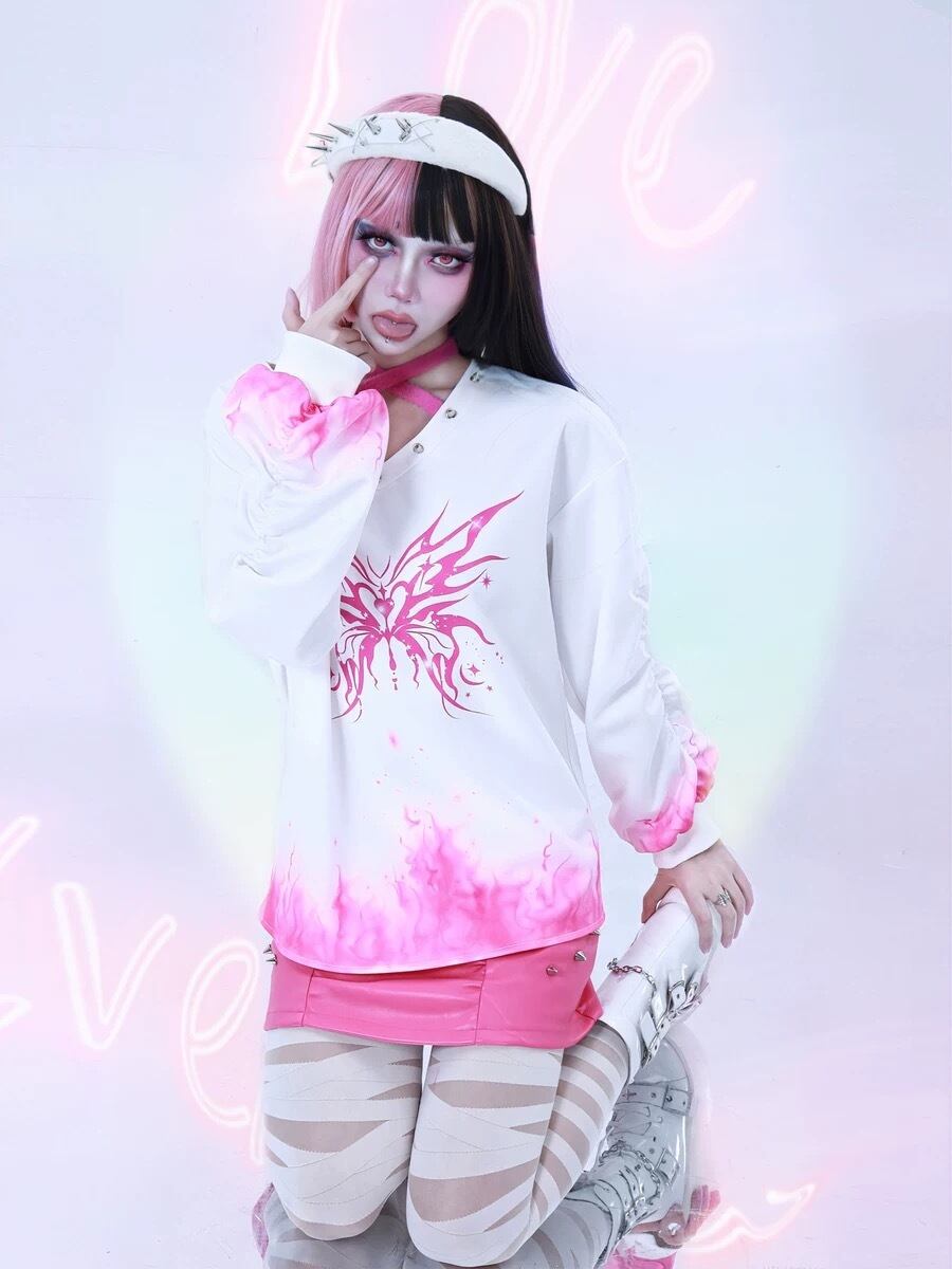 スウェット ピンク グラデーション 白 バタフライ トレーナー パーカー