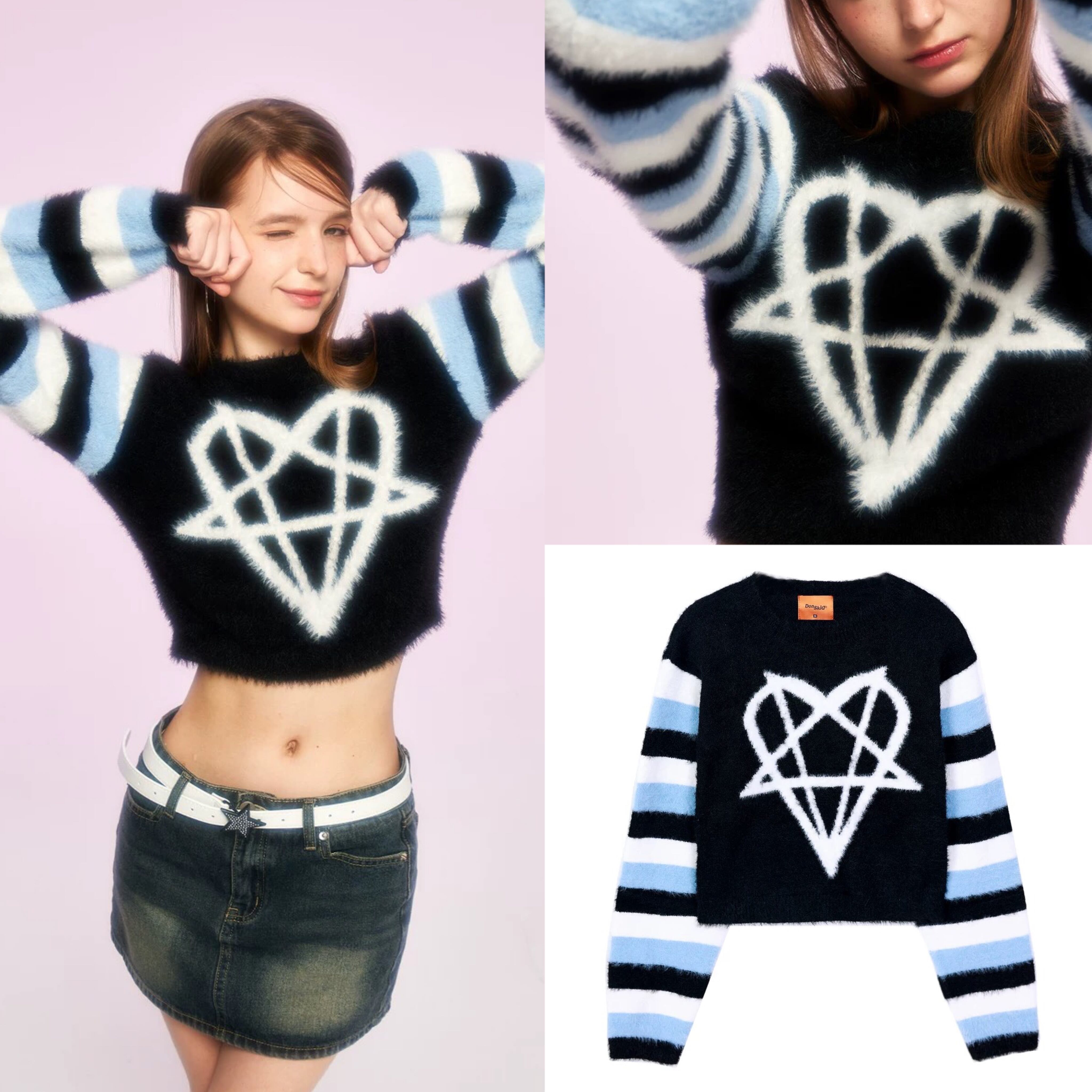 セーター スウェット 水色 ボーダー カーディガン ハート 星