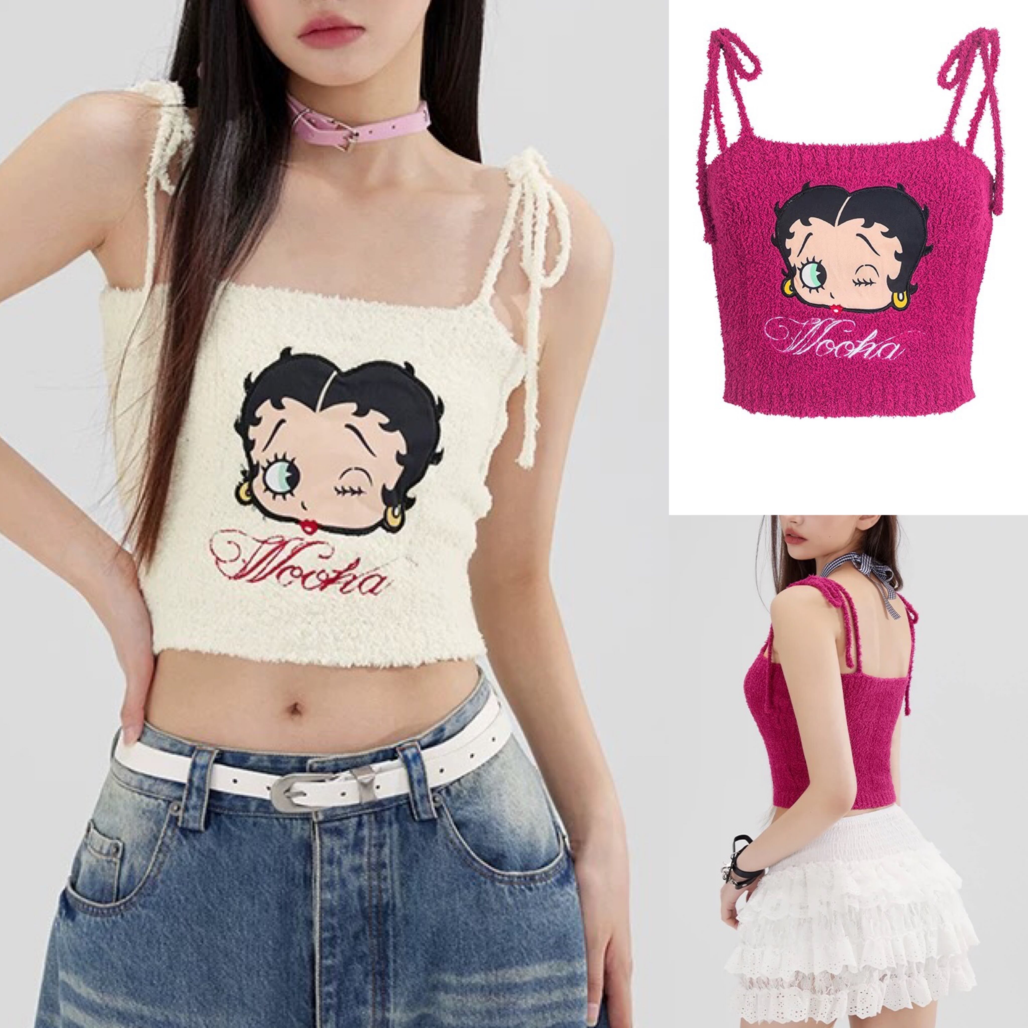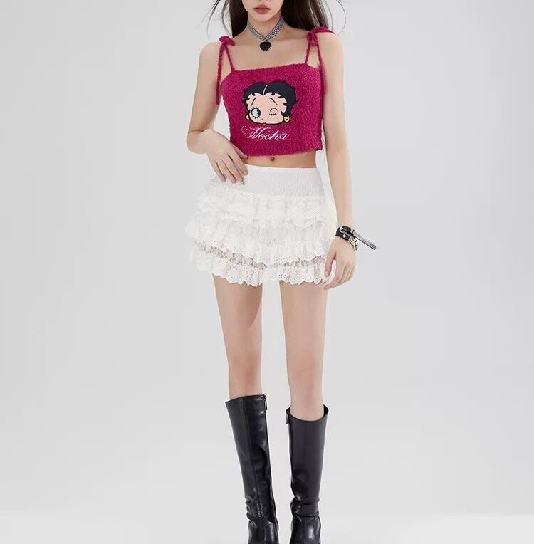 キャミソール リボン トップス 赤 ピンク ハート 白 ブラウス