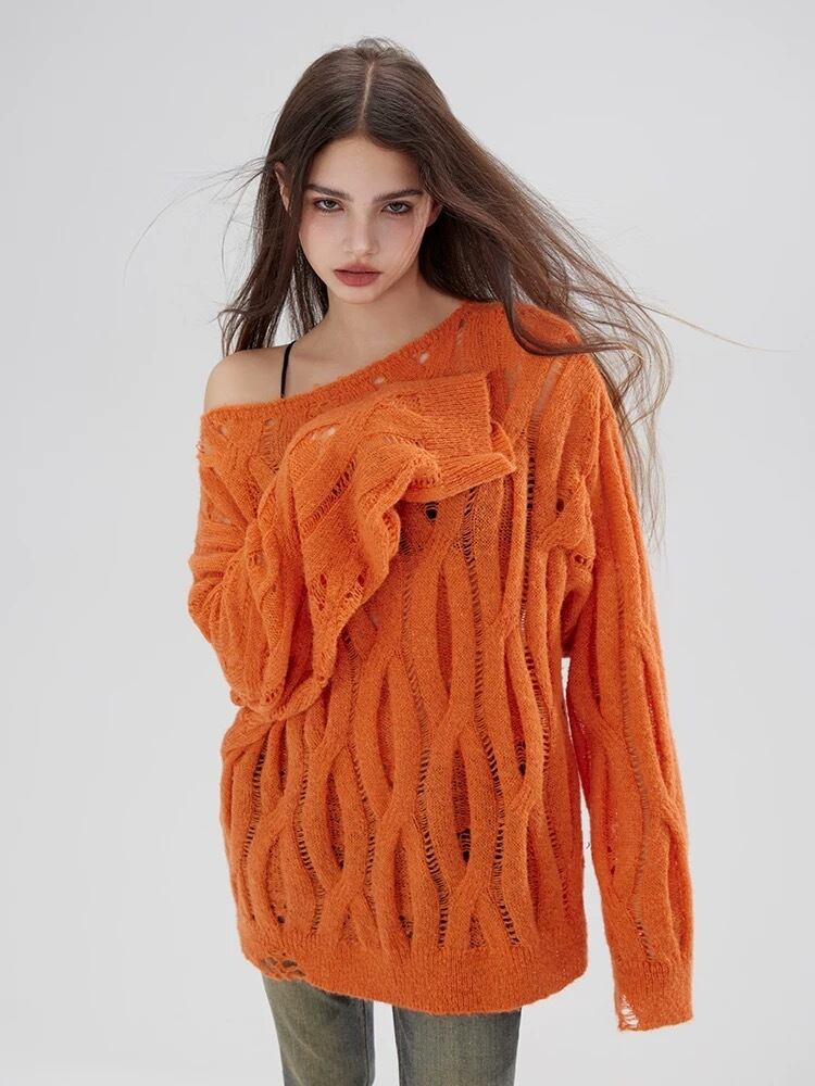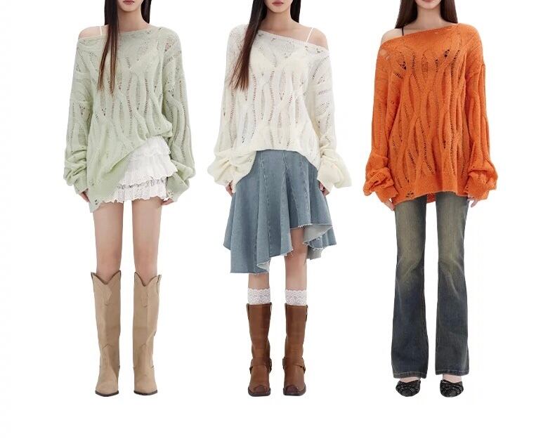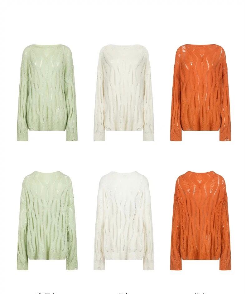 セーター ニット オレンジ 白 緑 カーディガン トップス ダメージ