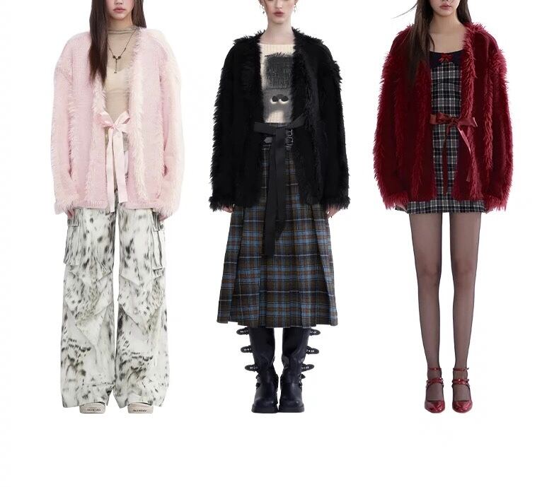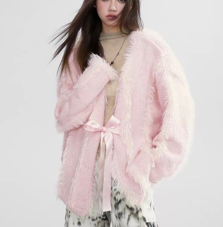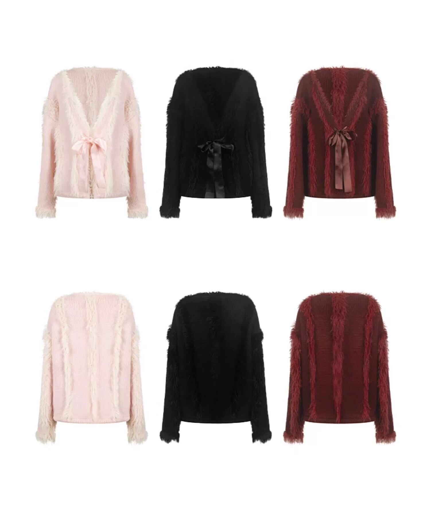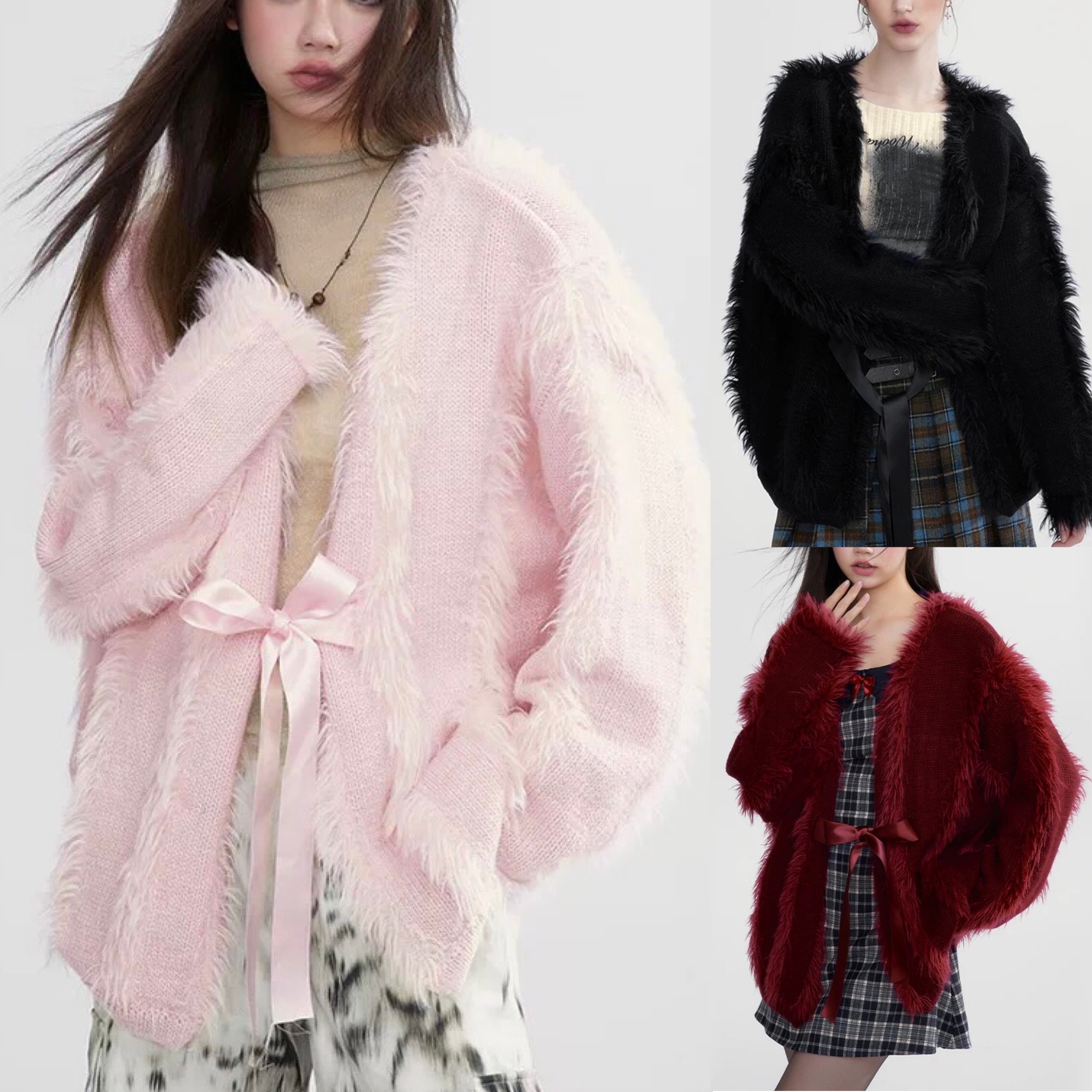 黒 カーディガン セーター ピンク オレンジ 赤 アウター ジャケット リボン 緑 ダメージ