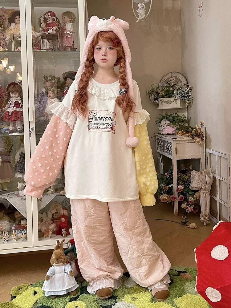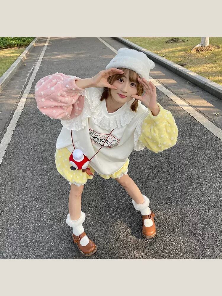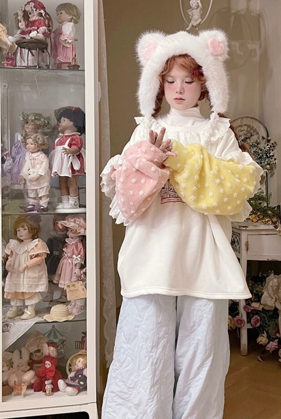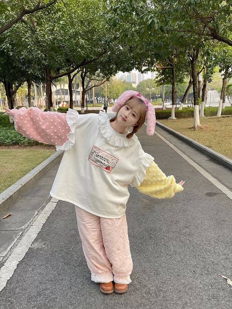 スウェット カジュアル ピンク 黄色 パーカー トレーナー カジュアル フリース 可愛い