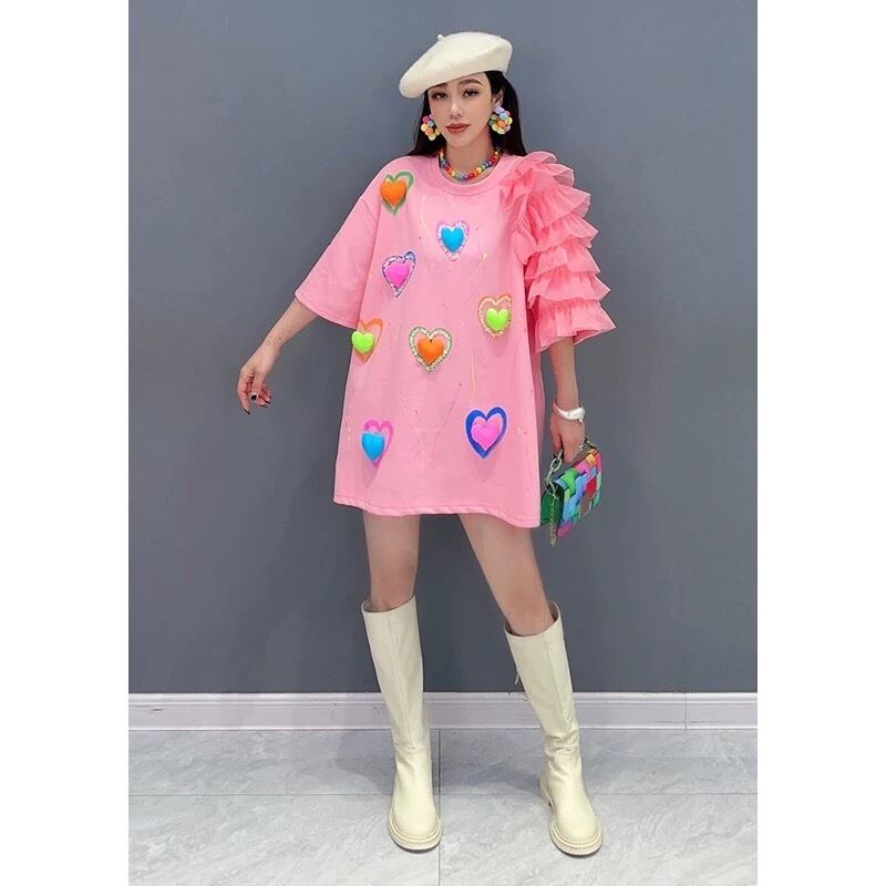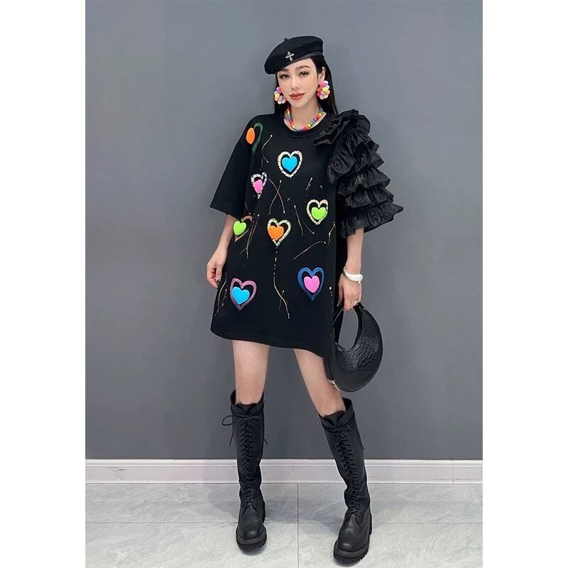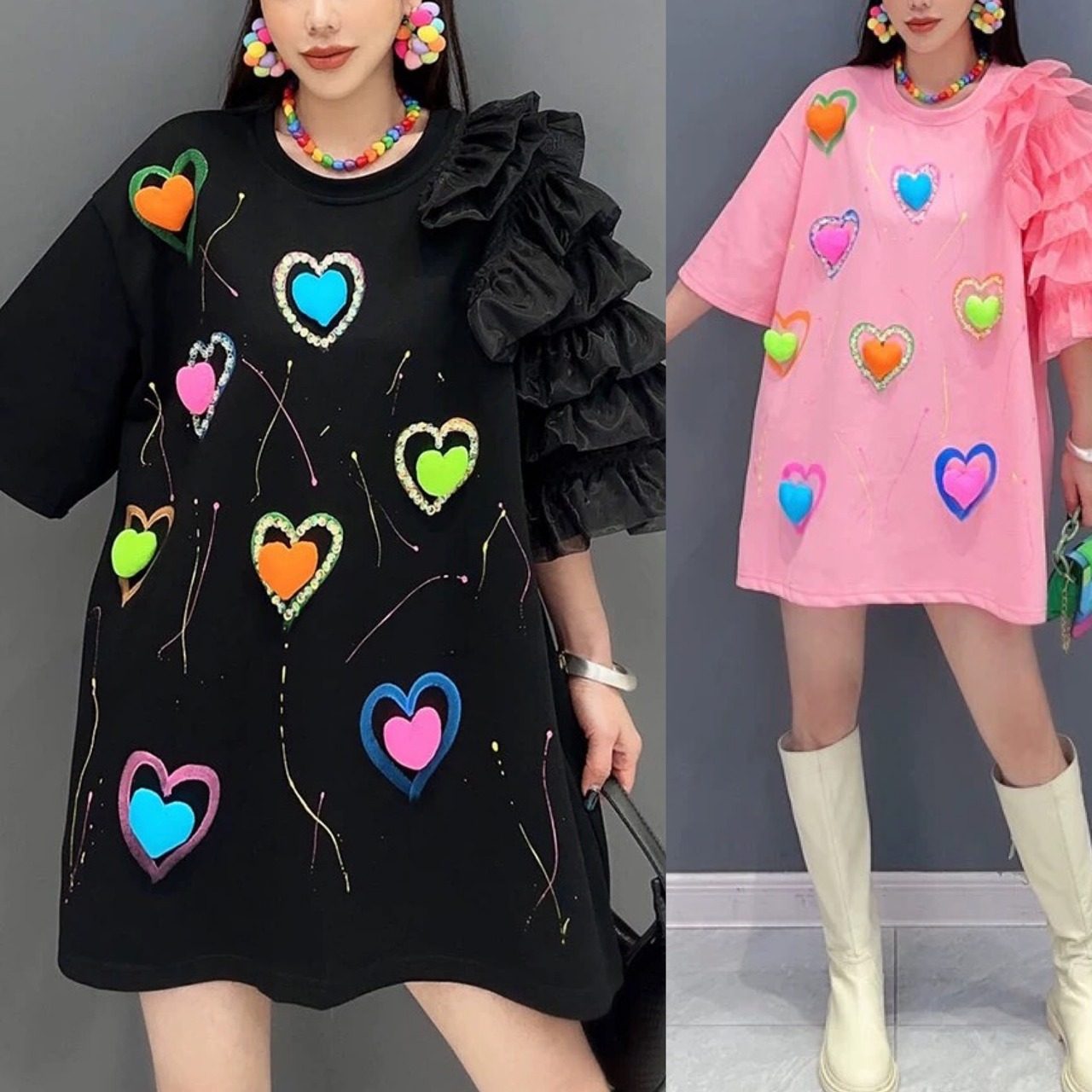 黒 ピンク ハート カジュアル カラフル ワンピース トップス スウェット