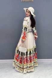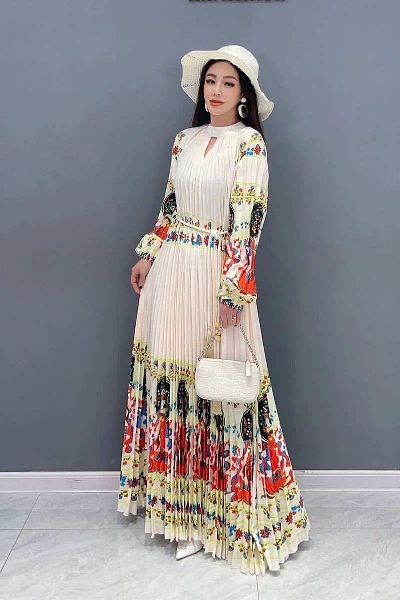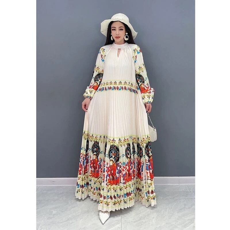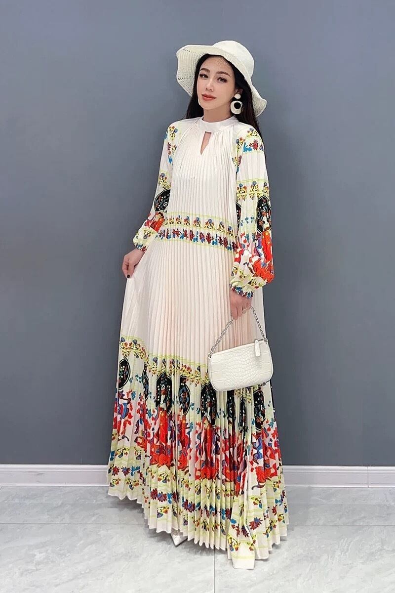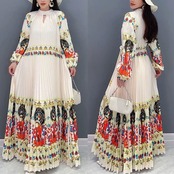 ベージュ プリーツスカート ワンピース XL エレガント ガーリー スカーフ エスニック