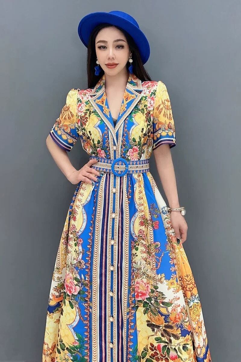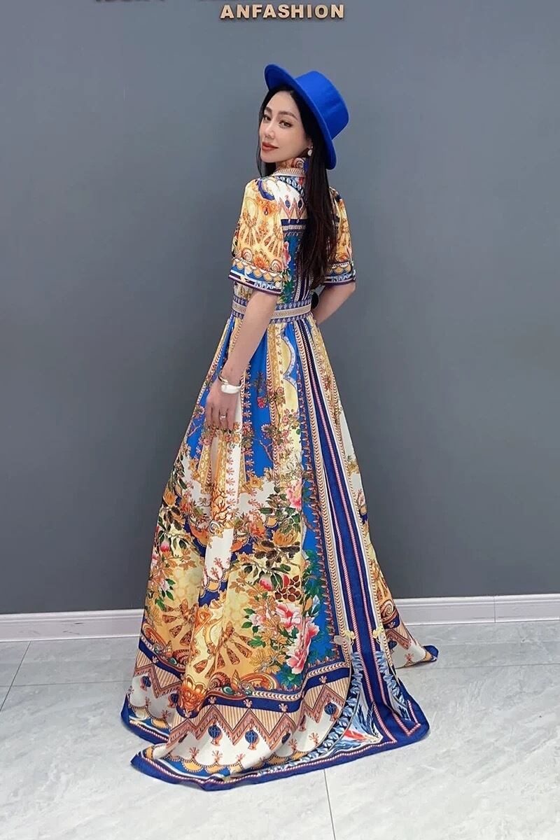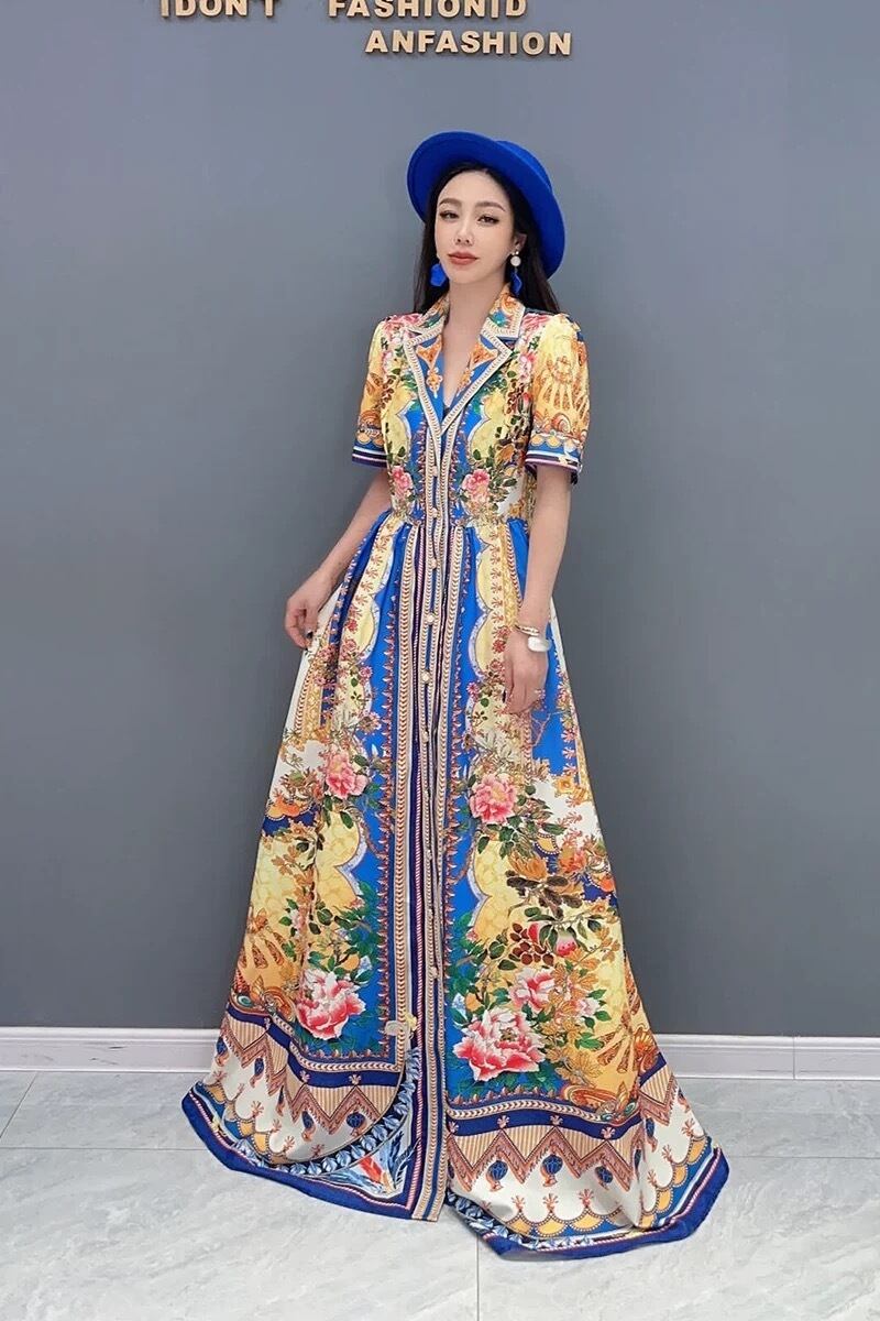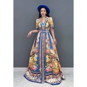 青 黄色 金色 マキシ ブラウス シャツ XL ボーダー カジュアル エレガント ドレス マキシ フラワー 花柄