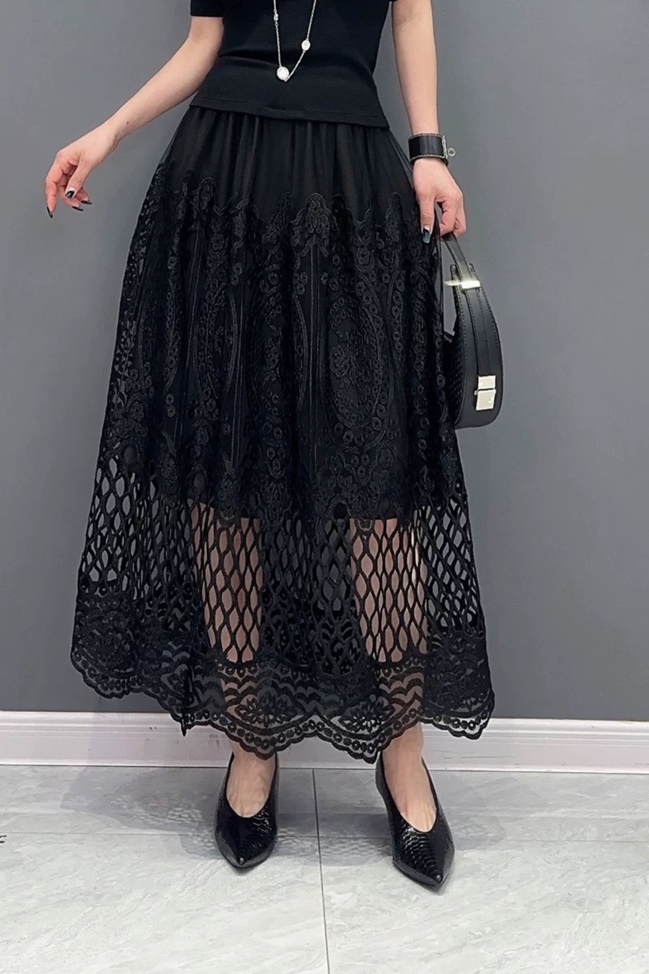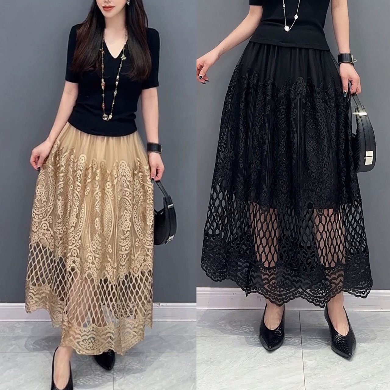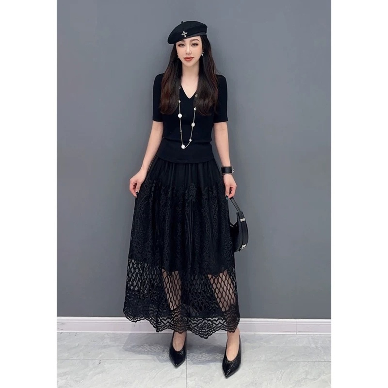 スカート レース 黒 金 花柄 フラワー エレガント ボトムス