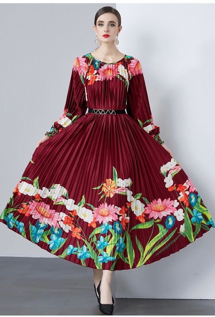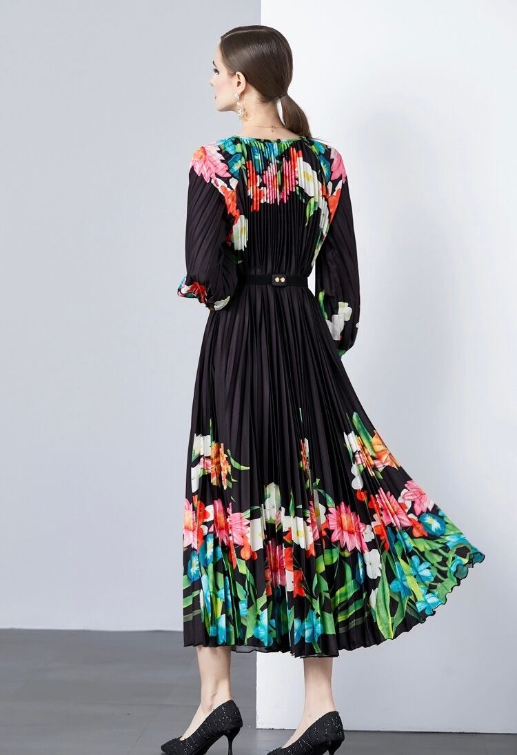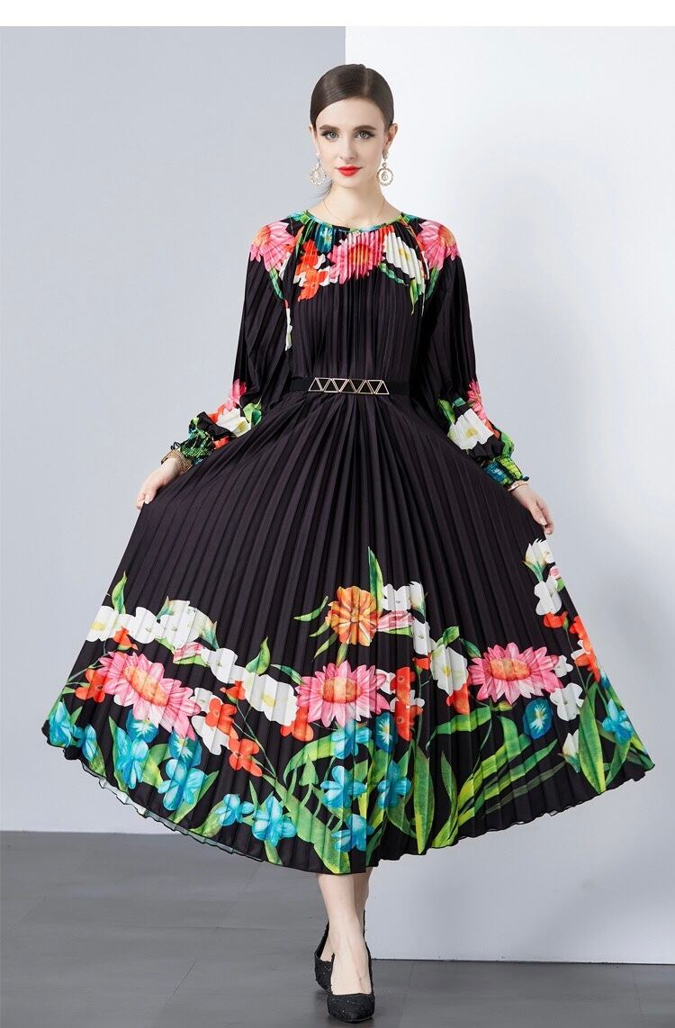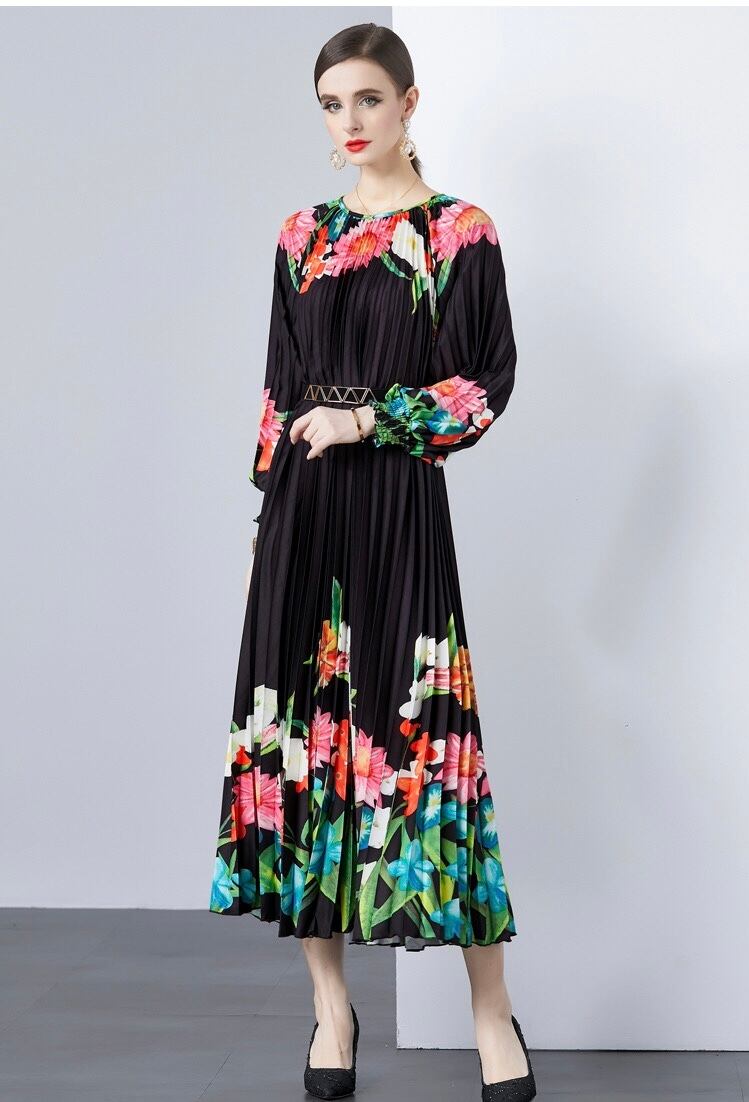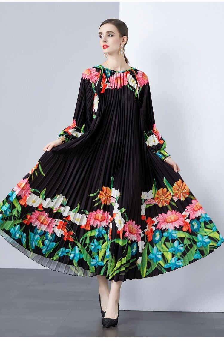 マキシ フラワー ワンピース 花柄 黒 赤 白