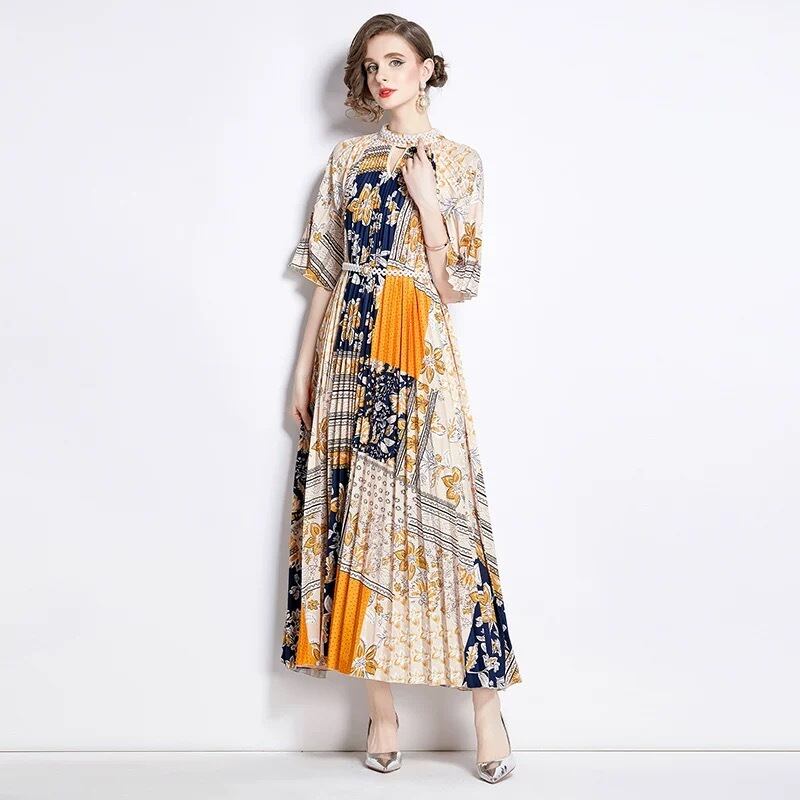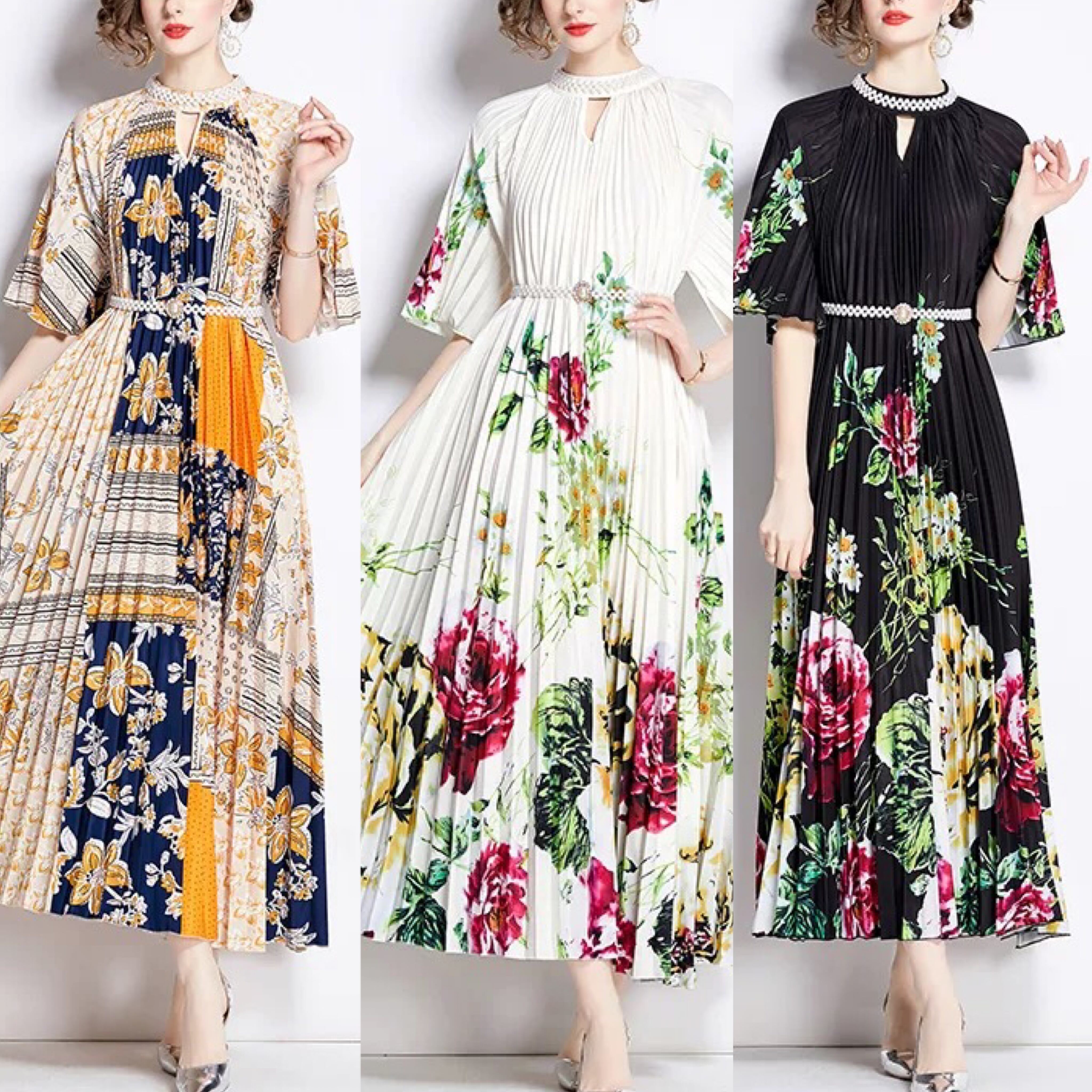 黒 黄色 白 花柄 赤 フラワー ワンピース