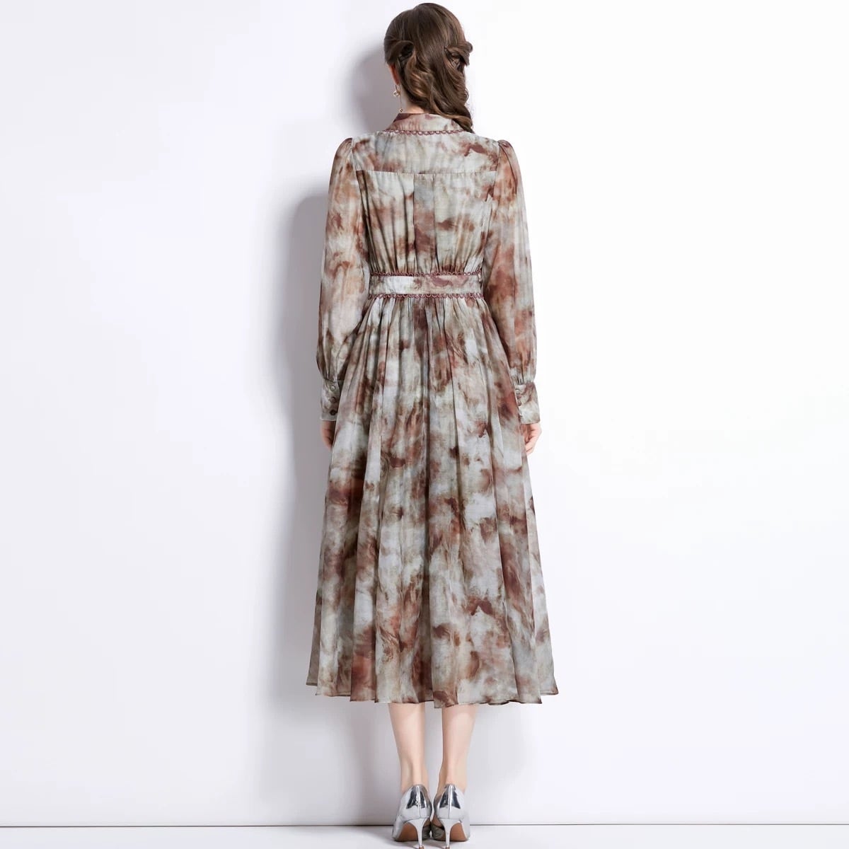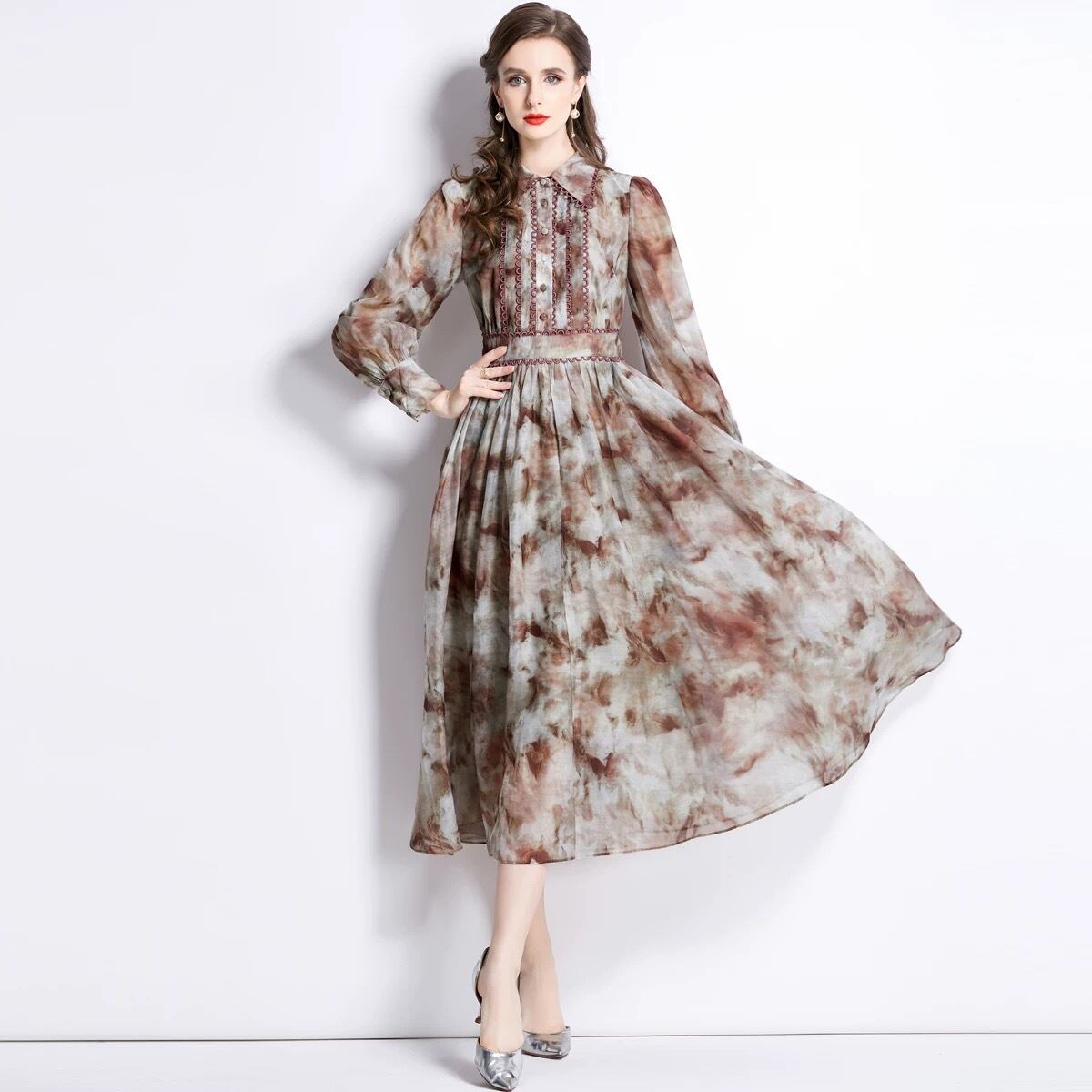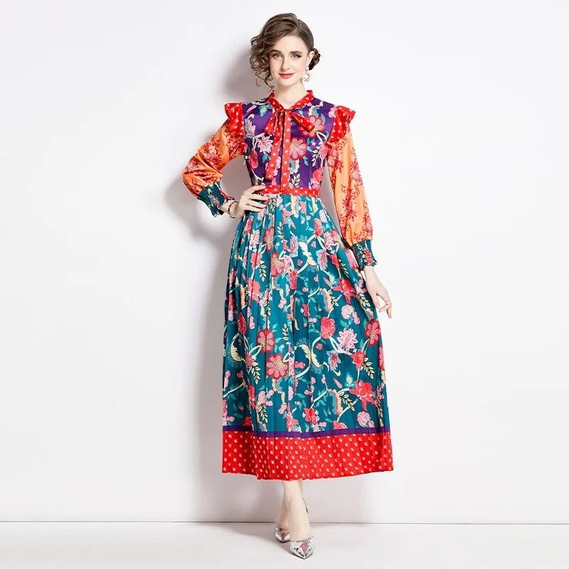 【2XLまで】オレンジ 花柄 グラデーション 茶色 紫 ワンピース