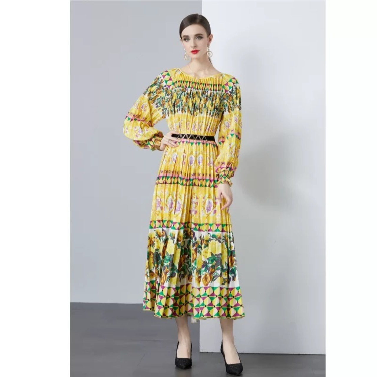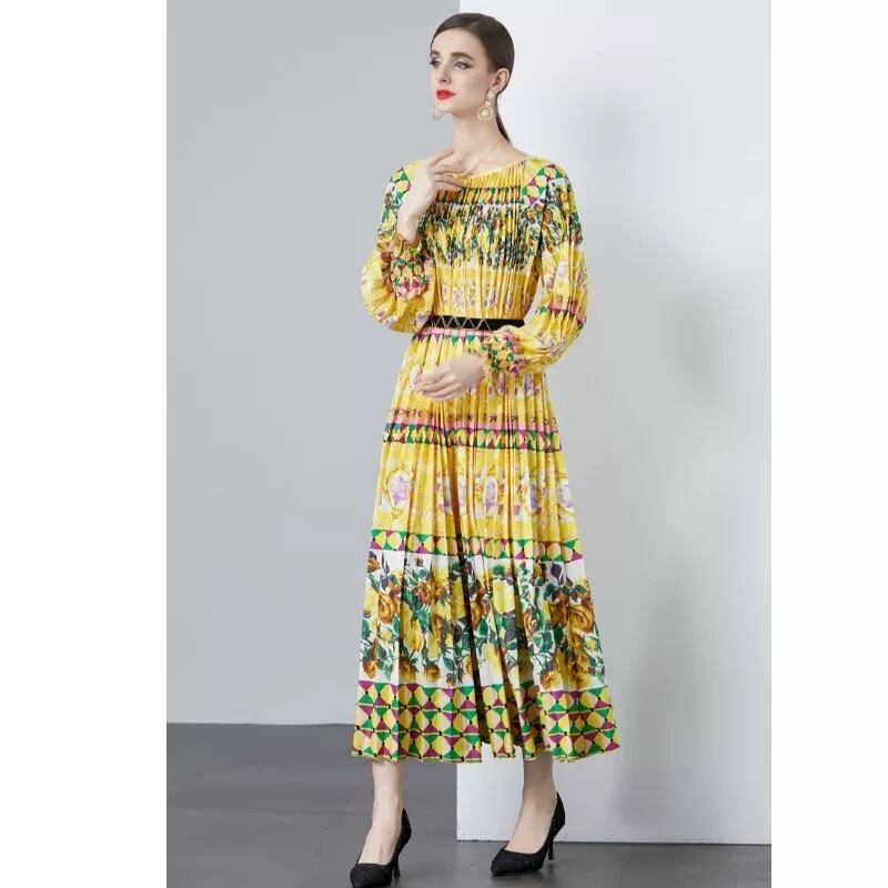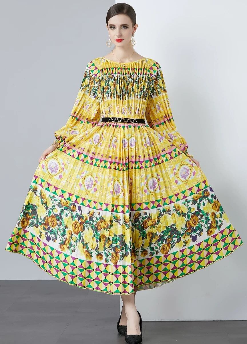 黄色 オレンジ ワンピース 花柄 ゆったり