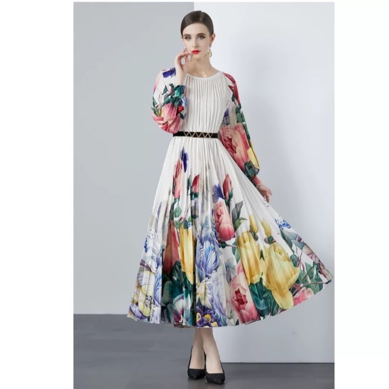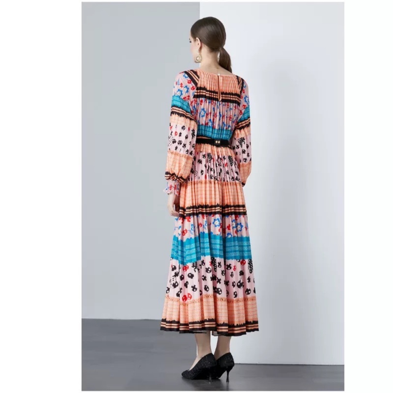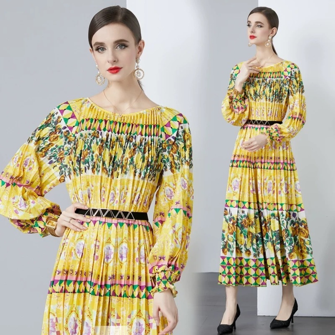黄色 オレンジ ワンピース 花柄 ゆったり